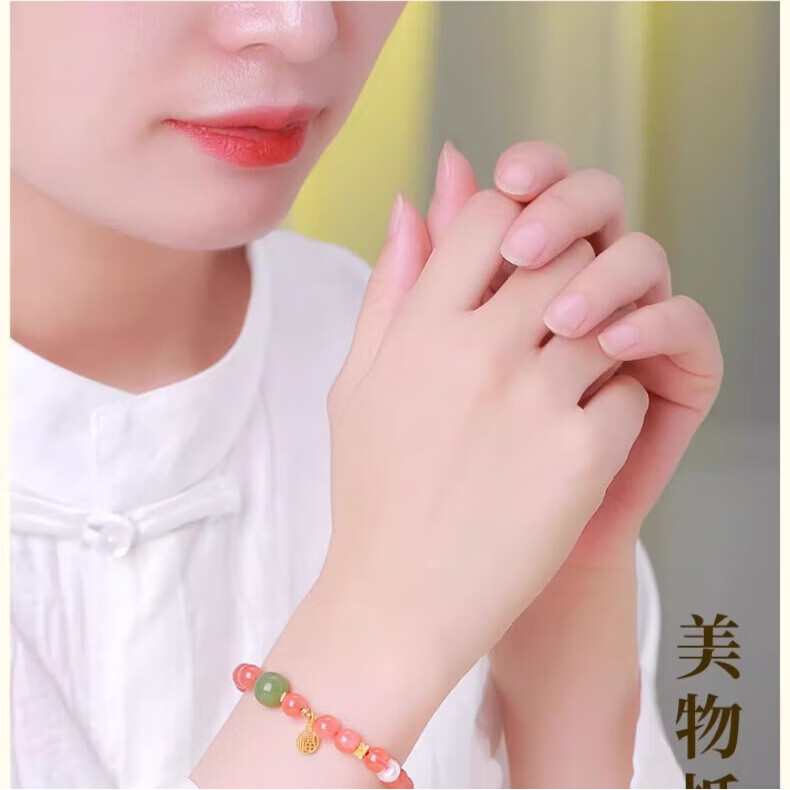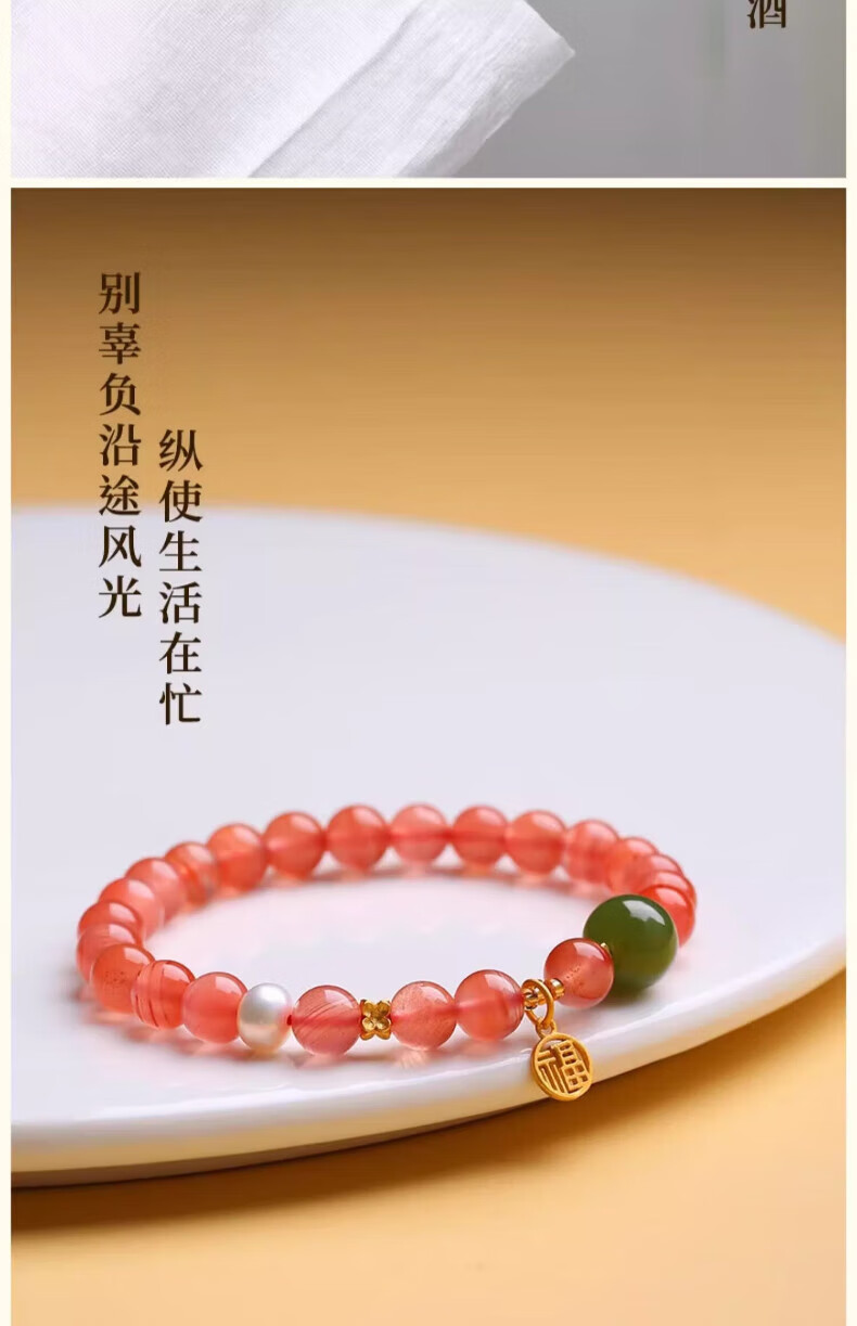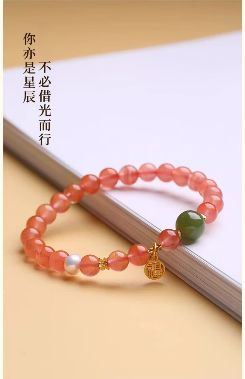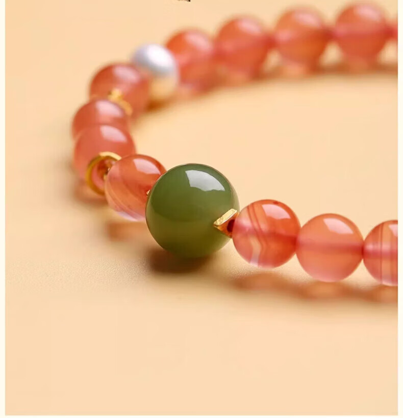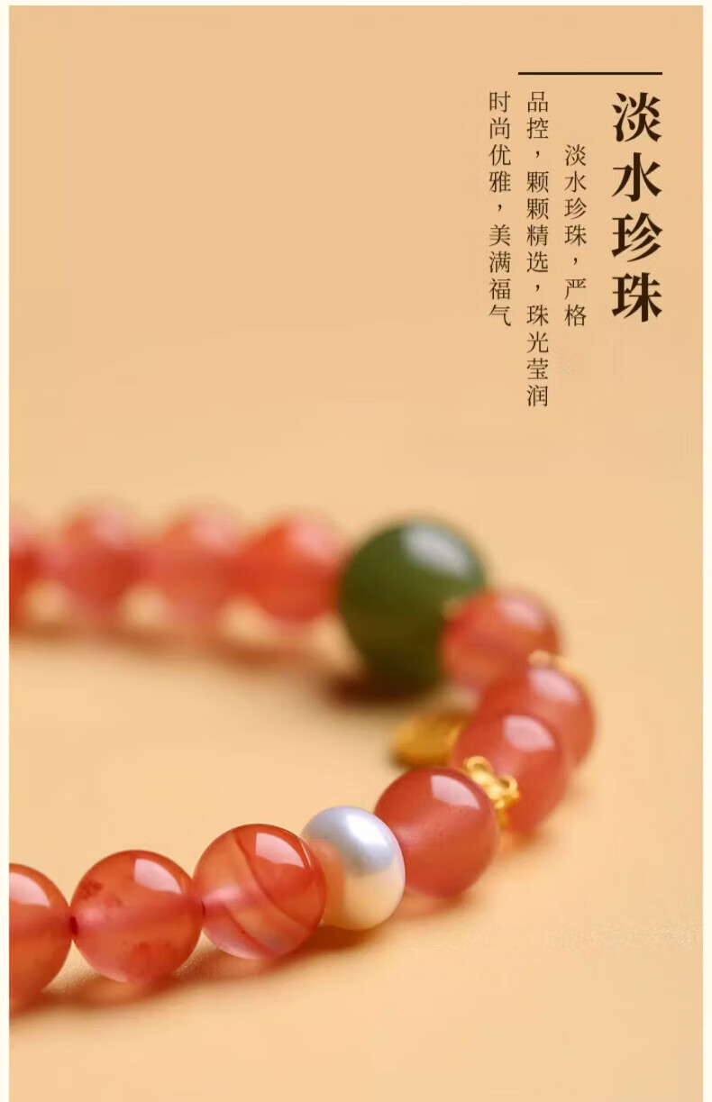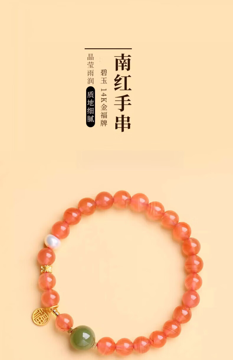 Bao Xin Fanrui BOSFRU Ice Piao Nan Red Bracelet Women's Freshwater Pearl Single Lucky Brand Bracelet Light Luxury Agate Auspicious Gift for Girlfriend Cultural Toy Collection Nanhong Jasper Lucky Brand Bracelet Bead Diameter About 7mm