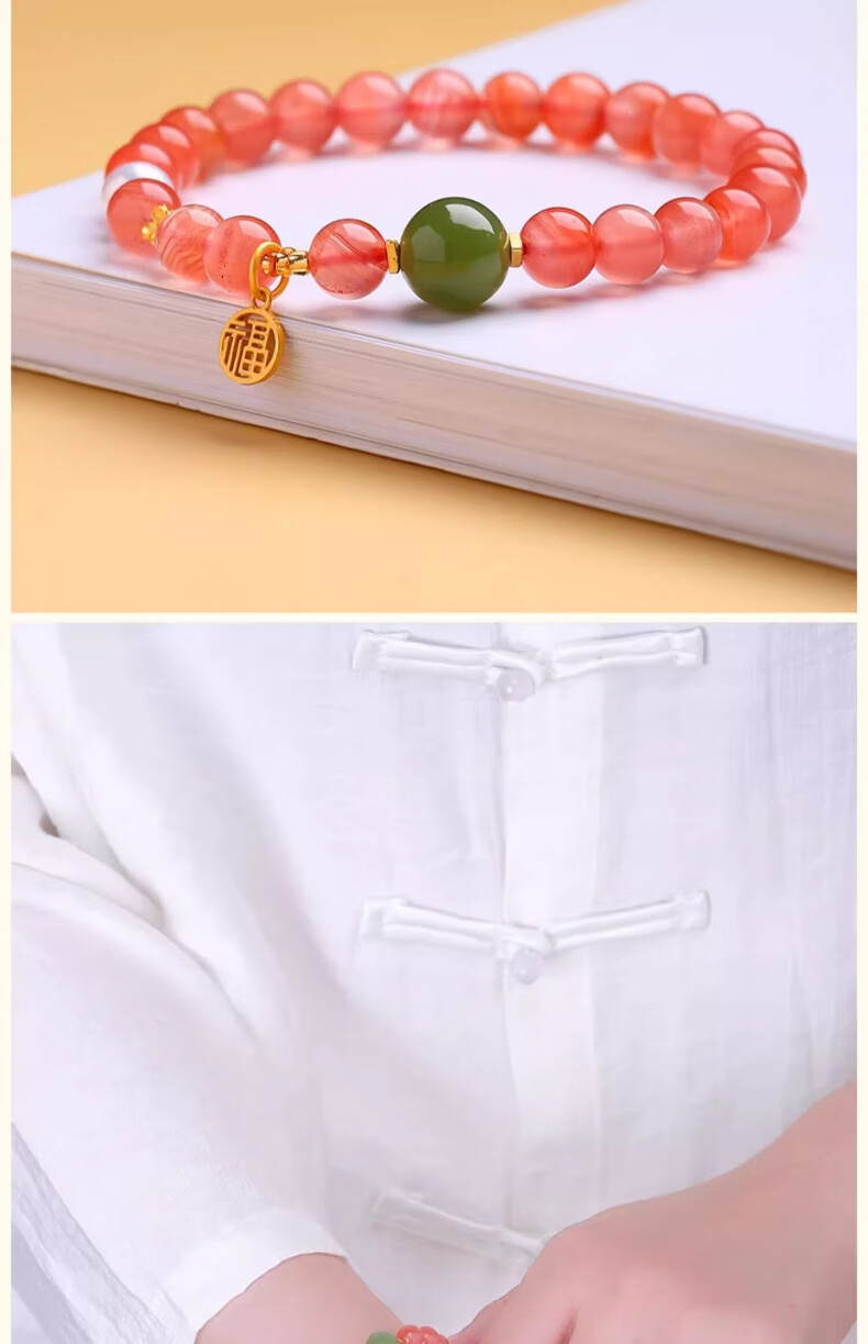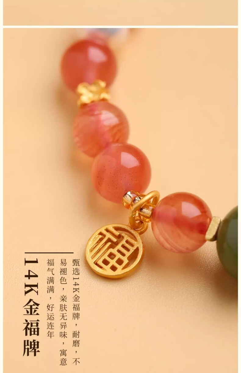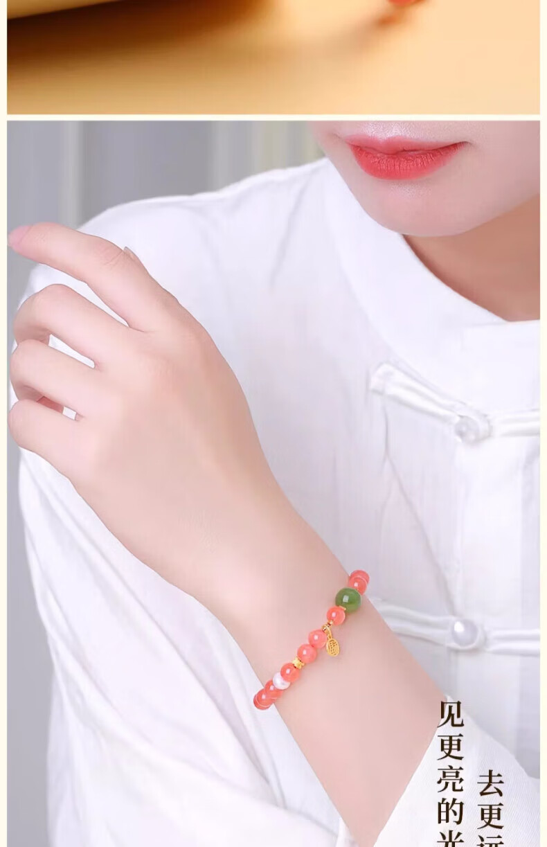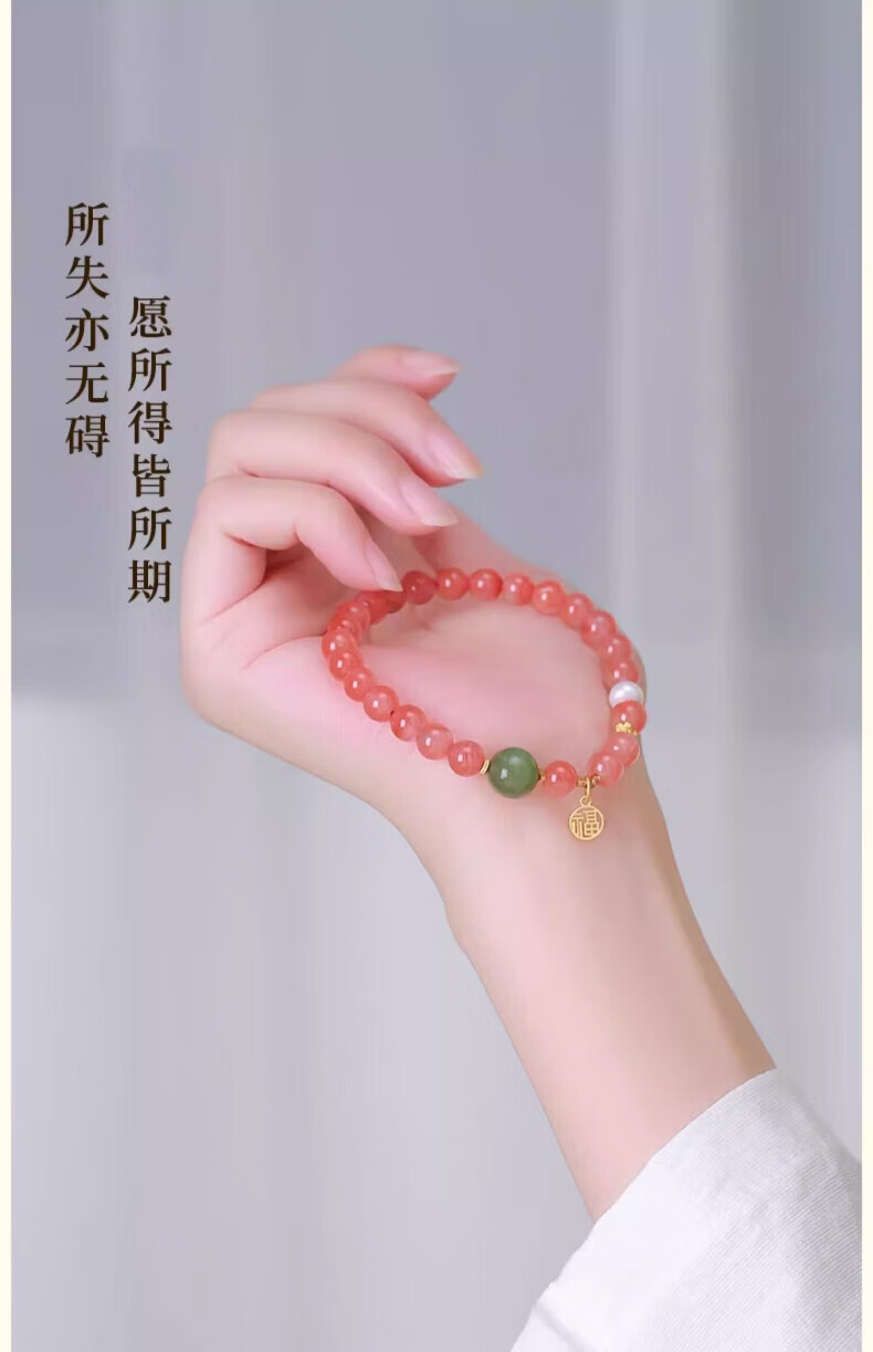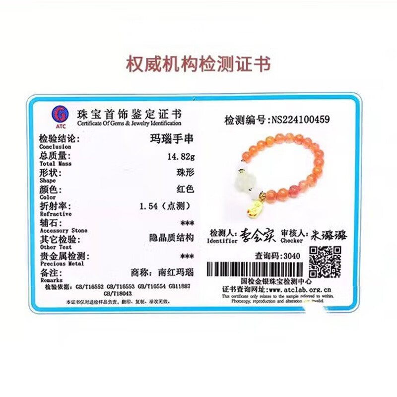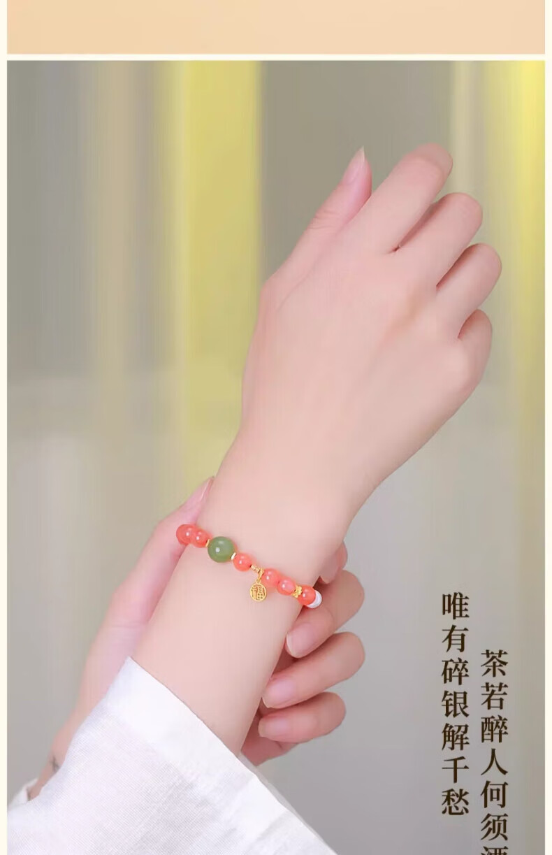 Bao Xin Fanrui BOSFRU Ice Piao Nan Red Bracelet Women's Freshwater Pearl Single Lucky Brand Bracelet Light Luxury Agate Auspicious Gift for Girlfriend Cultural Toy Collection Nanhong Jasper Lucky Brand Bracelet Bead Diameter About 7mm