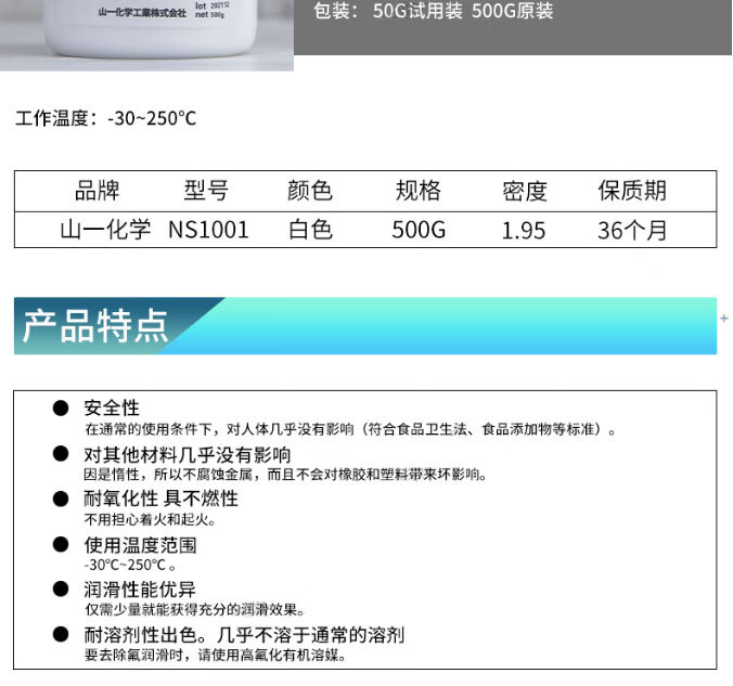 High temperature mold ejector lubricant NS1001 high temperature lubrication white grease fluorine grease fluorogrease original Yamaichi Chemical NS1001/500G ejector pin