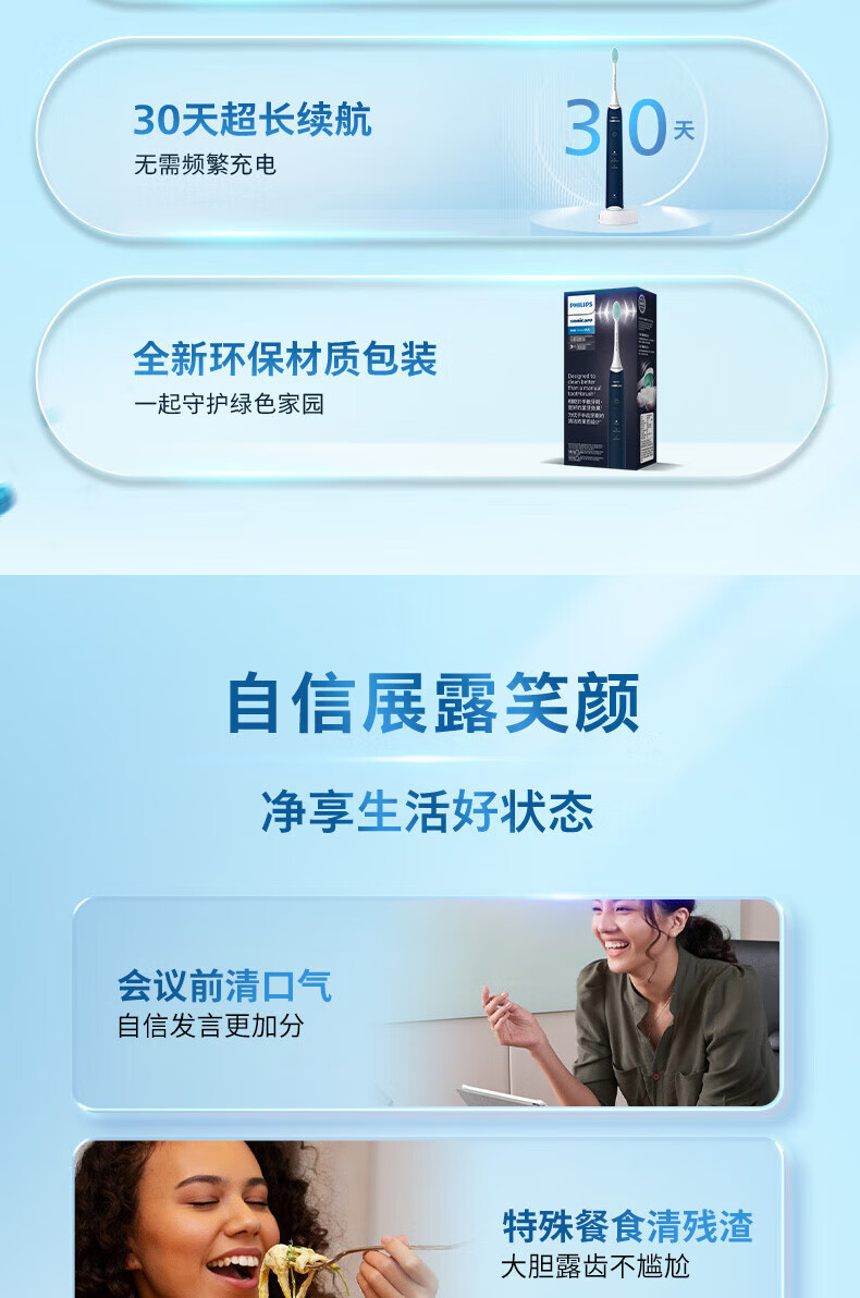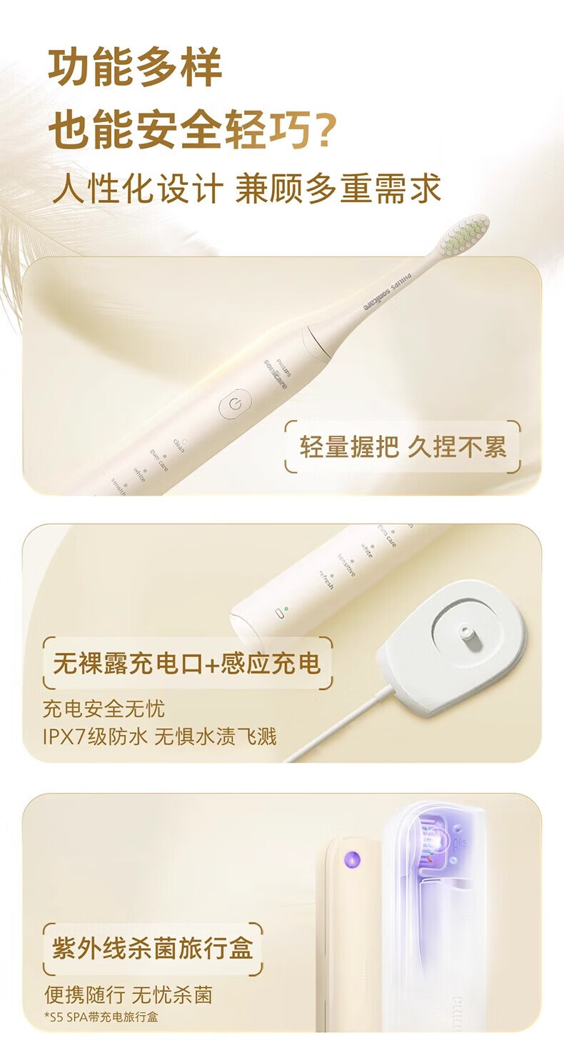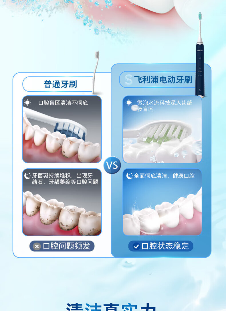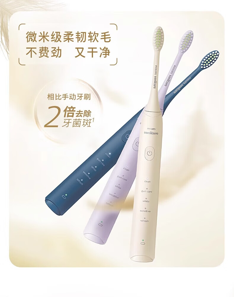 Philips (PHILIPS) electric toothbrush S2 net power brush cleans teeth and protects gums, sonic vibration, DuPont soft power, soft bristles, gentle cleansing, does not hurt teeth, lightning cleaning, long battery life, birthday gift HX2418 white