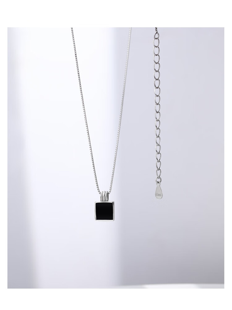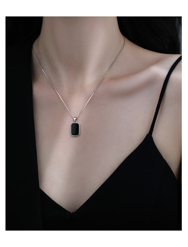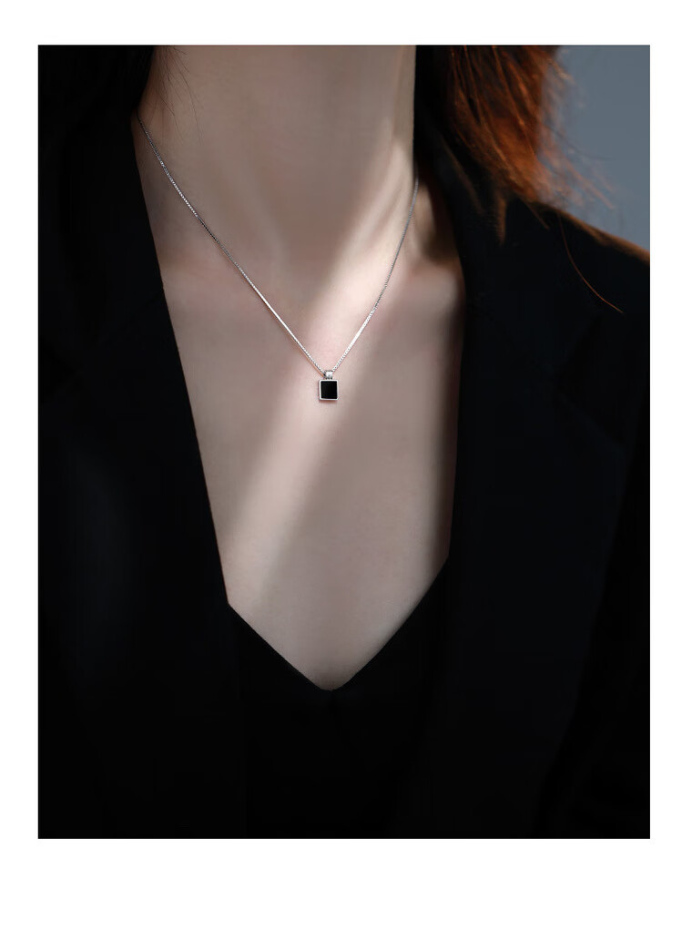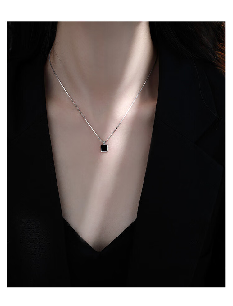QUAMER999 sterling silver necklace women's black square brand clavicle chain 2024 new light luxury 99 pure silver black long brand pendant necklace