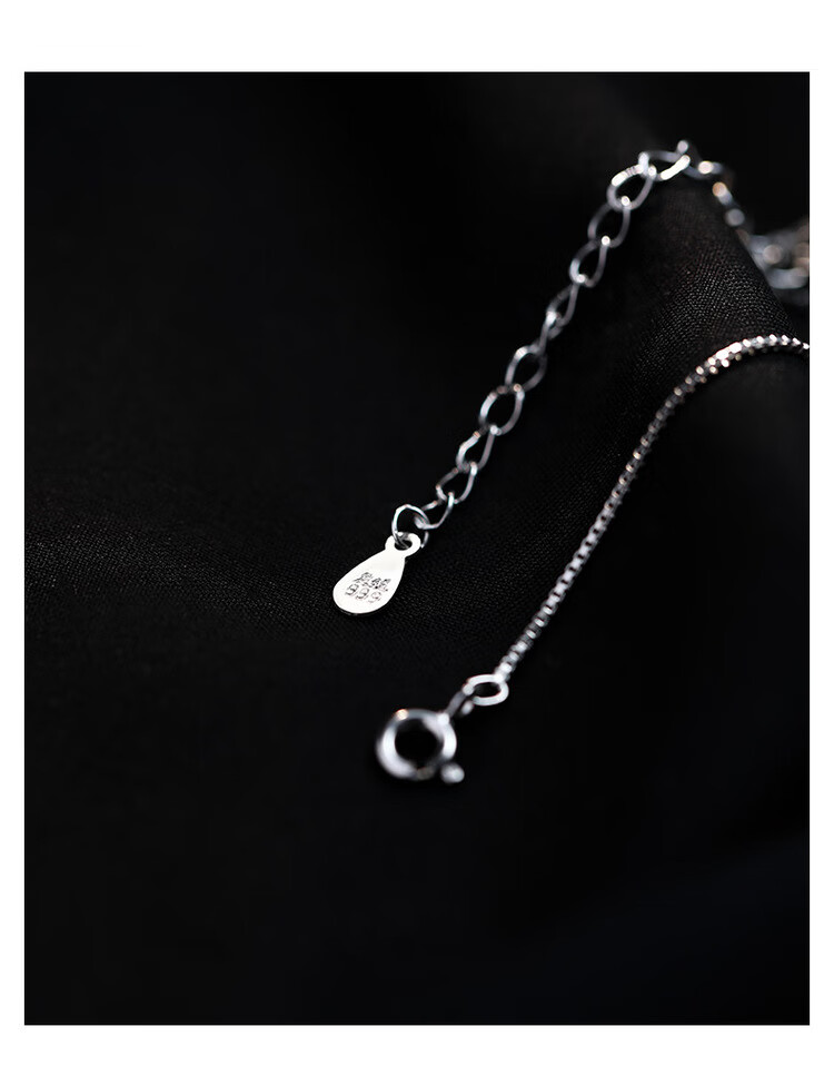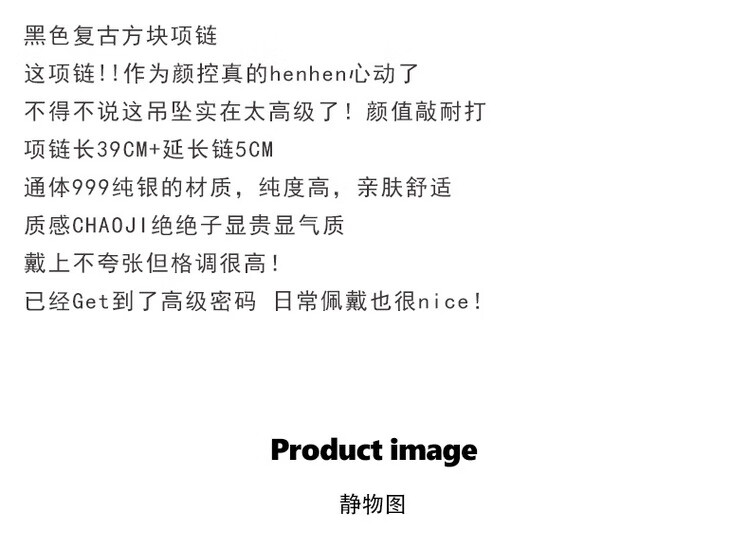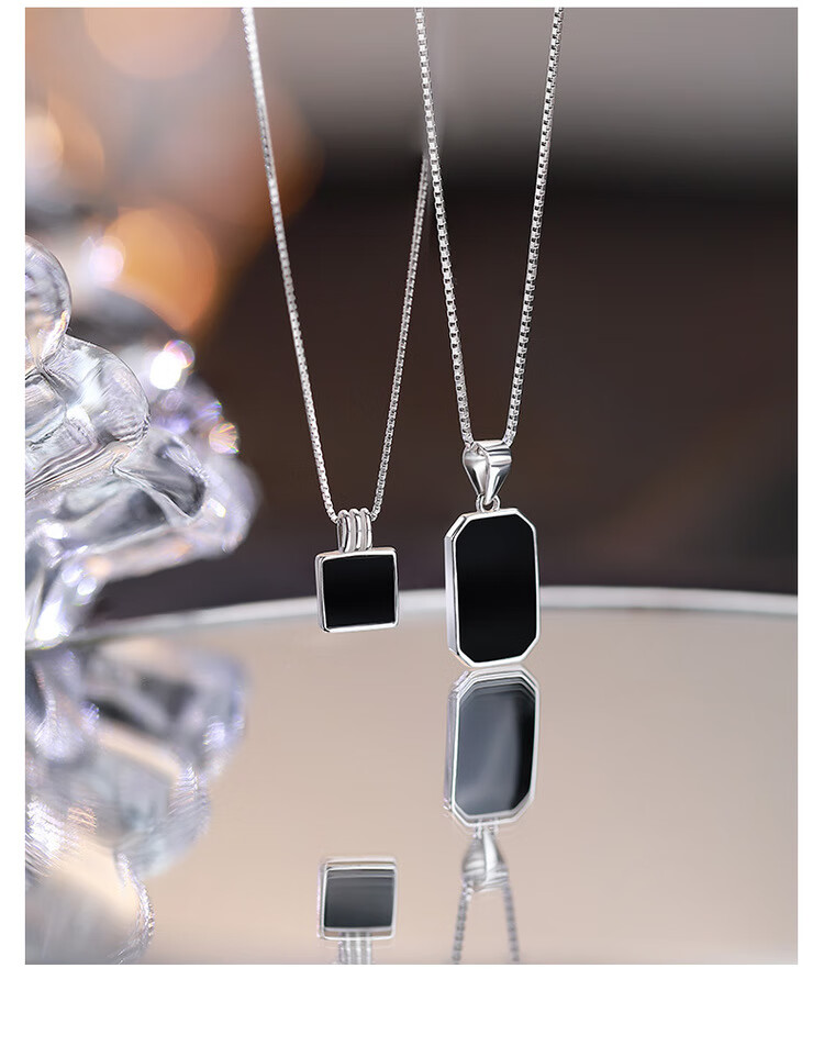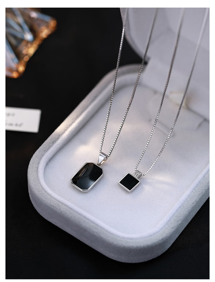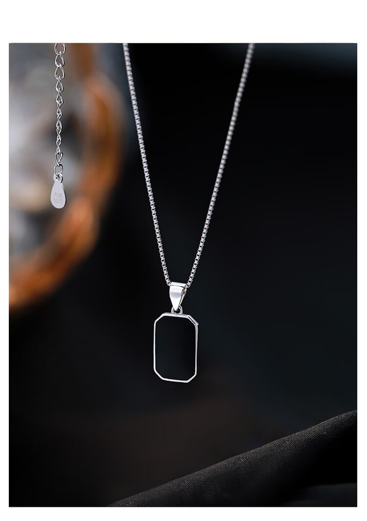 QUAMER999 sterling silver necklace women's black square brand clavicle chain 2024 new light luxury 99 pure silver black long brand pendant necklace