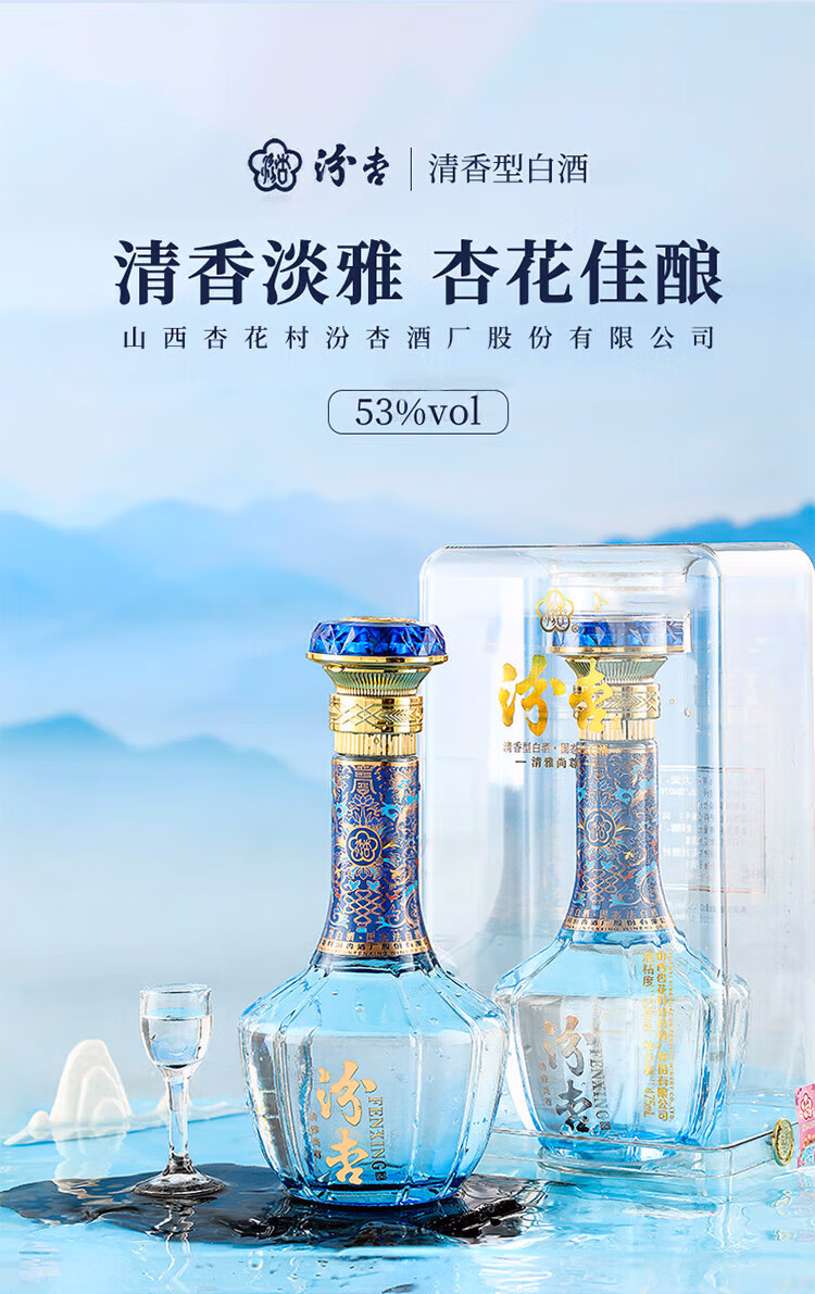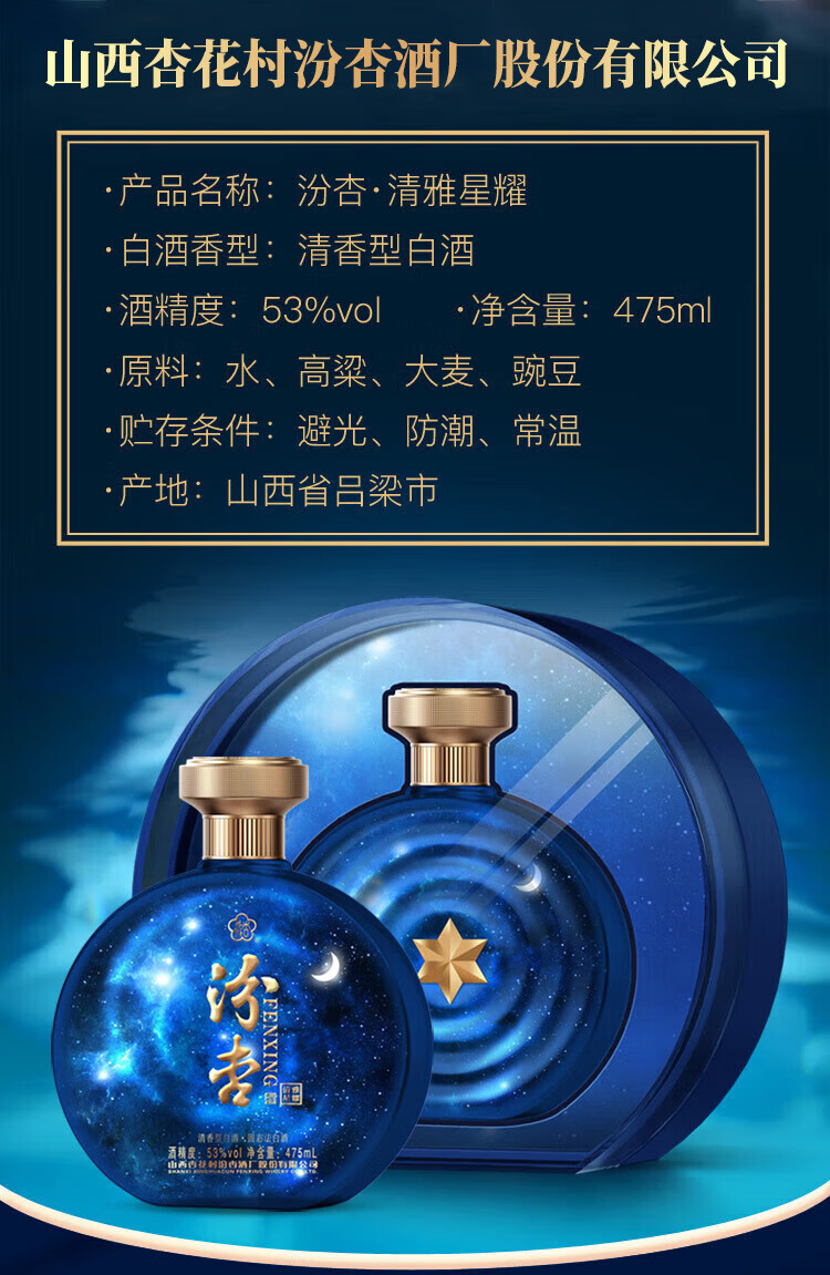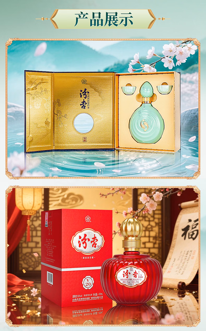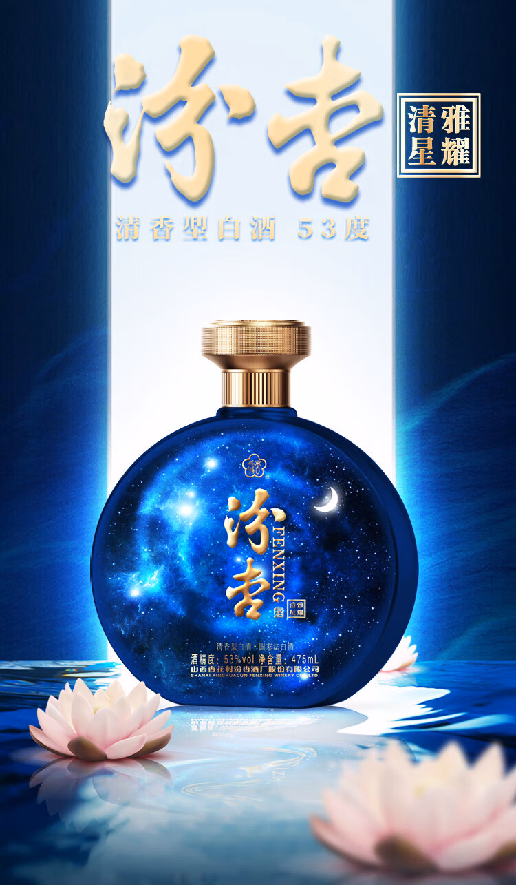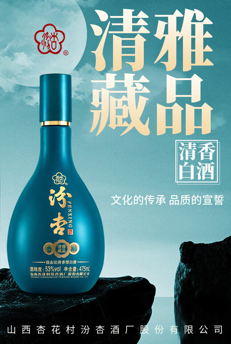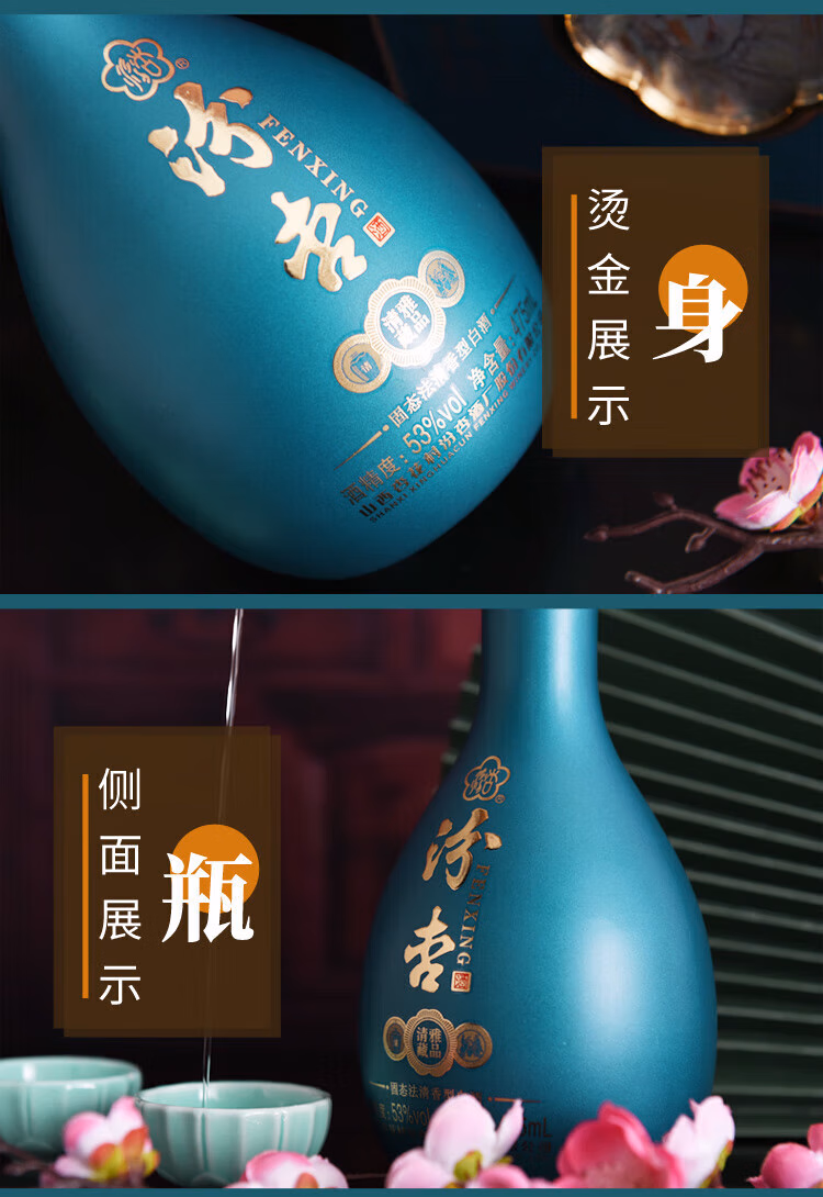 Fenxing Baijiu, Shanxi fine wine, self-drinking grain wine, new year's banquet, holiday gift box, full box, 53 degrees, 475mL, 6 bottles, elegant collection, full box