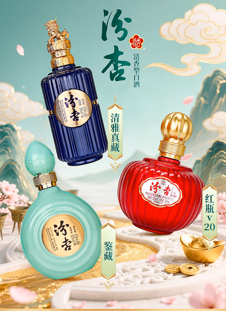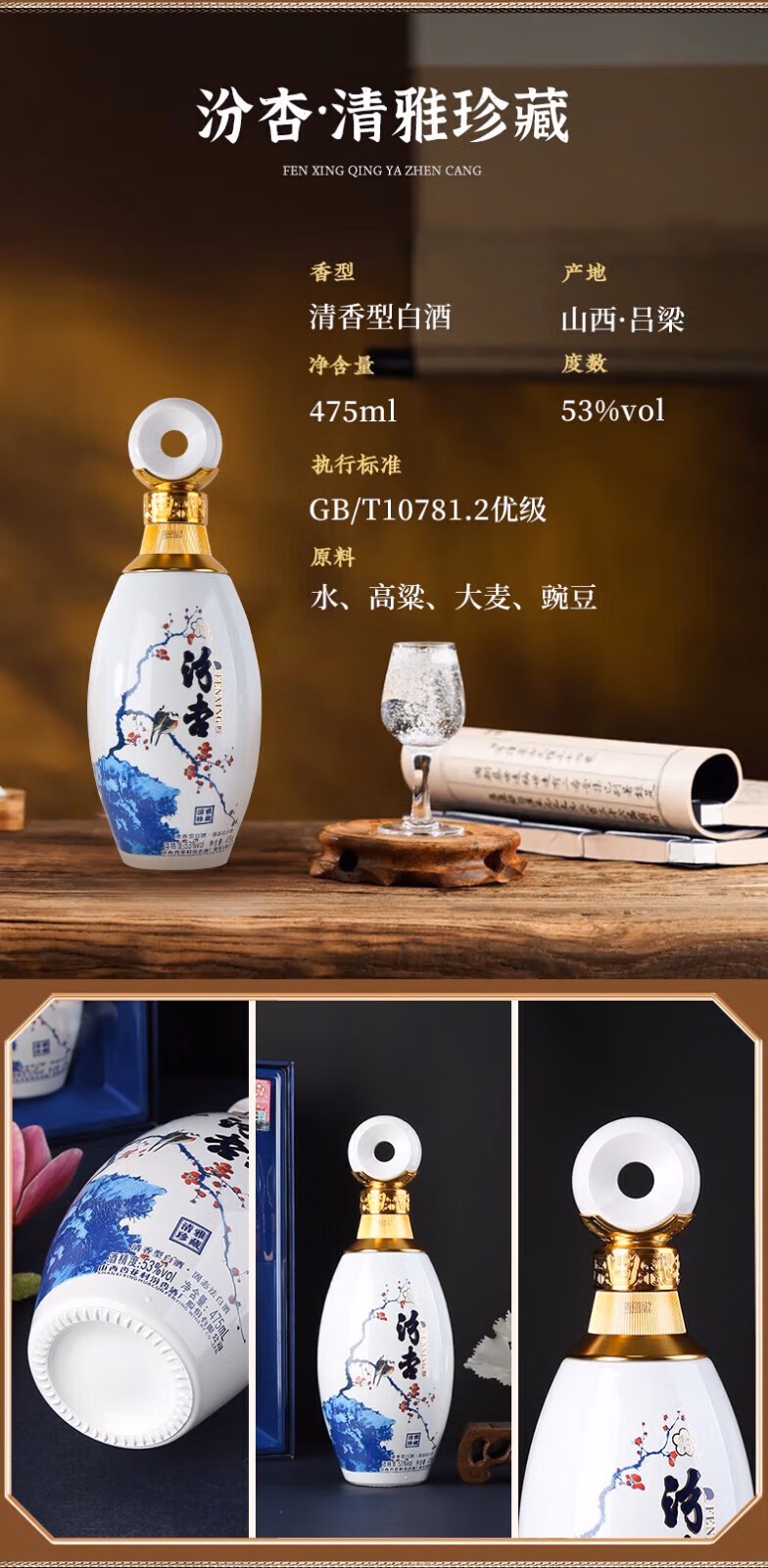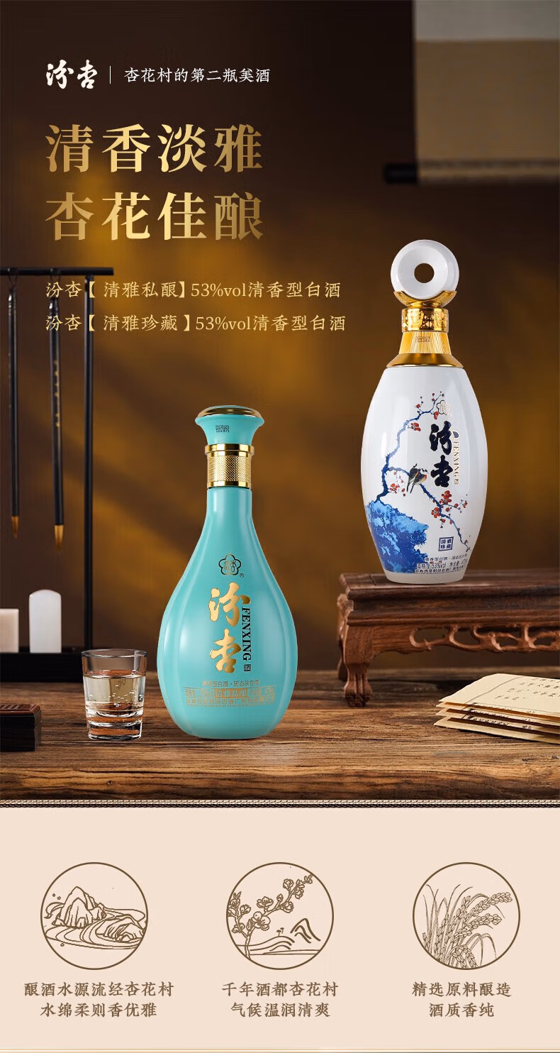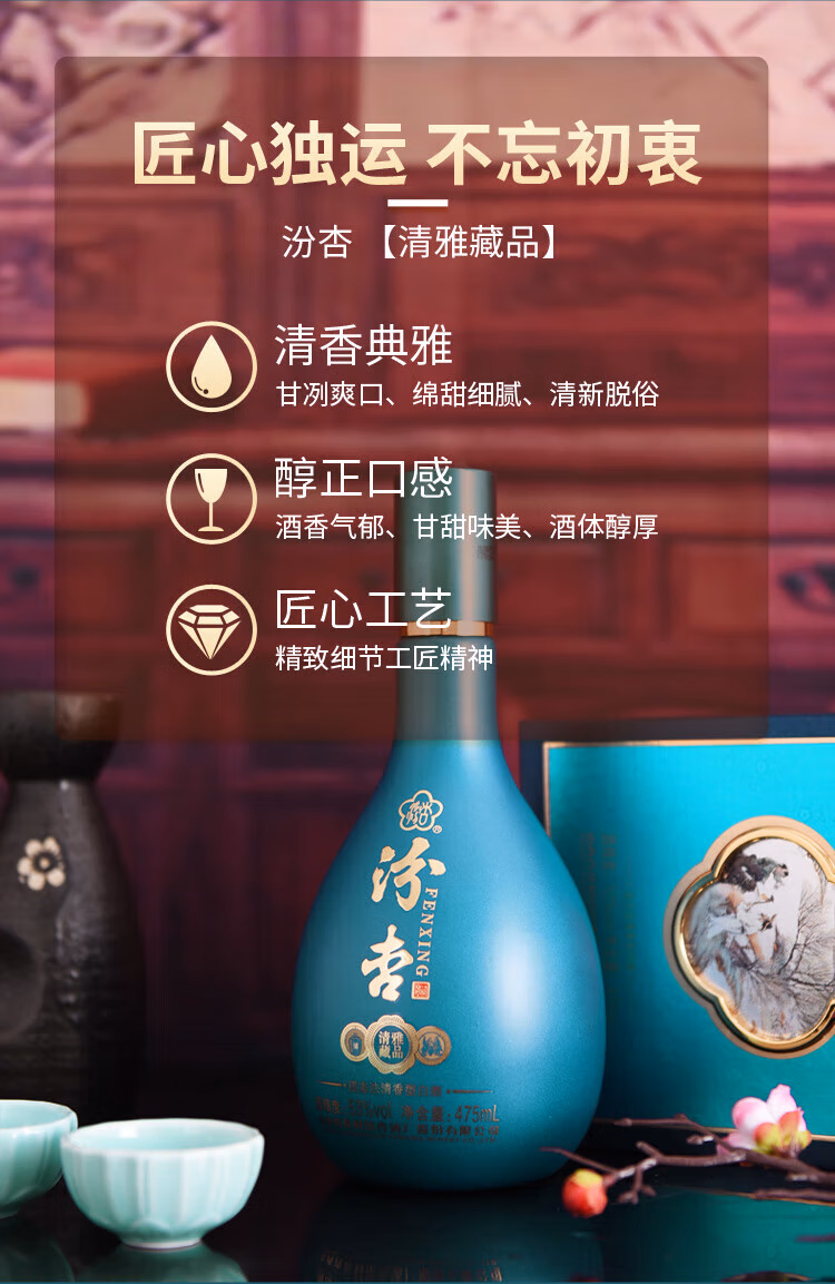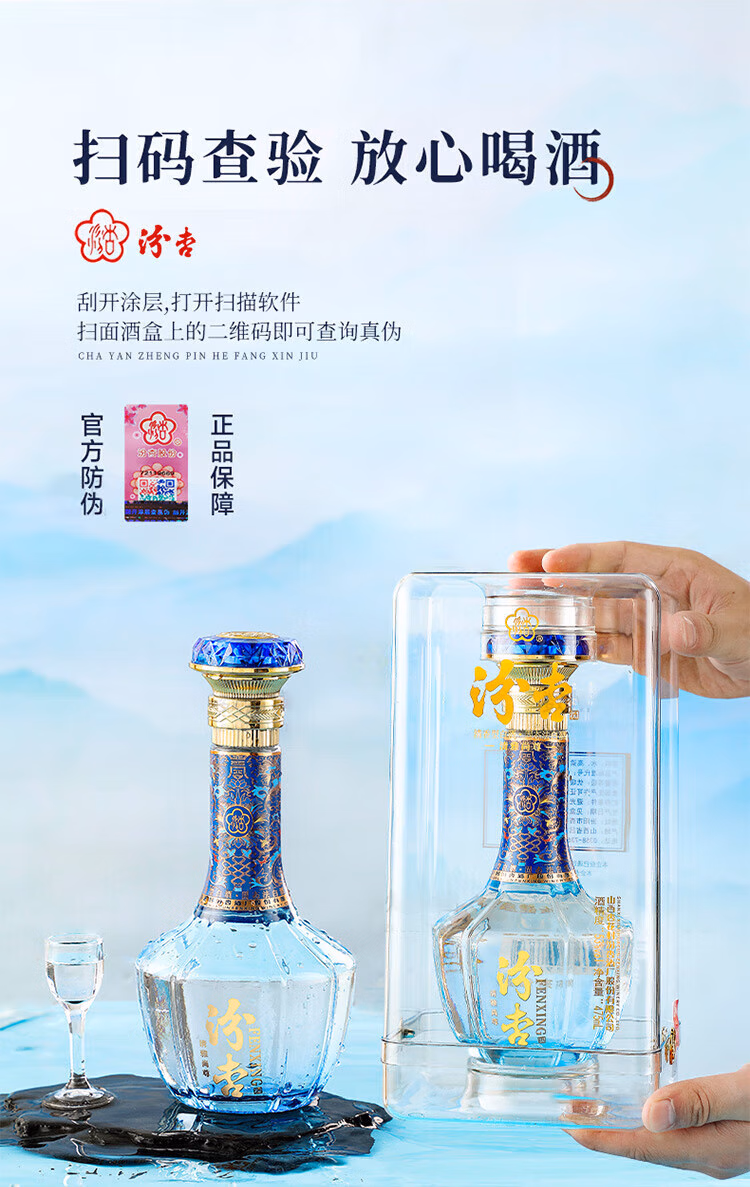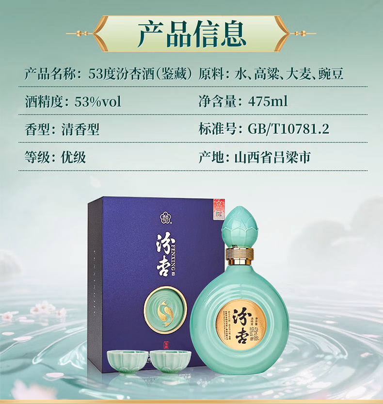 Fenxing Baijiu, Shanxi fine wine, self-drinking grain wine, new year's banquet, holiday gift box, full box, 53 degrees, 475mL, 6 bottles, elegant collection, full box