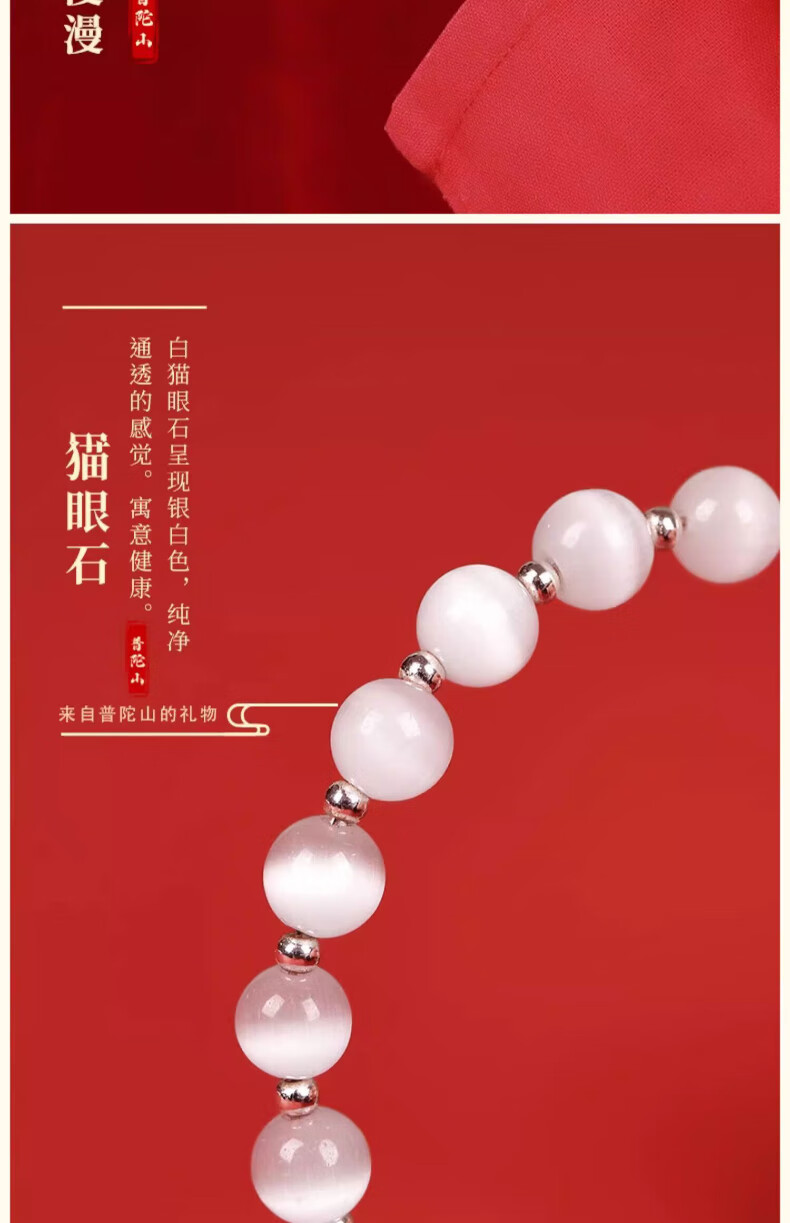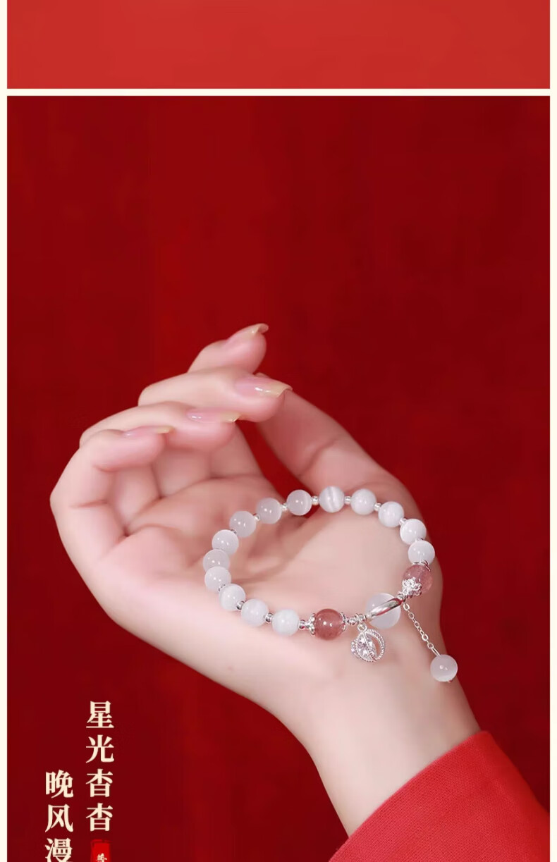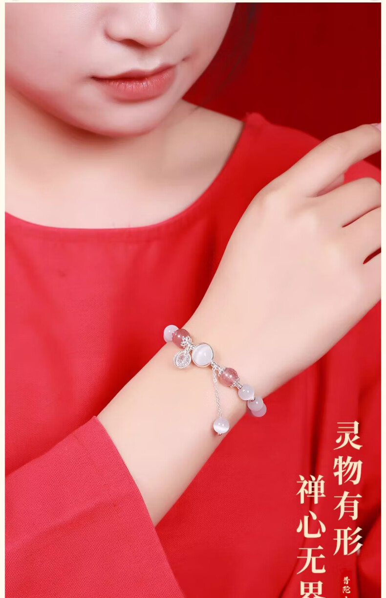 BOSFRU cat's eye stone bracelet for girls, white cat's eye bracelet, strawberry crystal crystal jewelry, gift for girlfriend and mother, accessories, white cat's eye stone bracelet
