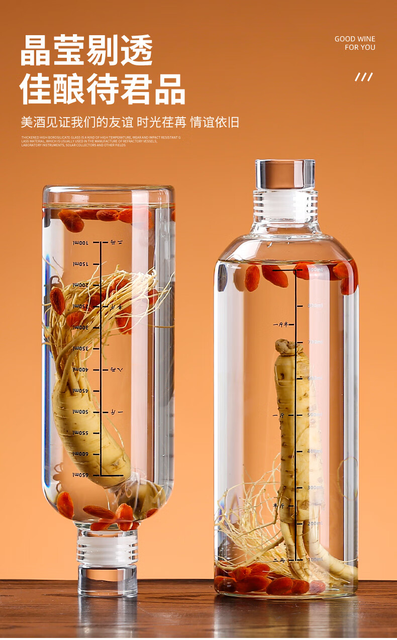 Lan Yingyuan glass flask, white wine glass bottle 1 Jin Jin is equal to 0.5 kg, empty wine bottle, sealed small wine bottle, high borosilicate glass, white wine sub-bottling, 1 Jin Jin is equal to 0.5 kg, half-scale, white wine sub-bottling, 750ml, high borosilicate glass