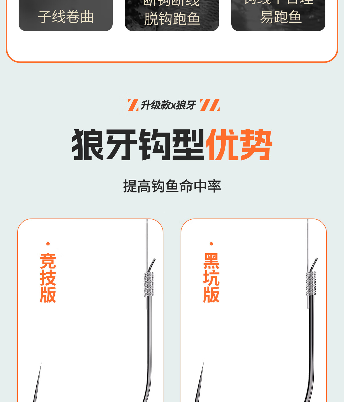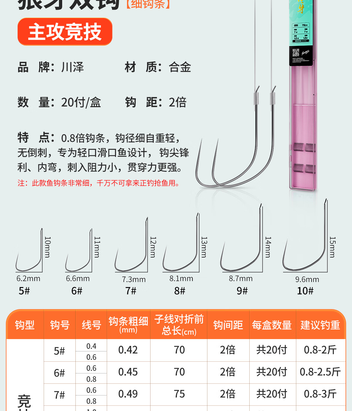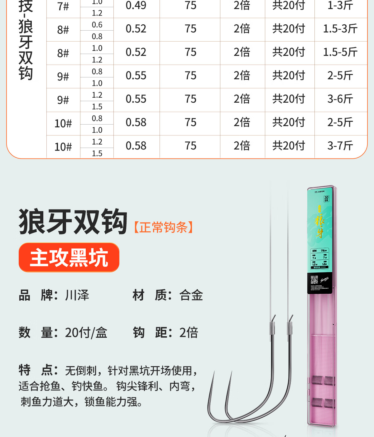 Kawasawa sub-line double hook wolf tooth fish hook competitive black pit anti-tangle fish hook tied set fishing hook finished product complete set of fishing gear competitive wolf tooth thin strip hook 5 lines 0.4-0.6 20 pieces of finished product set