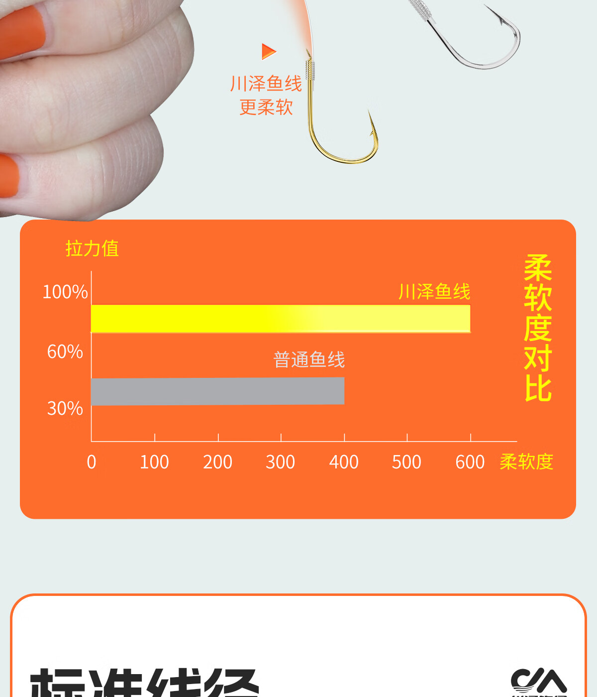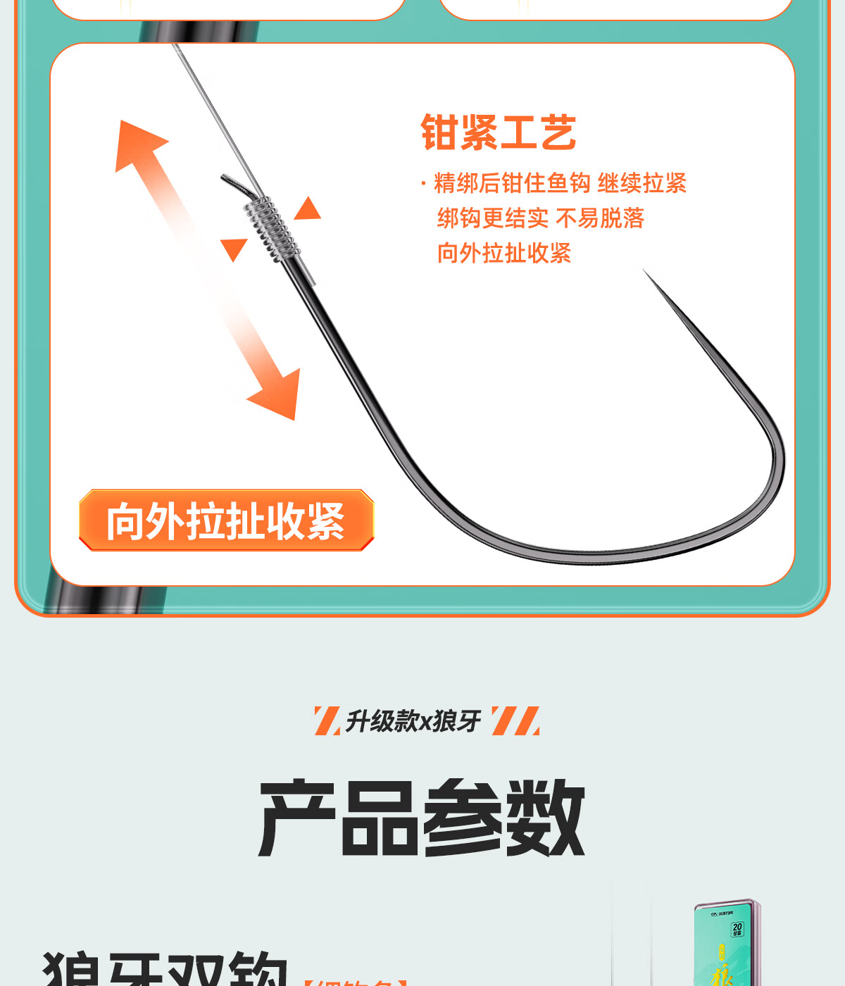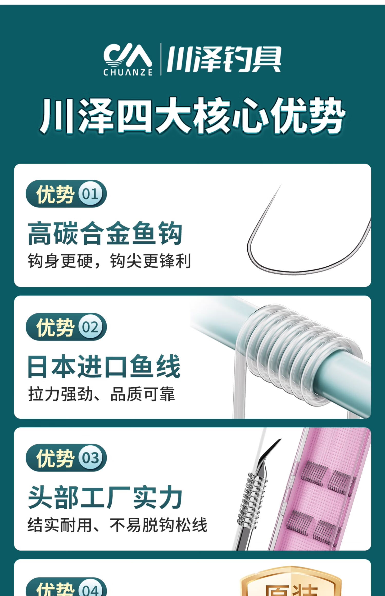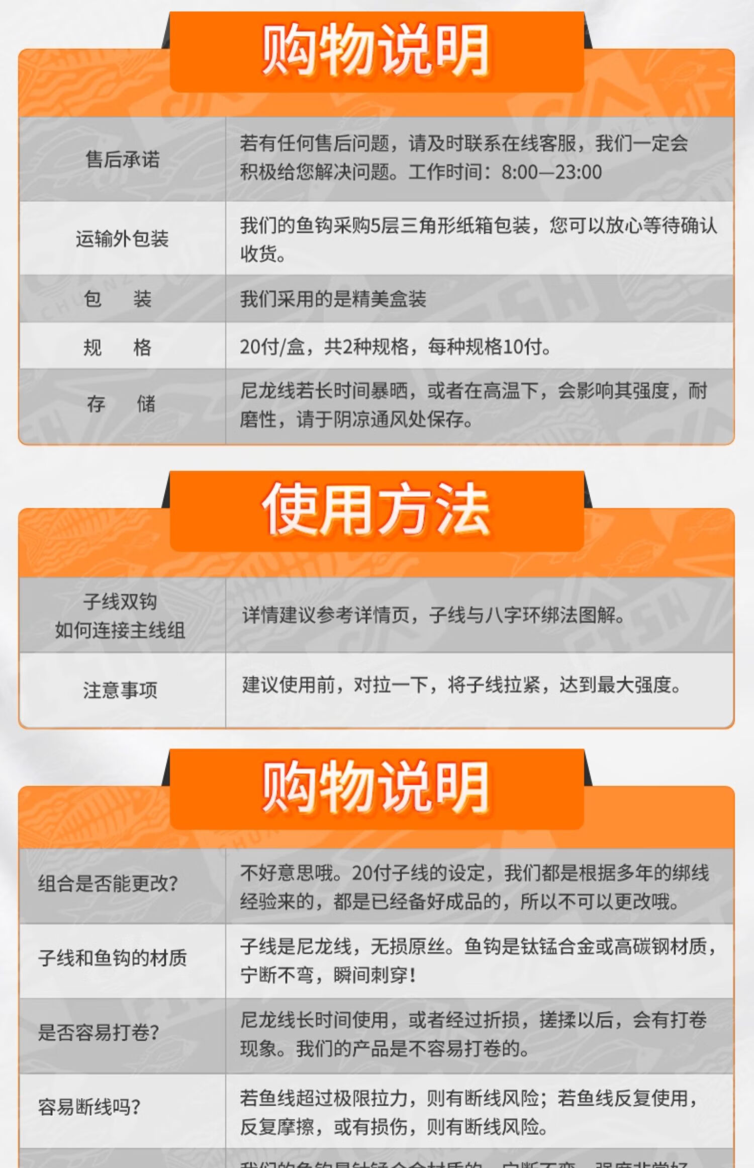 Kawasawa sub-line double hook wolf tooth fish hook competitive black pit anti-tangle fish hook tied set fishing hook finished product complete set of fishing gear competitive wolf tooth thin strip hook 5 lines 0.4-0.6 20 pieces of finished product set