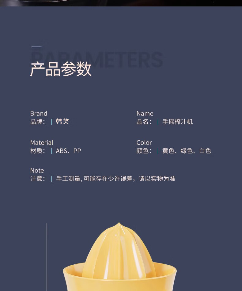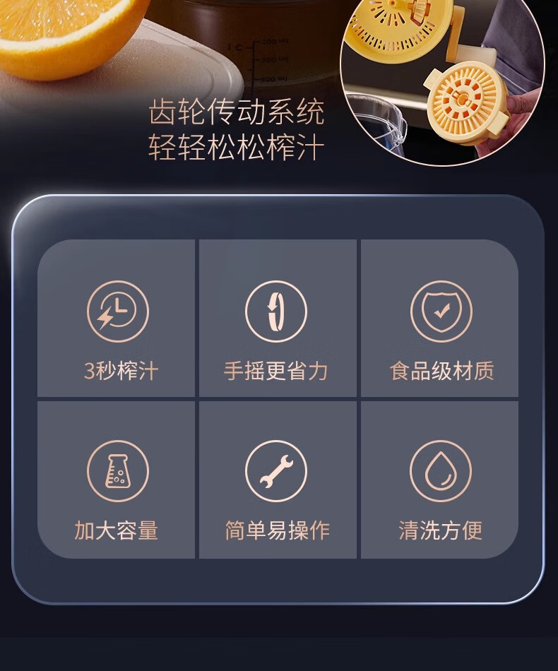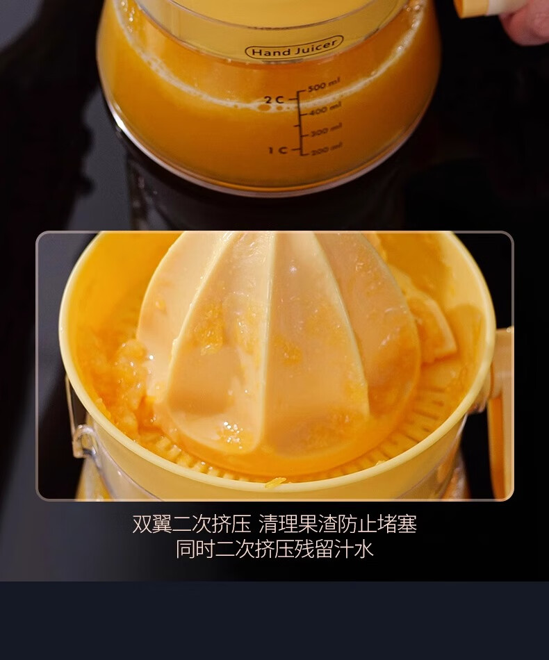 Hanxiao manual juicer small hand-cranked hand-pressed fried orange juice artifact original juice lemon orange squeezer two pack hand-cranked labor-saving juicer-orange