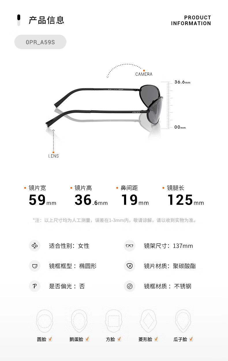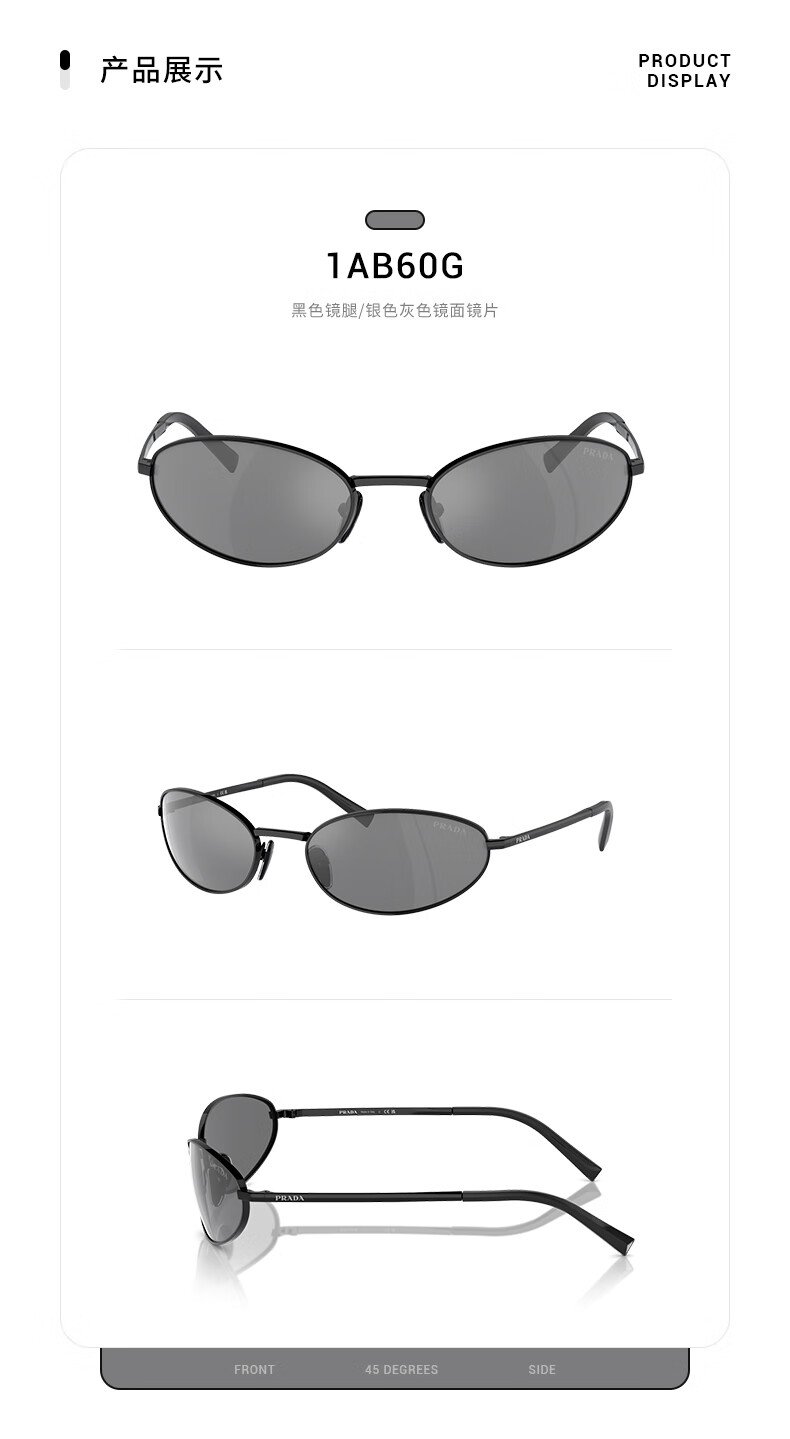 PRADA/Prada sunglasses women's sunglasses oval glasses 0PR A59S black frame/silver gray mirror lens 1AB60G