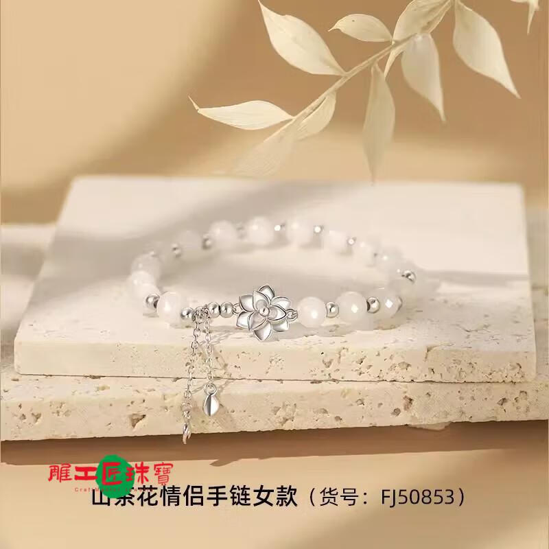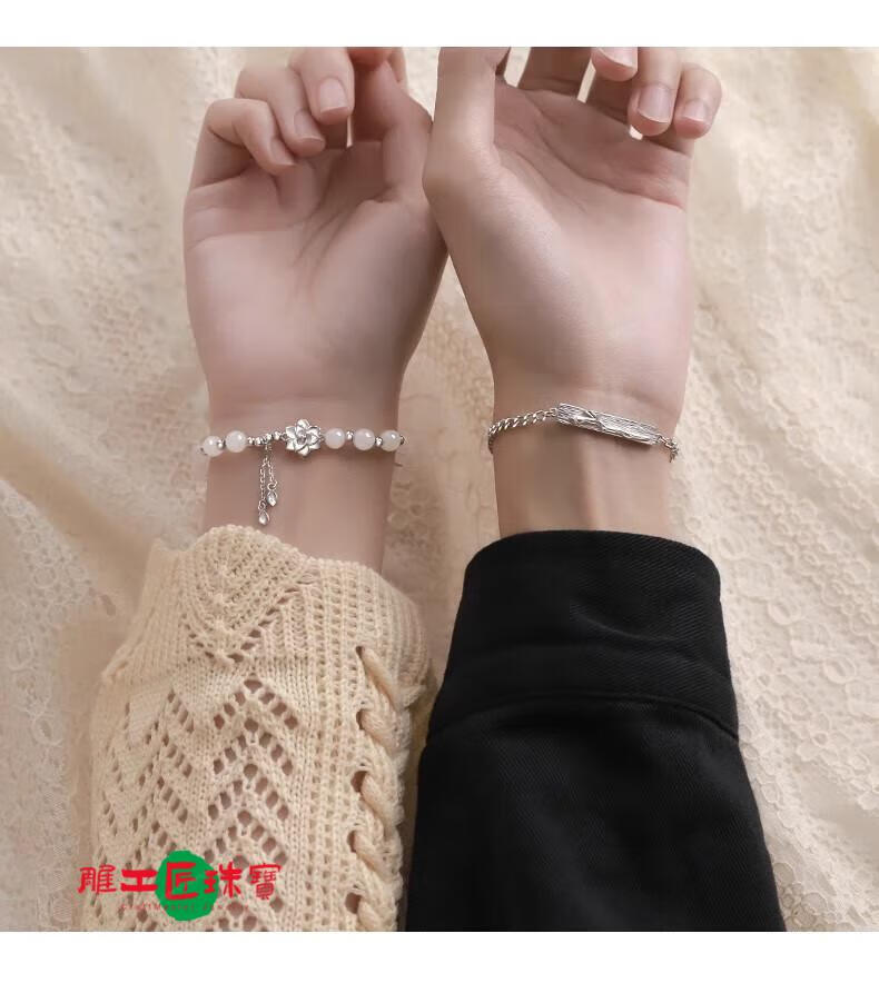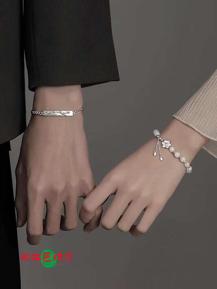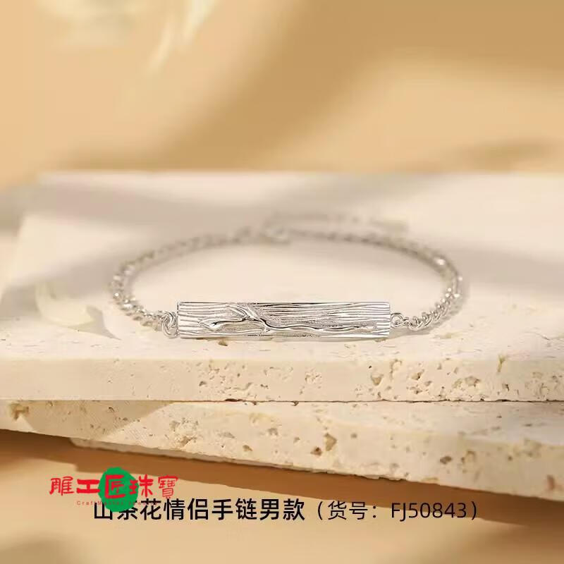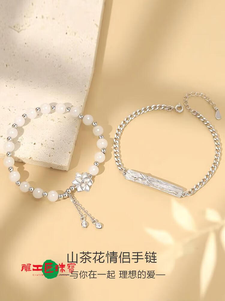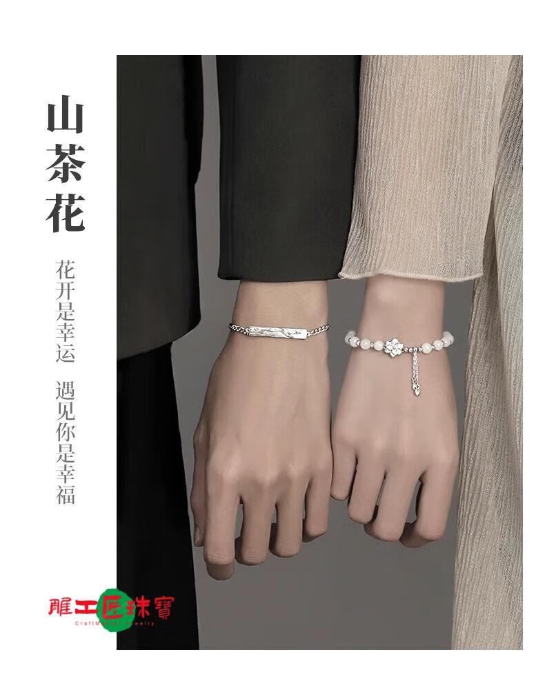Fat Donglai's same style couple bracelets, a pair of camellia bracelets, silver bracelets for women, engraved 520 gifts for men, men's bracelets, matching gift box and gift bag