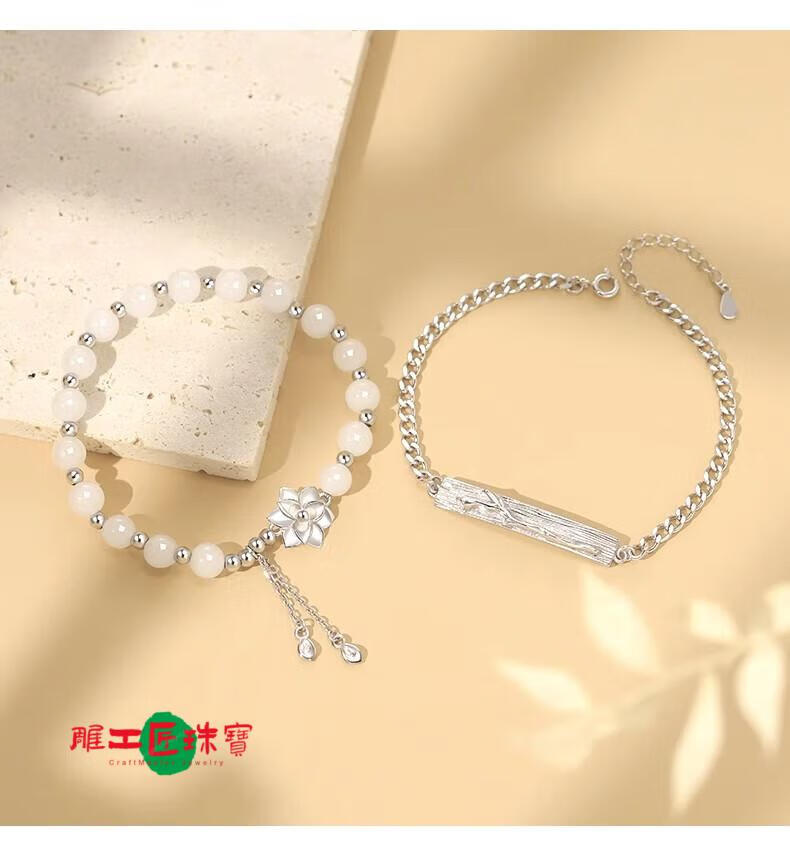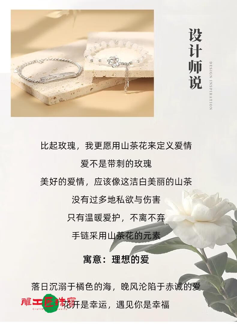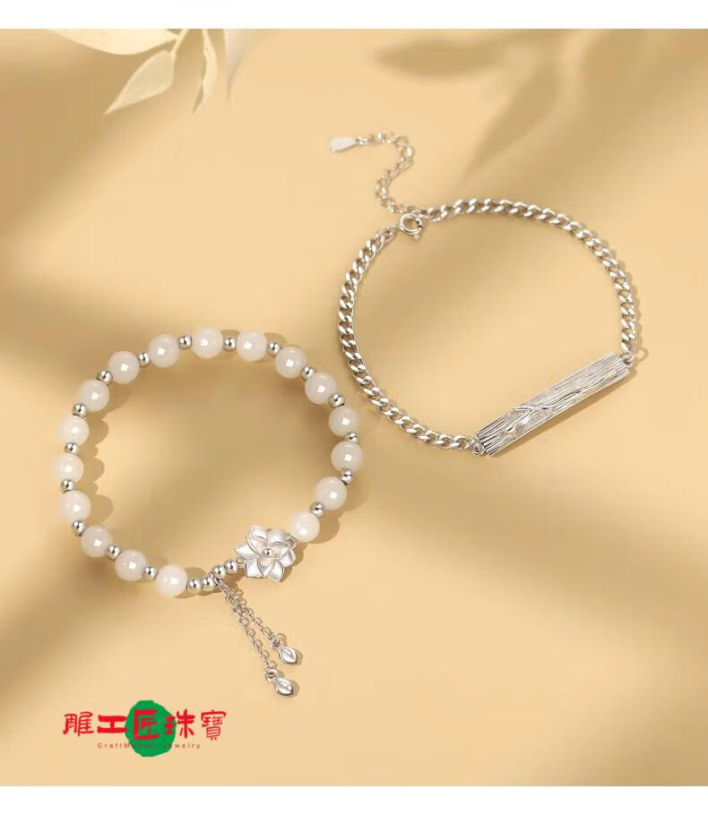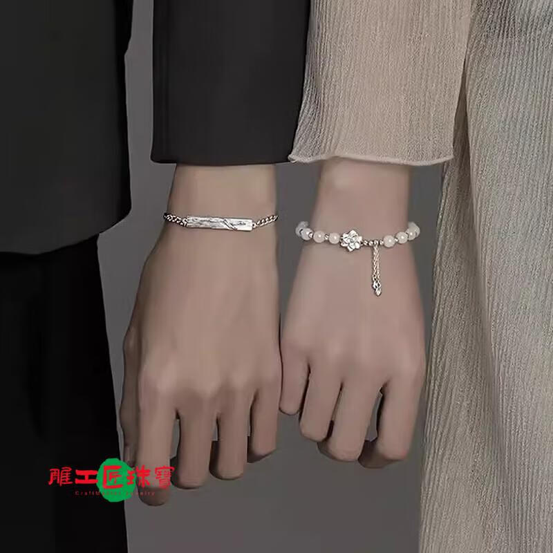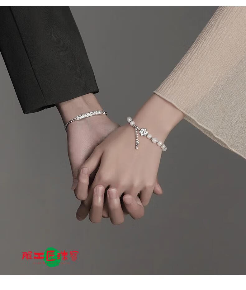 Fat Donglai's same style couple bracelets, a pair of camellia bracelets, silver bracelets for women, engraved 520 gifts for men, men's bracelets, matching gift box and gift bag