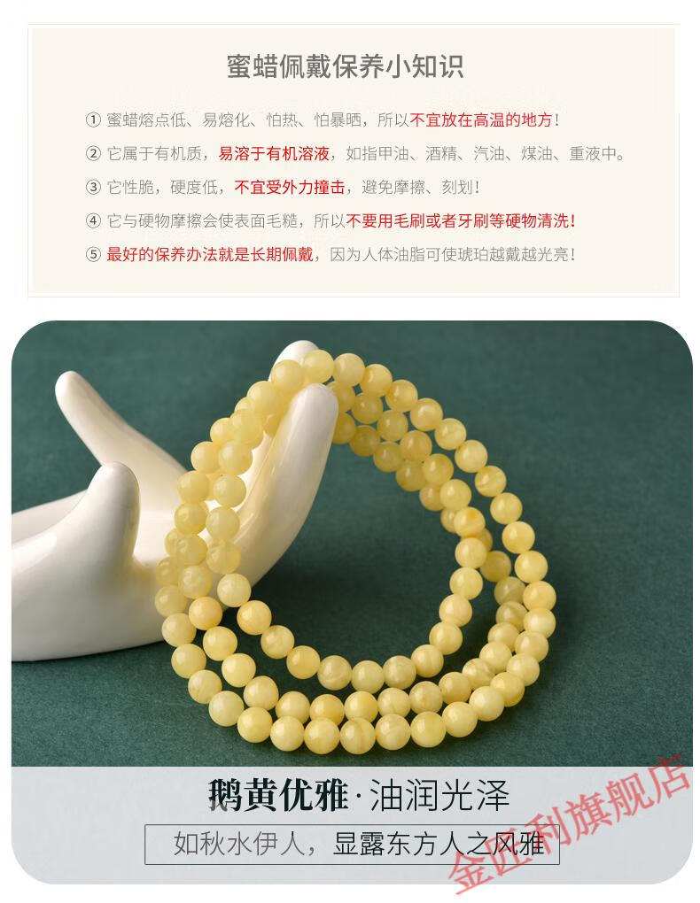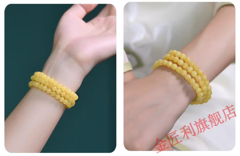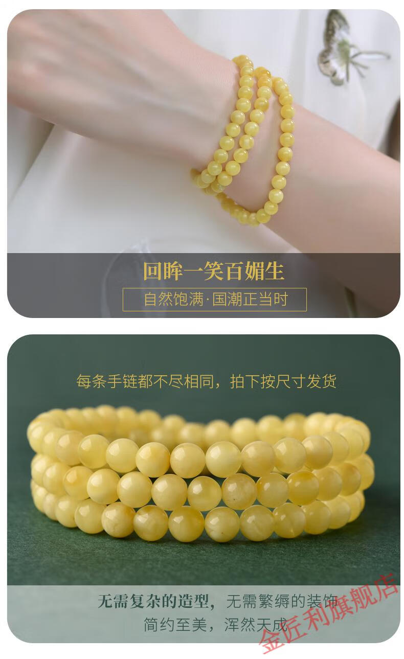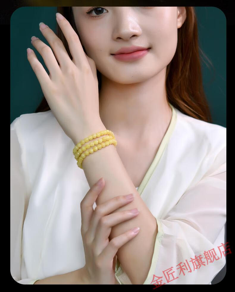 Goldsmith's collection grade Russian beeswax multi-circle bracelet 5-6.5mm natural amber three-circle beads loose bead bracelet for women ZB9 bead diameter about 6mm