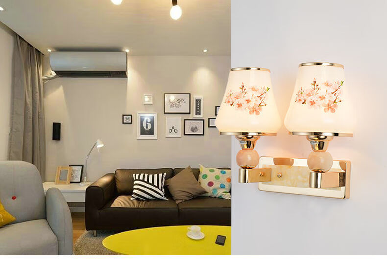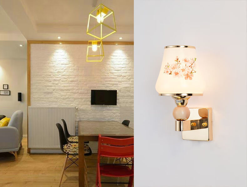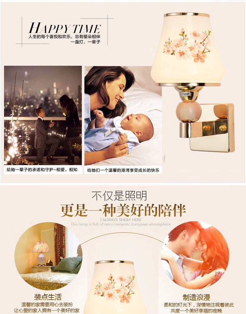 Micro wall lamp bedside lamp Nordic modern European style simple creative led American bedroom living room corridor staircase wall lamp 045 single head switch at home - three-color LED bulb