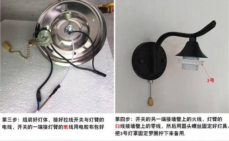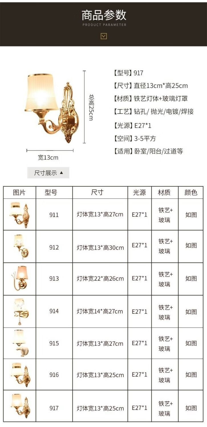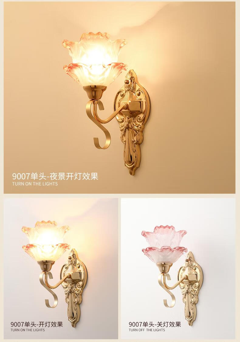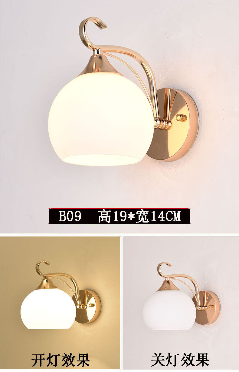 Yilin Wall Lamp Bedroom Wall Bedside Lamp Simple Modern Creative European American American LED Living Room Aisle Stair Lamp Gold 6001-1 Three Color + Pull Switch