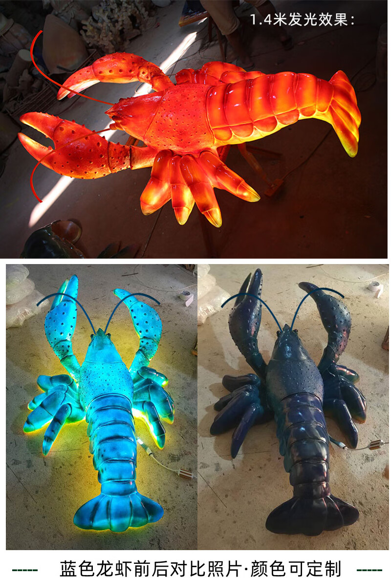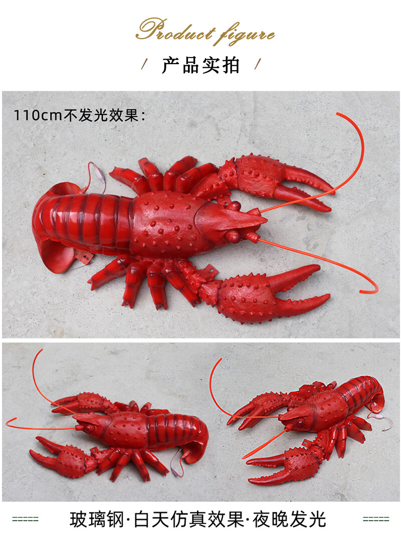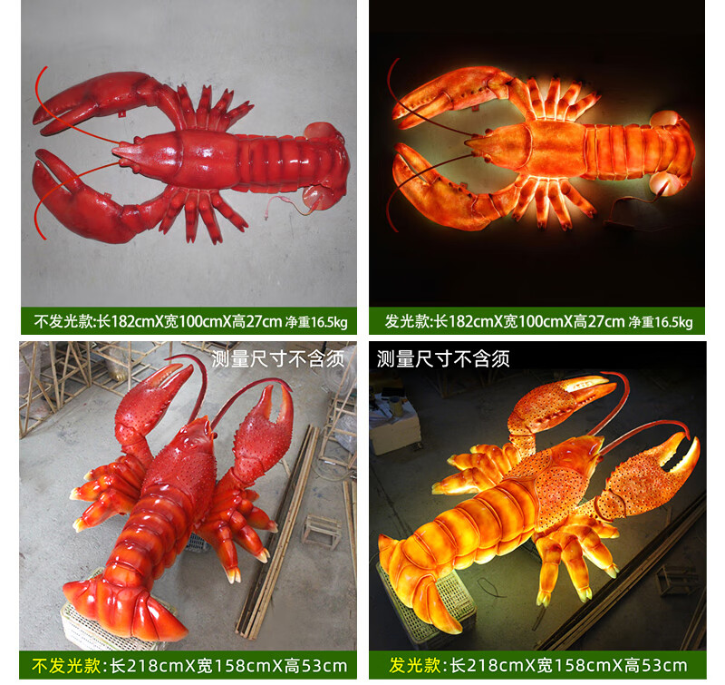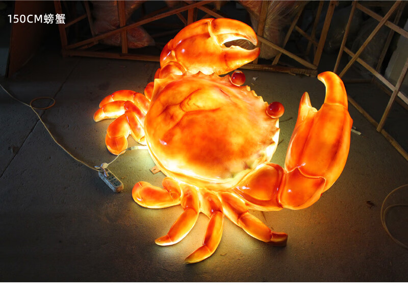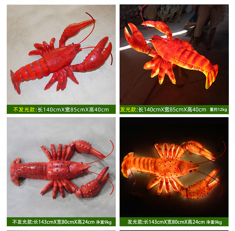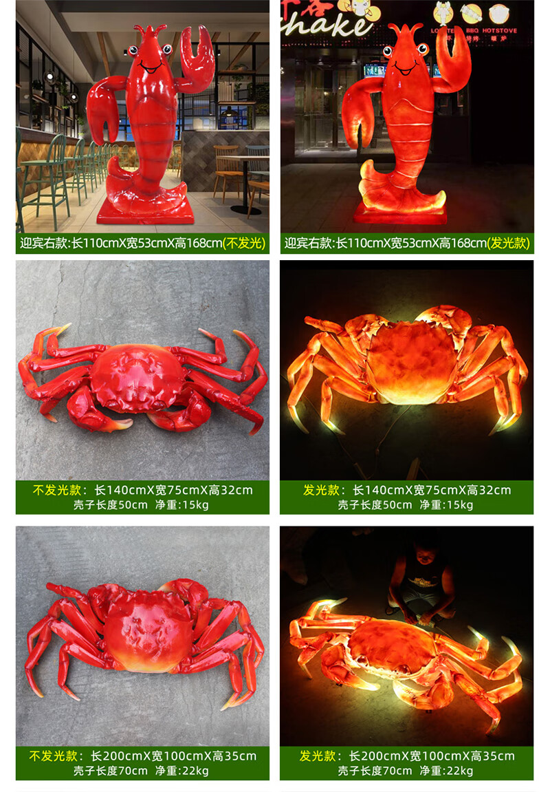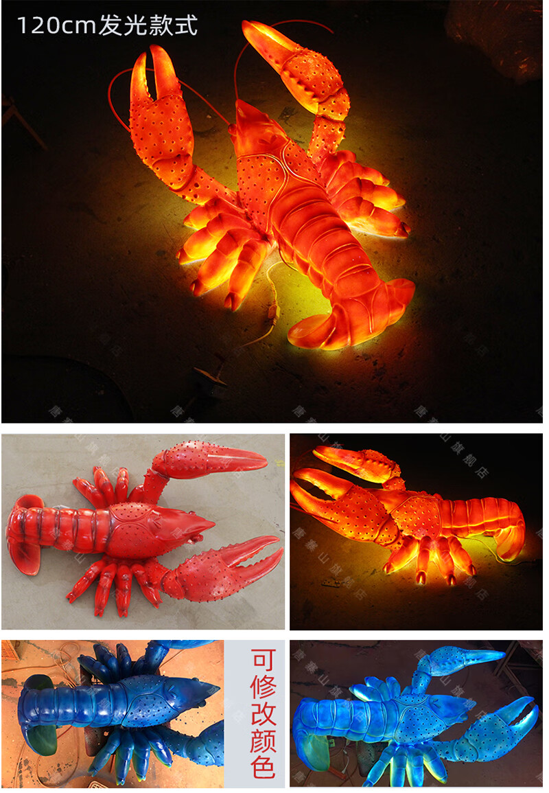 Xiao Xiao cloth fiberglass luminous crab sculpture simulated seafood oyster lobster model ornaments door sign decoration light box lobster 2.95 meters long luminous (