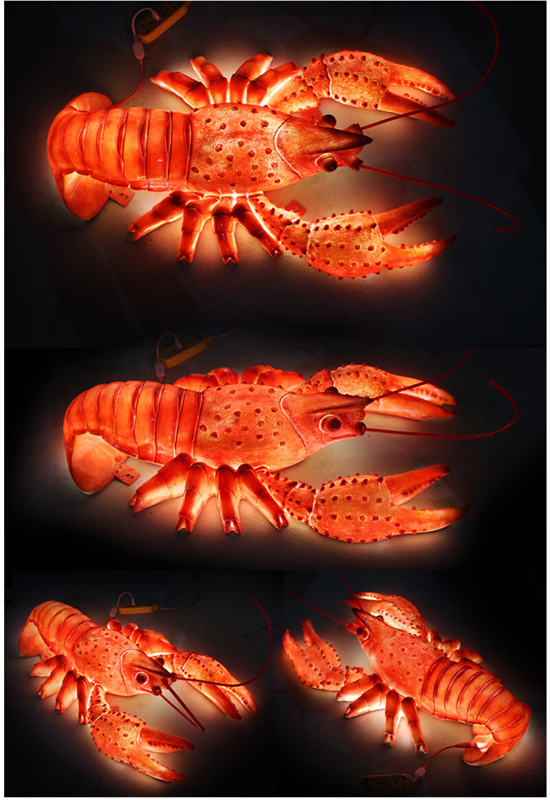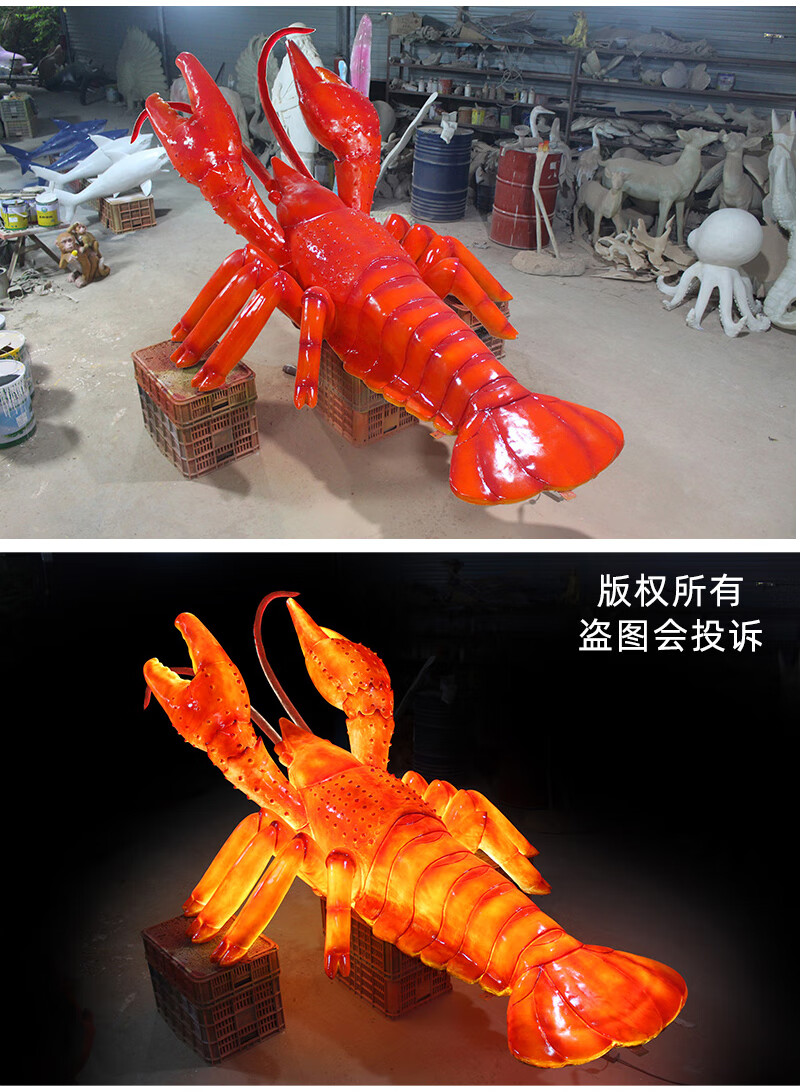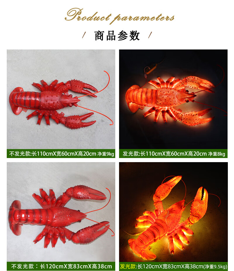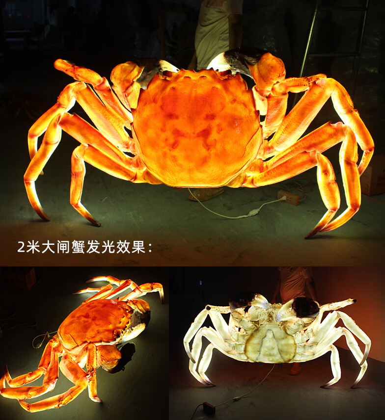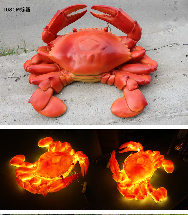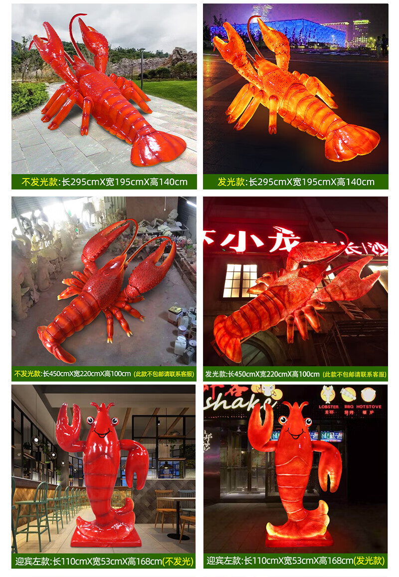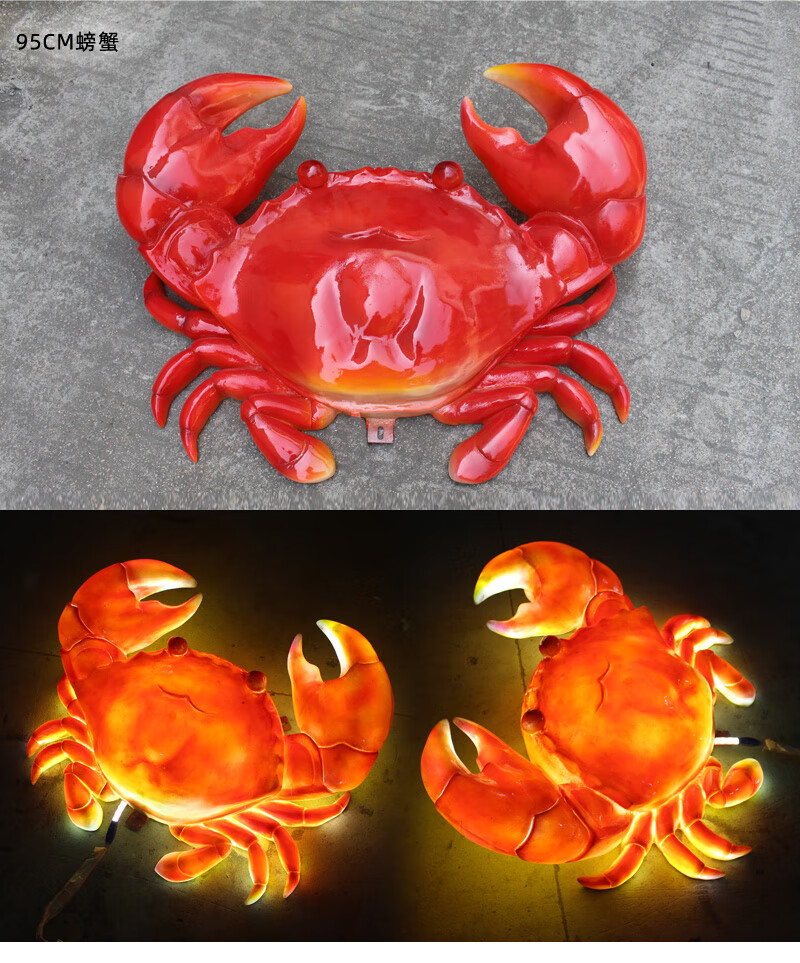 Xiao Xiao cloth fiberglass luminous crab sculpture simulated seafood oyster lobster model ornaments door sign decoration light box lobster 2.95 meters long luminous (