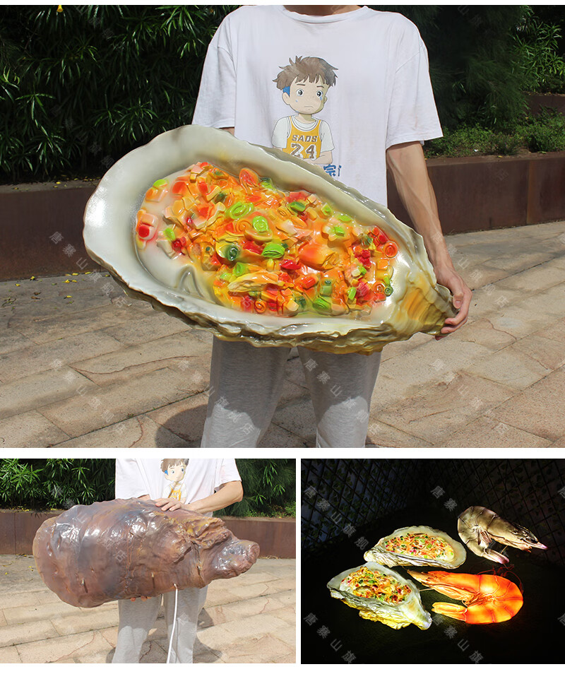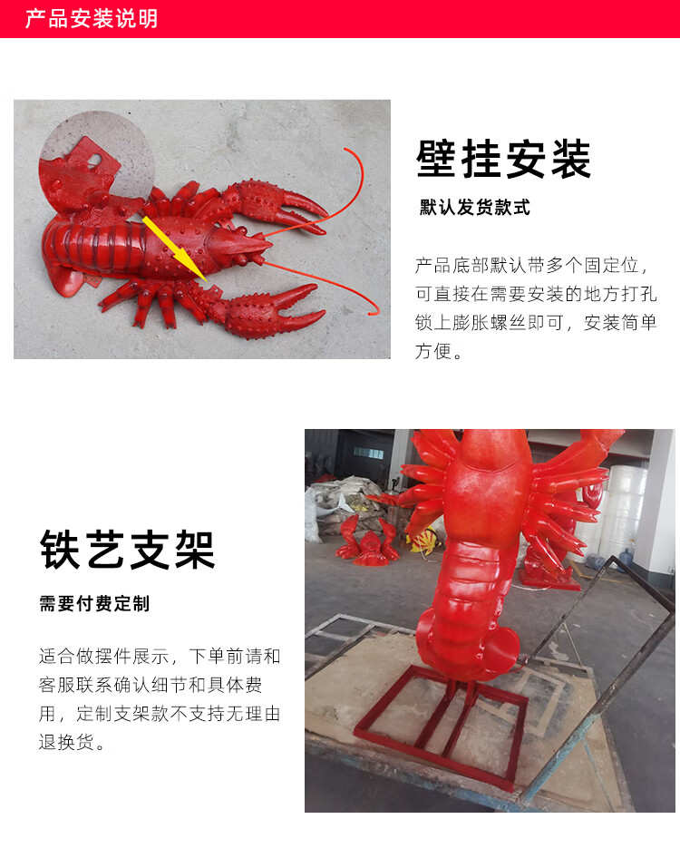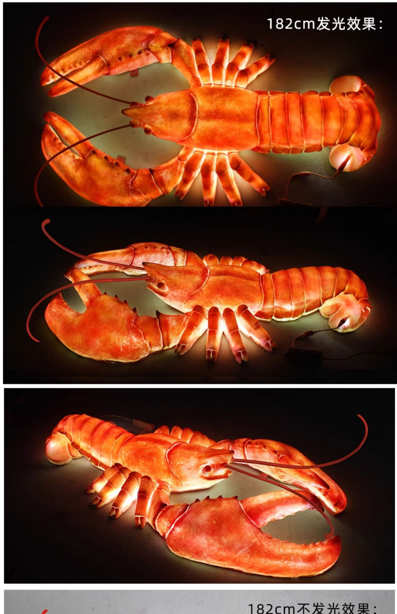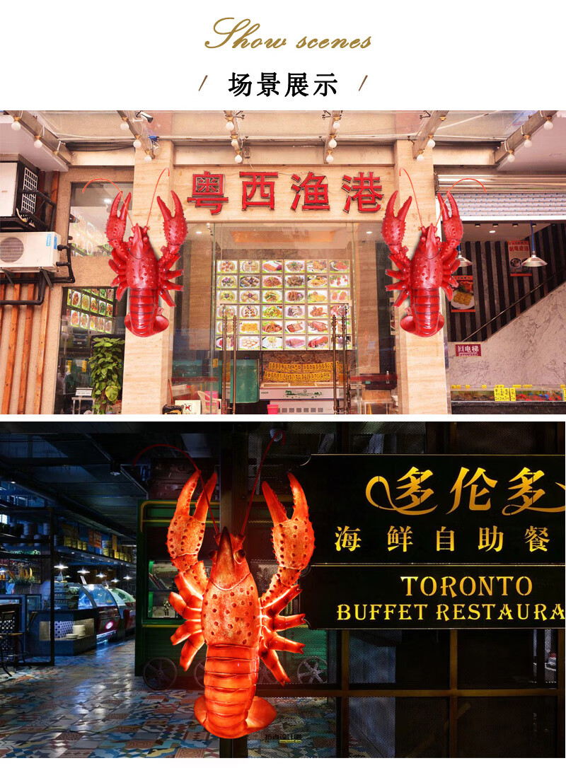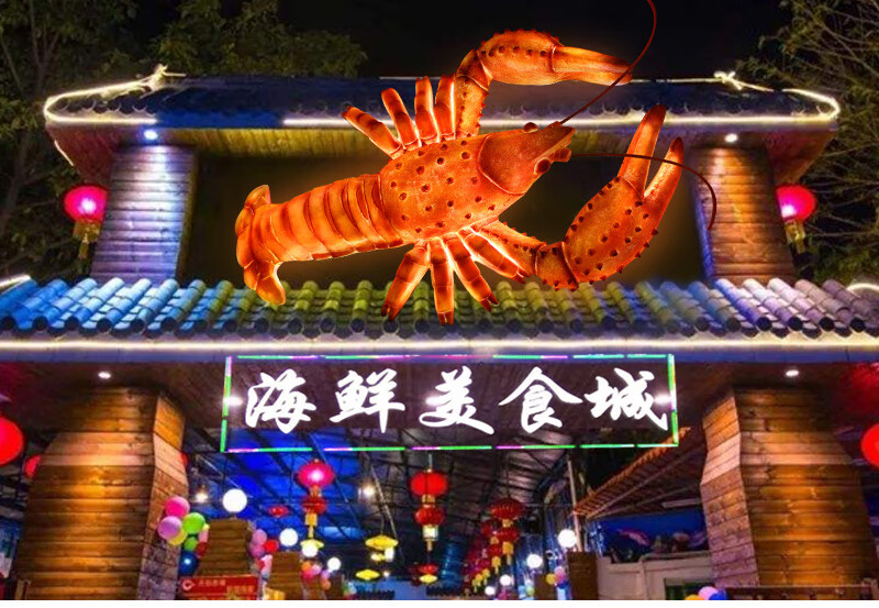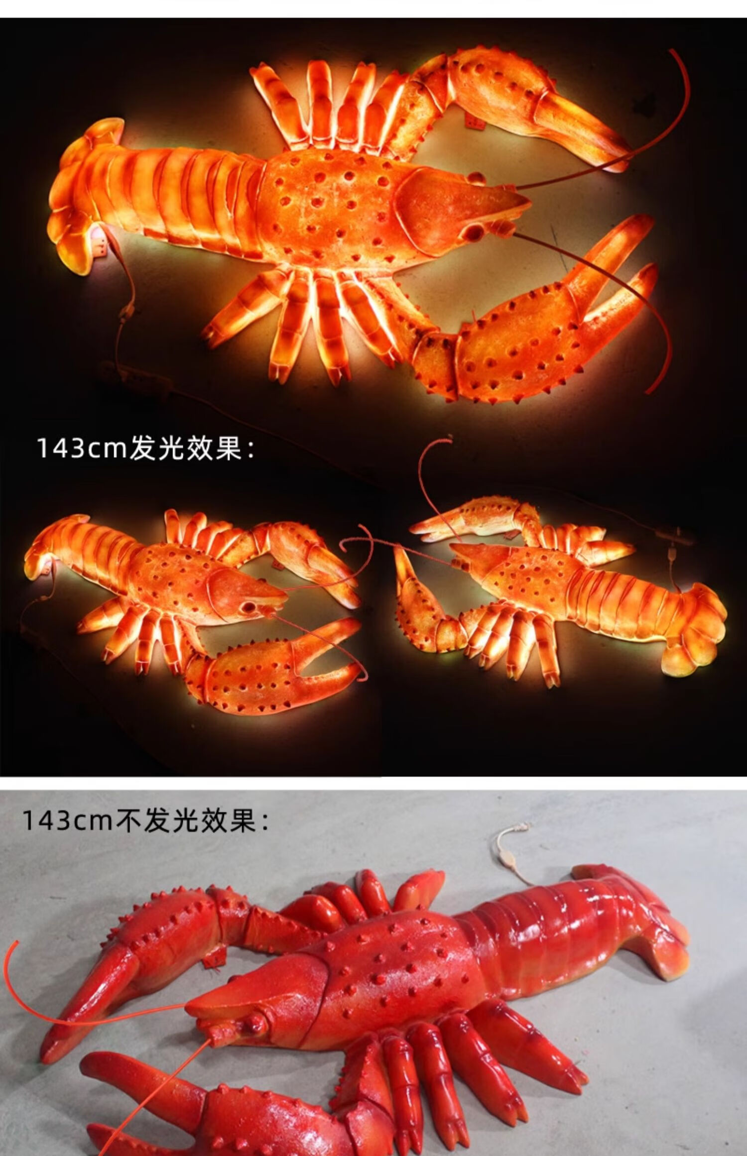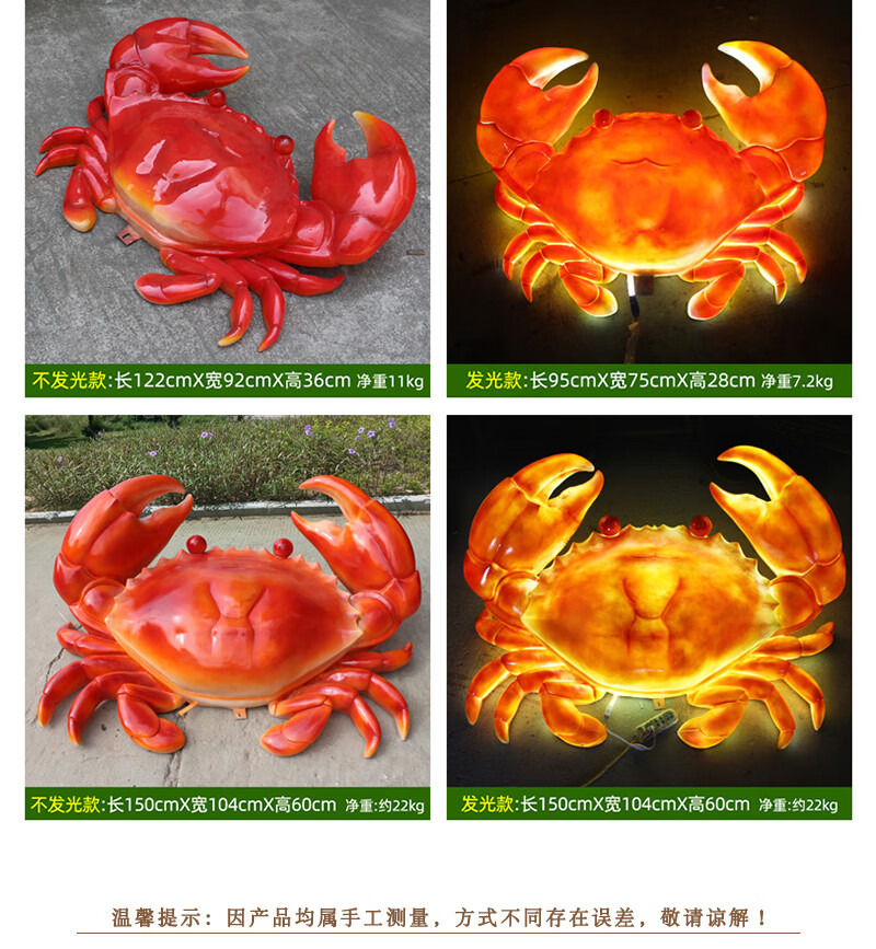 Xiao Xiao cloth fiberglass luminous crab sculpture simulated seafood oyster lobster model ornaments door sign decoration light box lobster 2.95 meters long luminous (