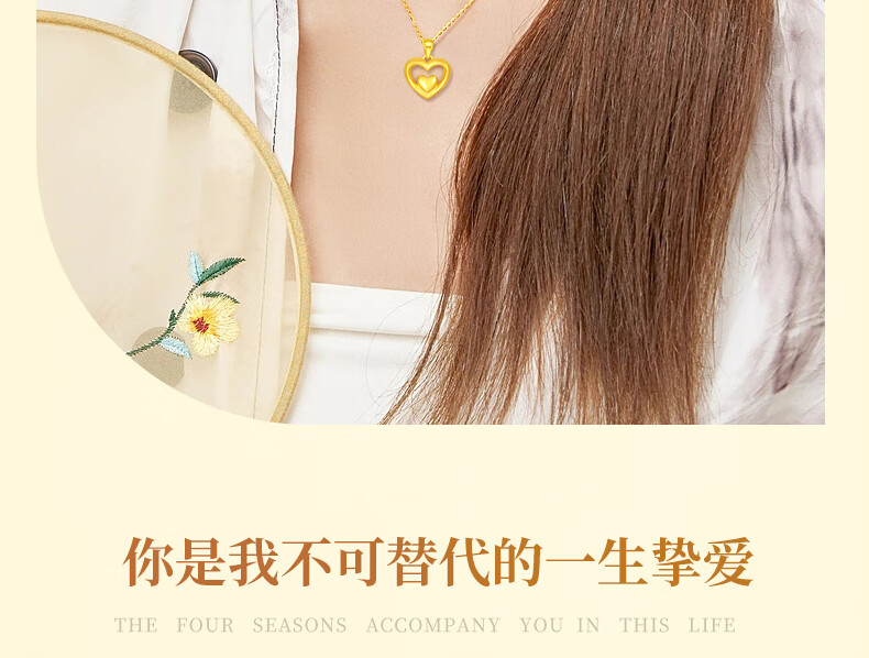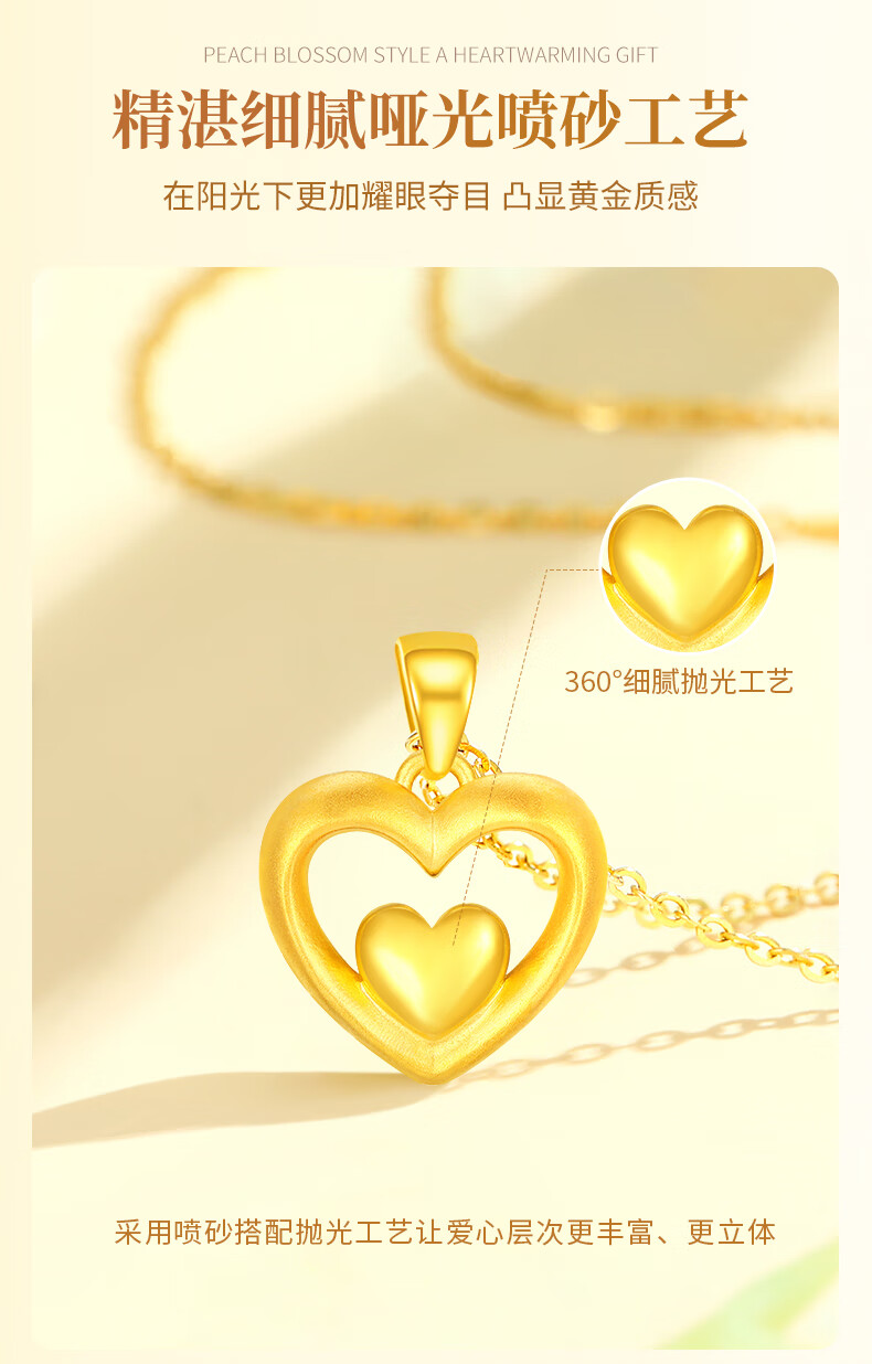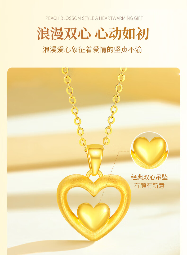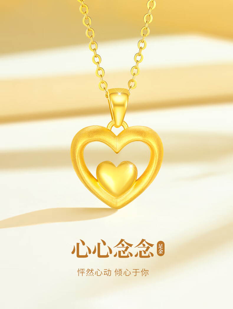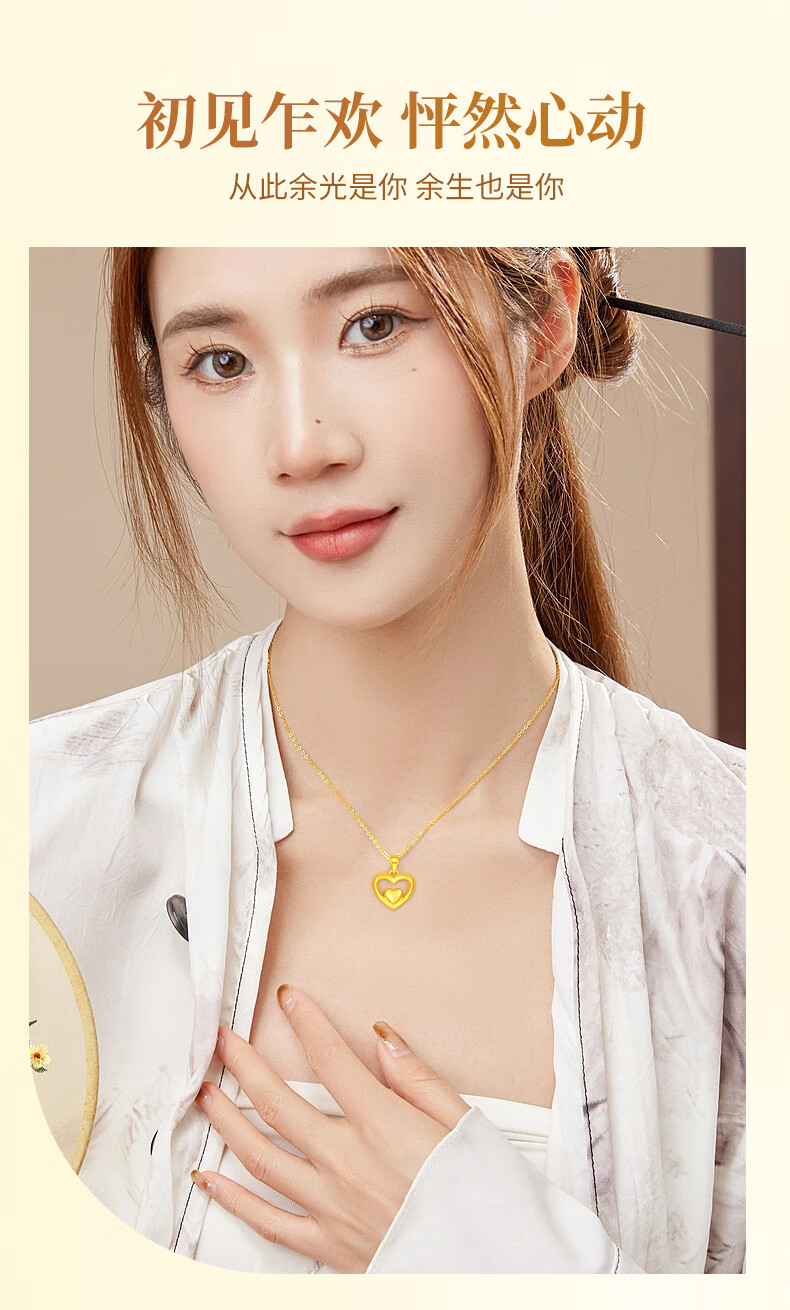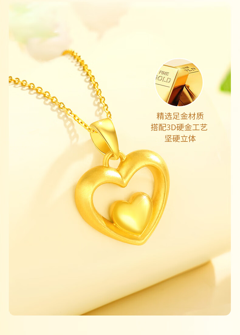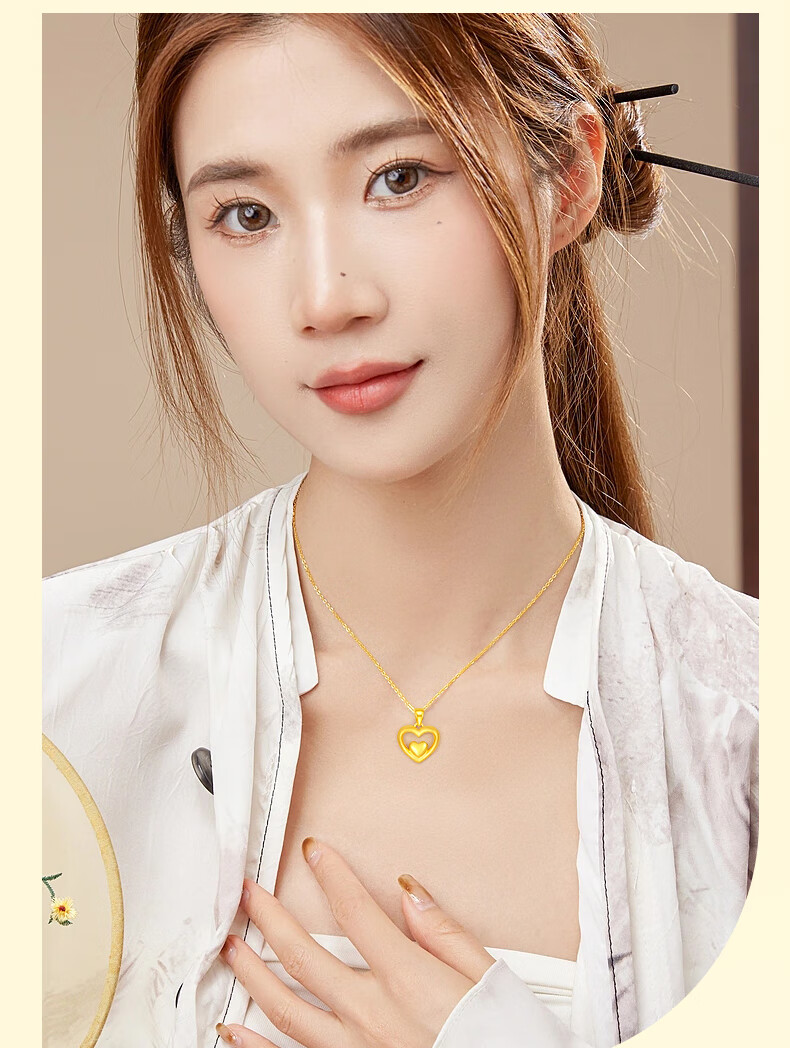 China Gold (CHINA GOLD) Heartfelt Gold Necklace Women's Love Heart Pure Gold Pendant Birthday Gift for Girlfriend and Wife Wedding Anniversary Marriage Pure Gold Love Pendant and Free Silver Chain