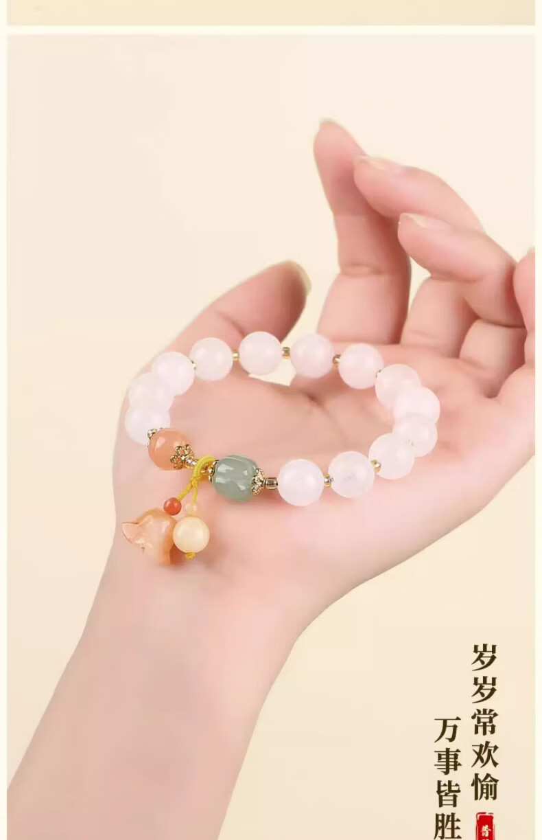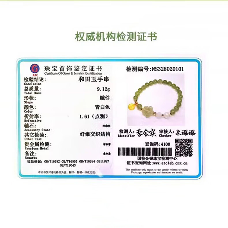 BOSFRU Afghan Jade White Jade Bracelet Women's Original Design Good Luck Orchid of the Valley Premium Hand Accessory Simple Sweet Gift Orchid of the Valley Pendant Bracelet