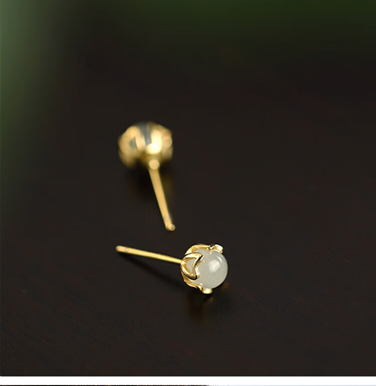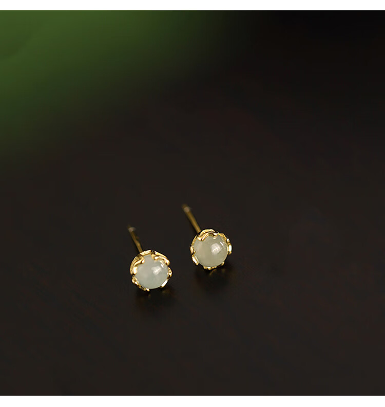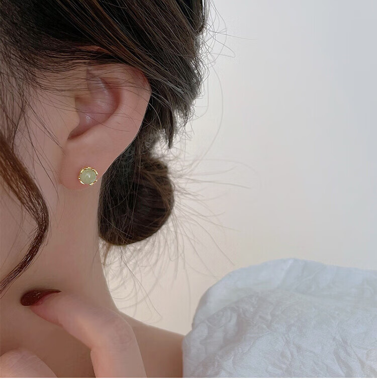 Miao Xiuzu Silver Needle Earrings for Women Retro French Style Fashionable Earrings Imitation Hetian Jade Earrings for Girls Birthday Gifts Hetian Jade Earrings-Gold