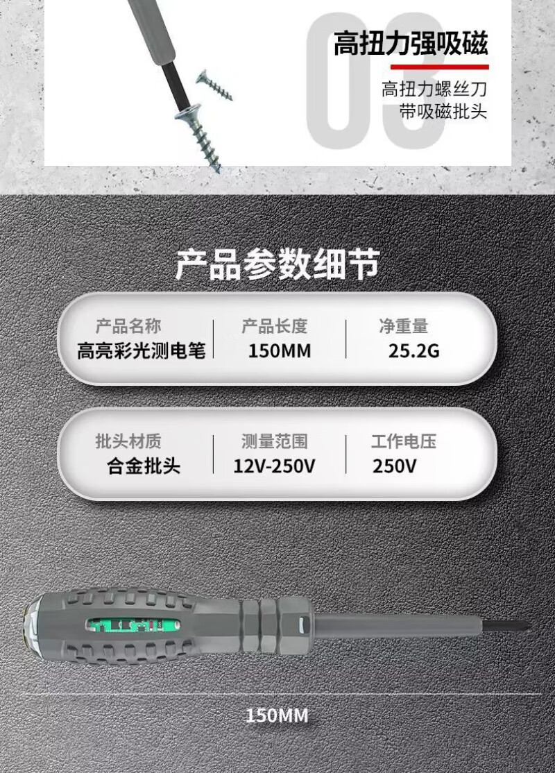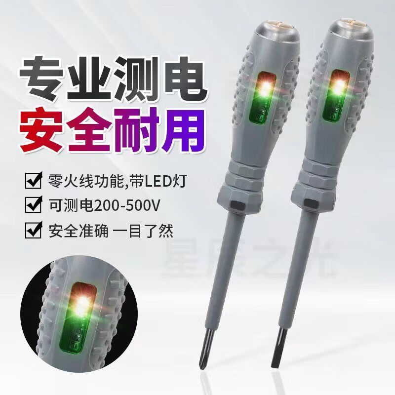 卫辞 电笔电工专用测电笔断点检测6-500v高扭力高亮螺丝刀智能测抗摔 秒测断点 冲量中【梅花头+平字头】共2支