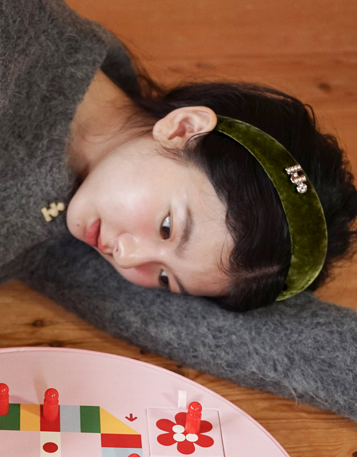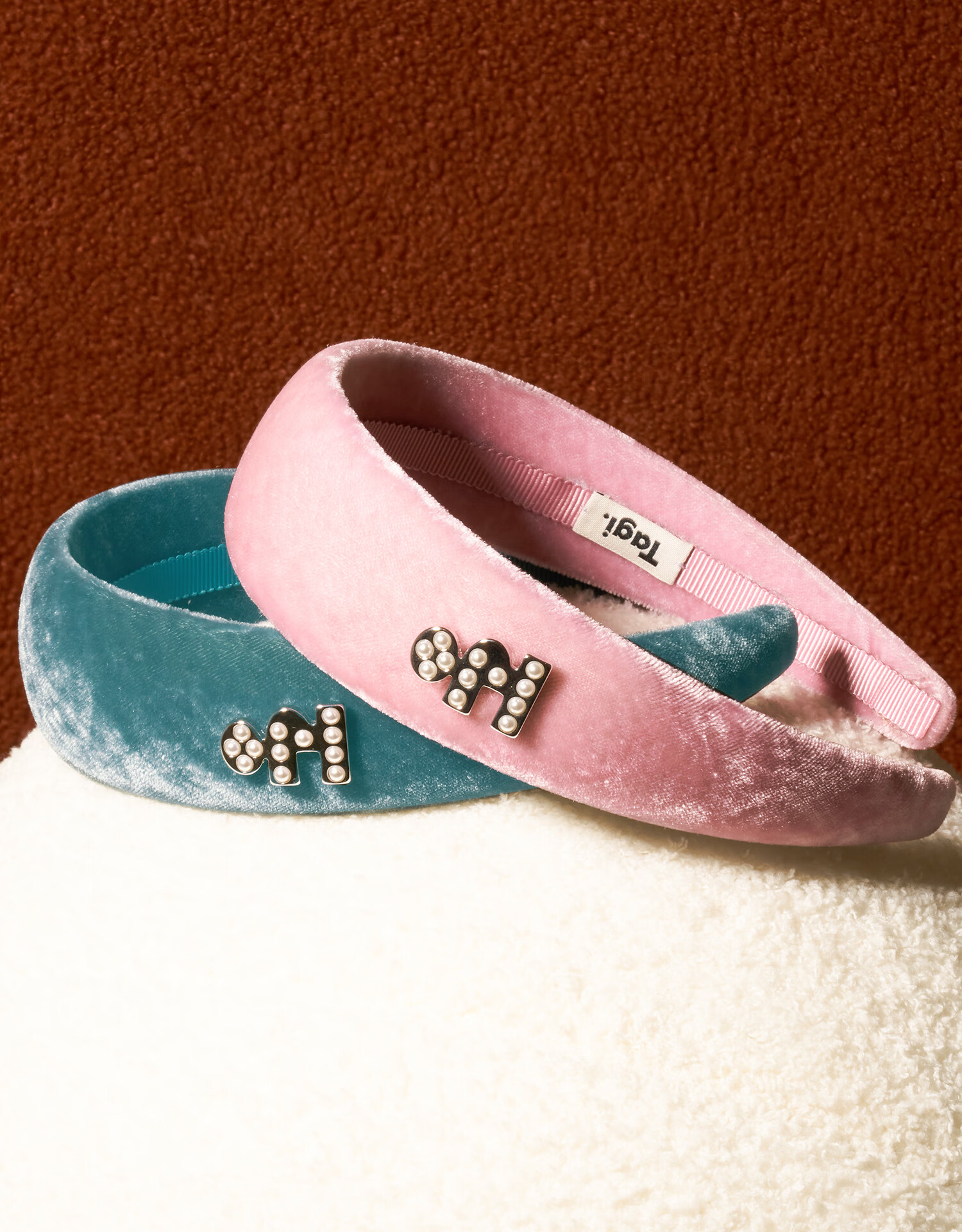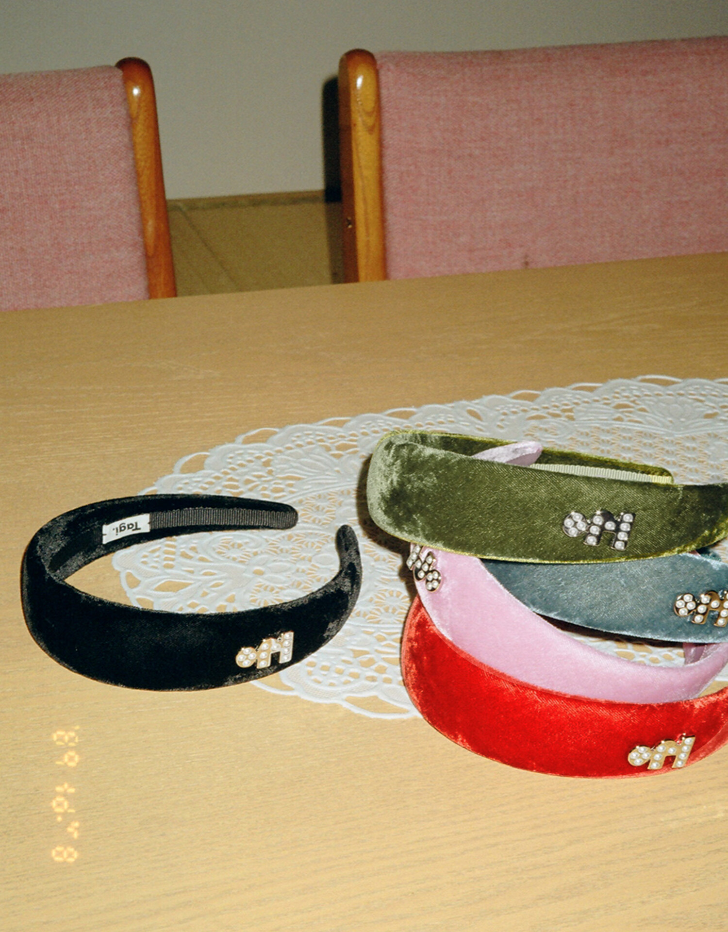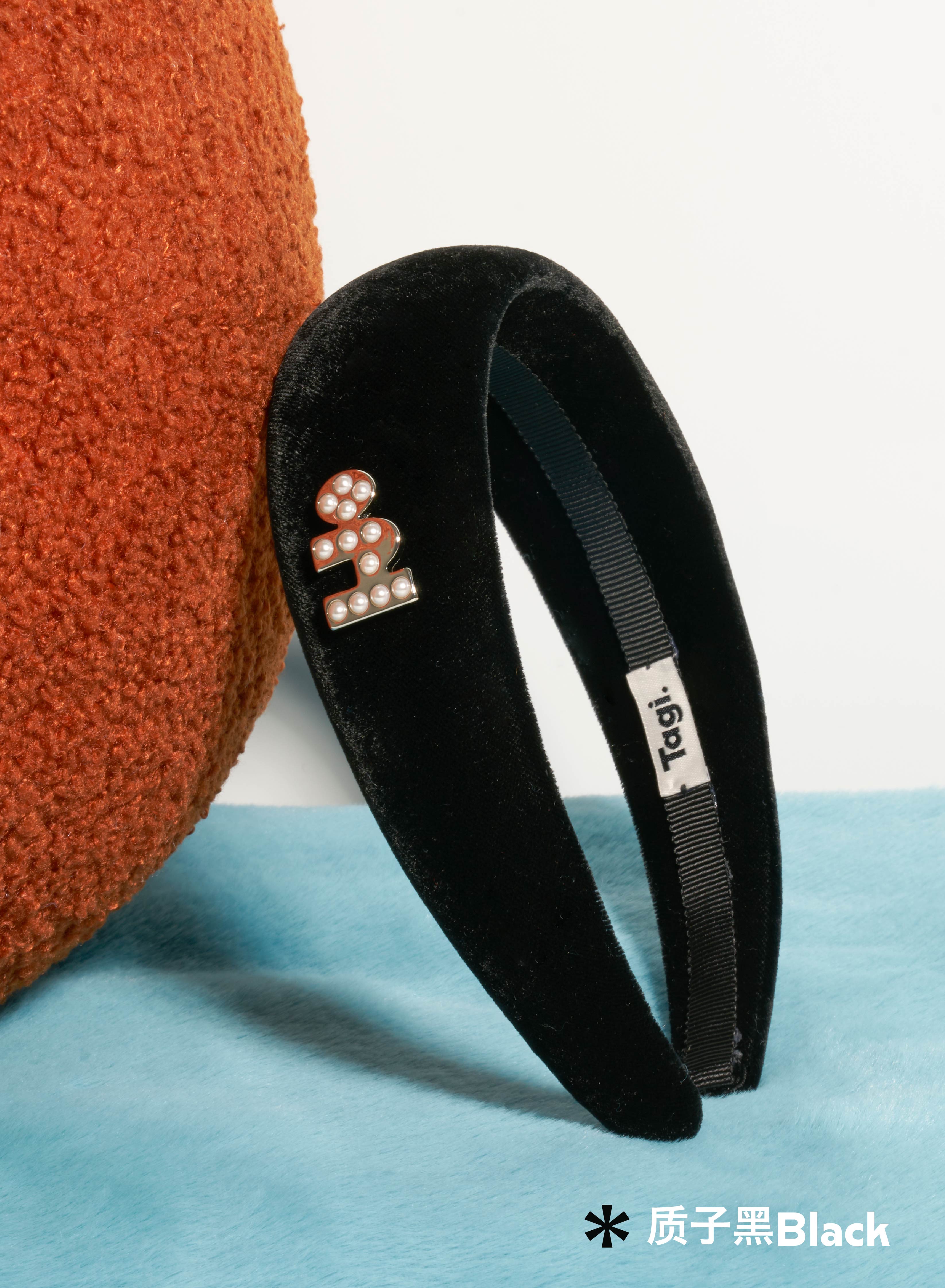 Tagi.Velvet<i>Retro Imagination Pearl Metal Velvet Silk Headband Headband Protonic Black