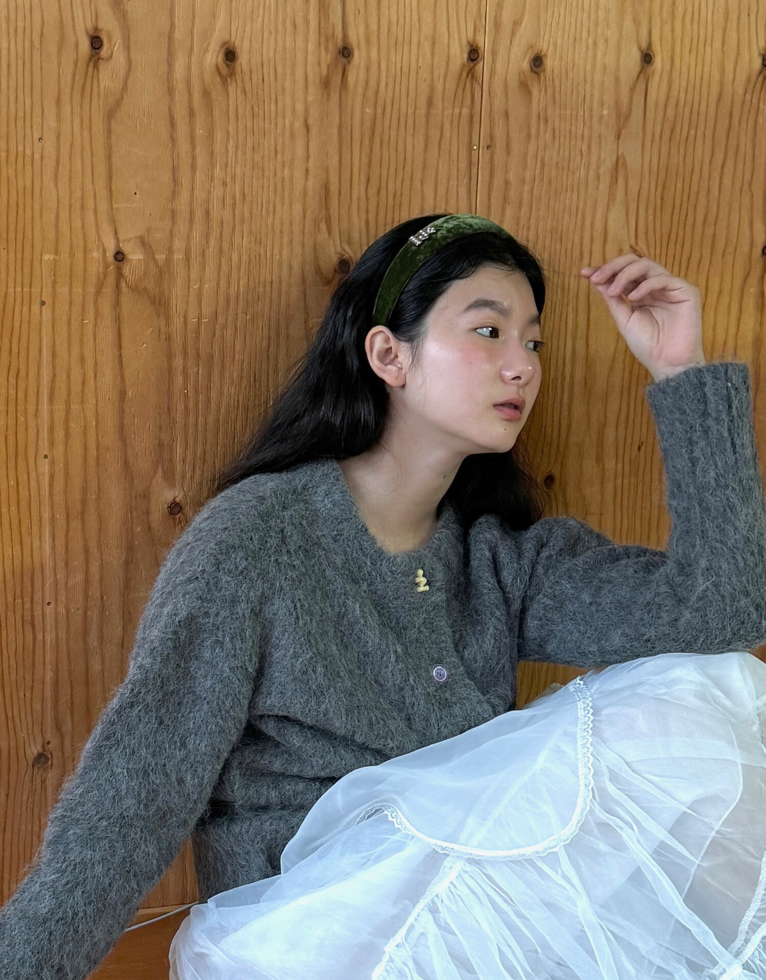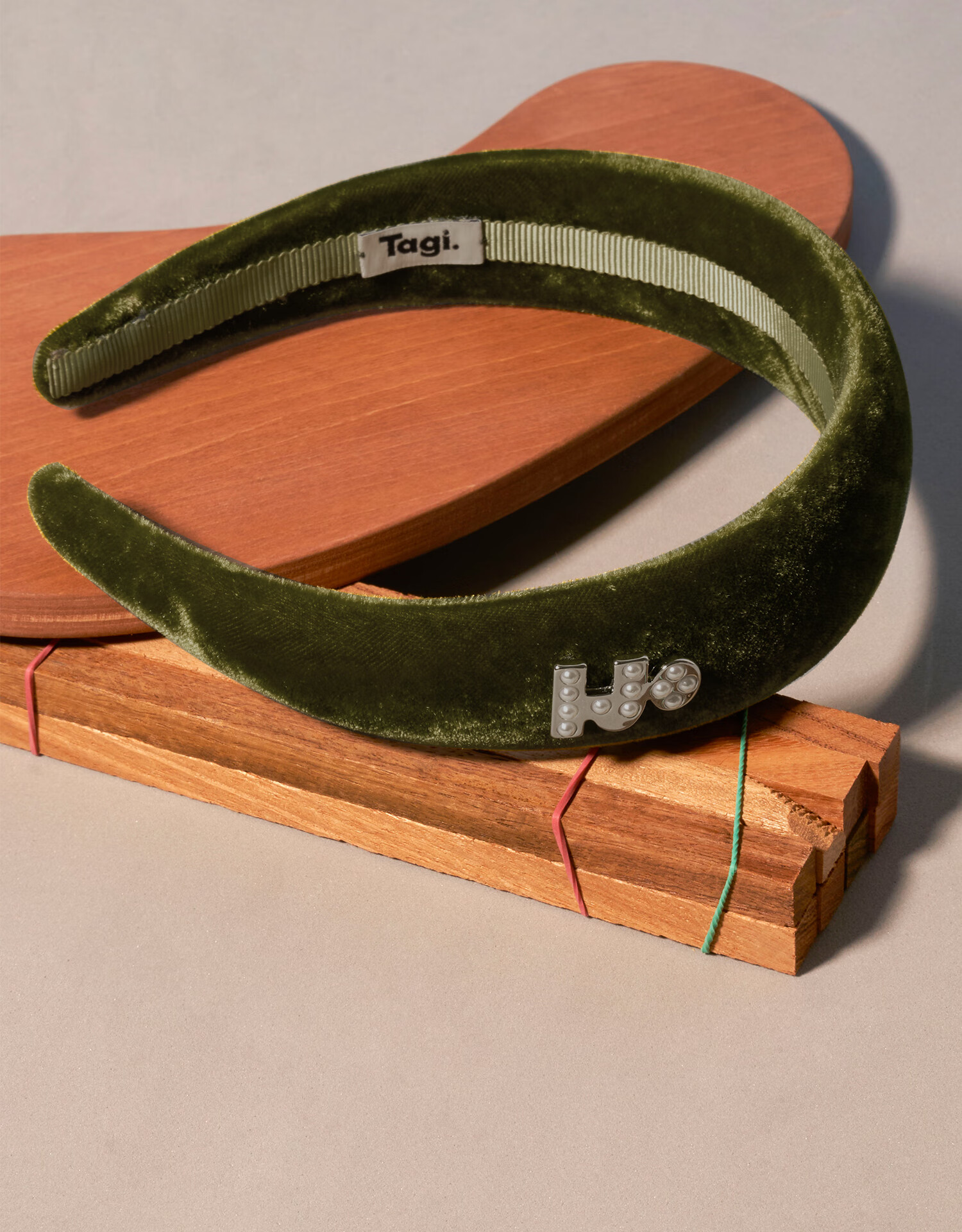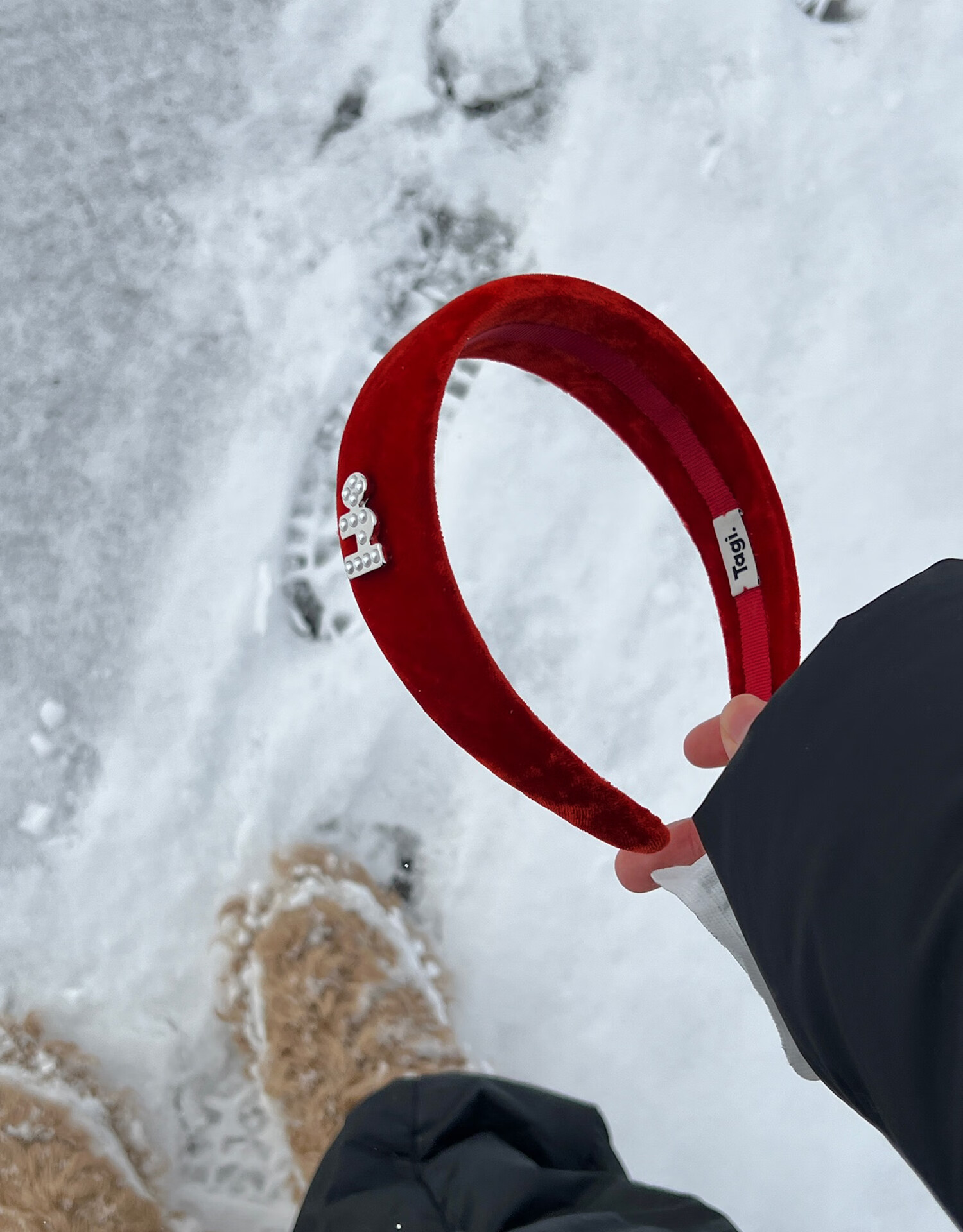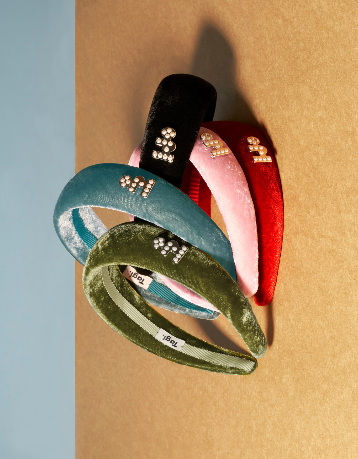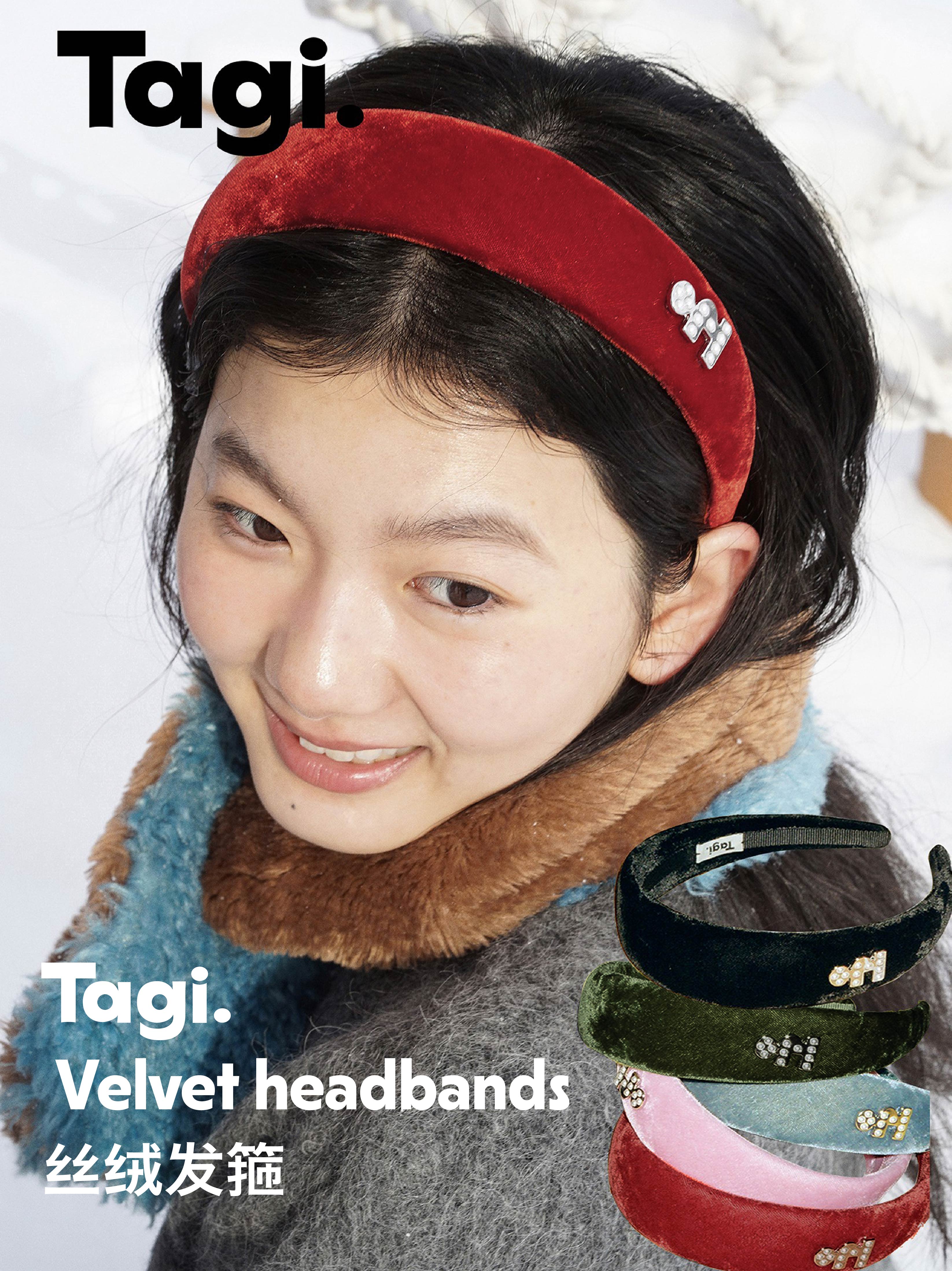 Tagi.Velvet<i>Retro Imagination Pearl Metal Velvet Silk Headband Headband Protonic Black