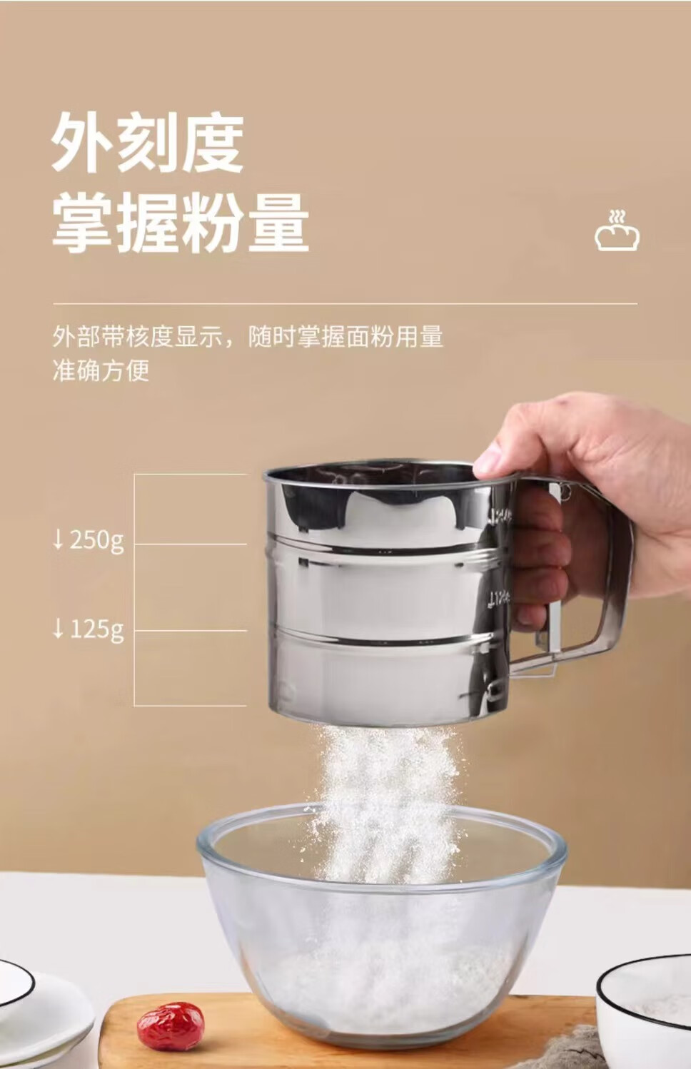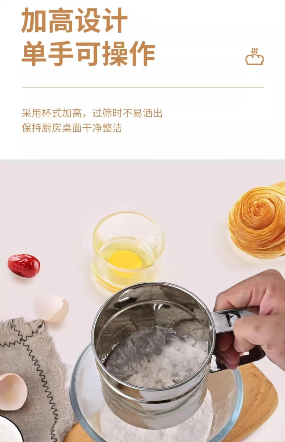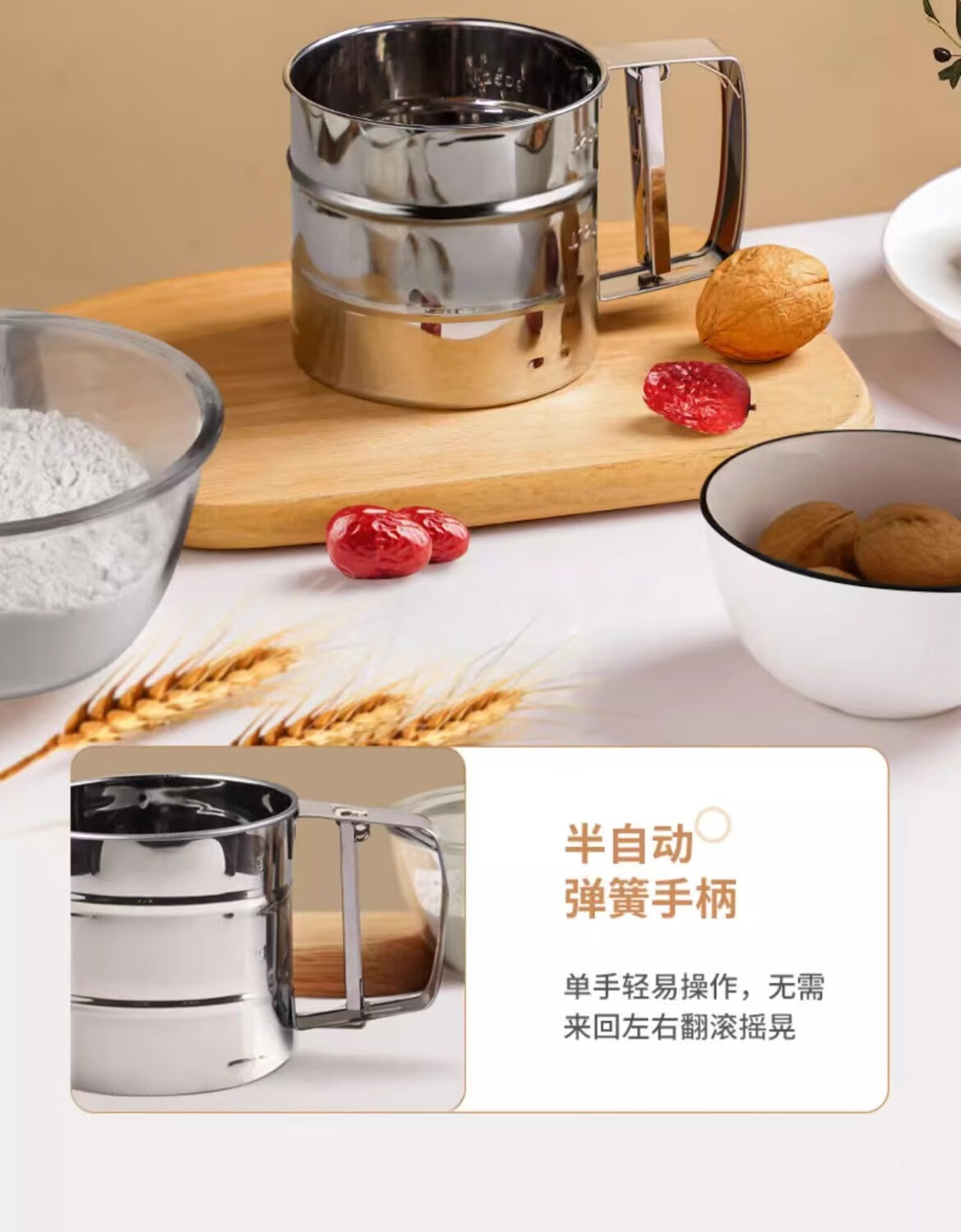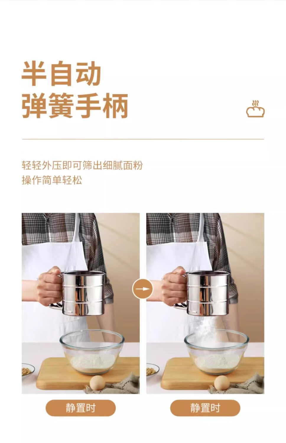 Flour sieve semi-automatic handheld flour sieve filter sieve baking tool drain cup type sugar powder duster
