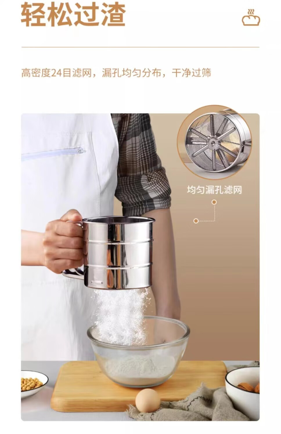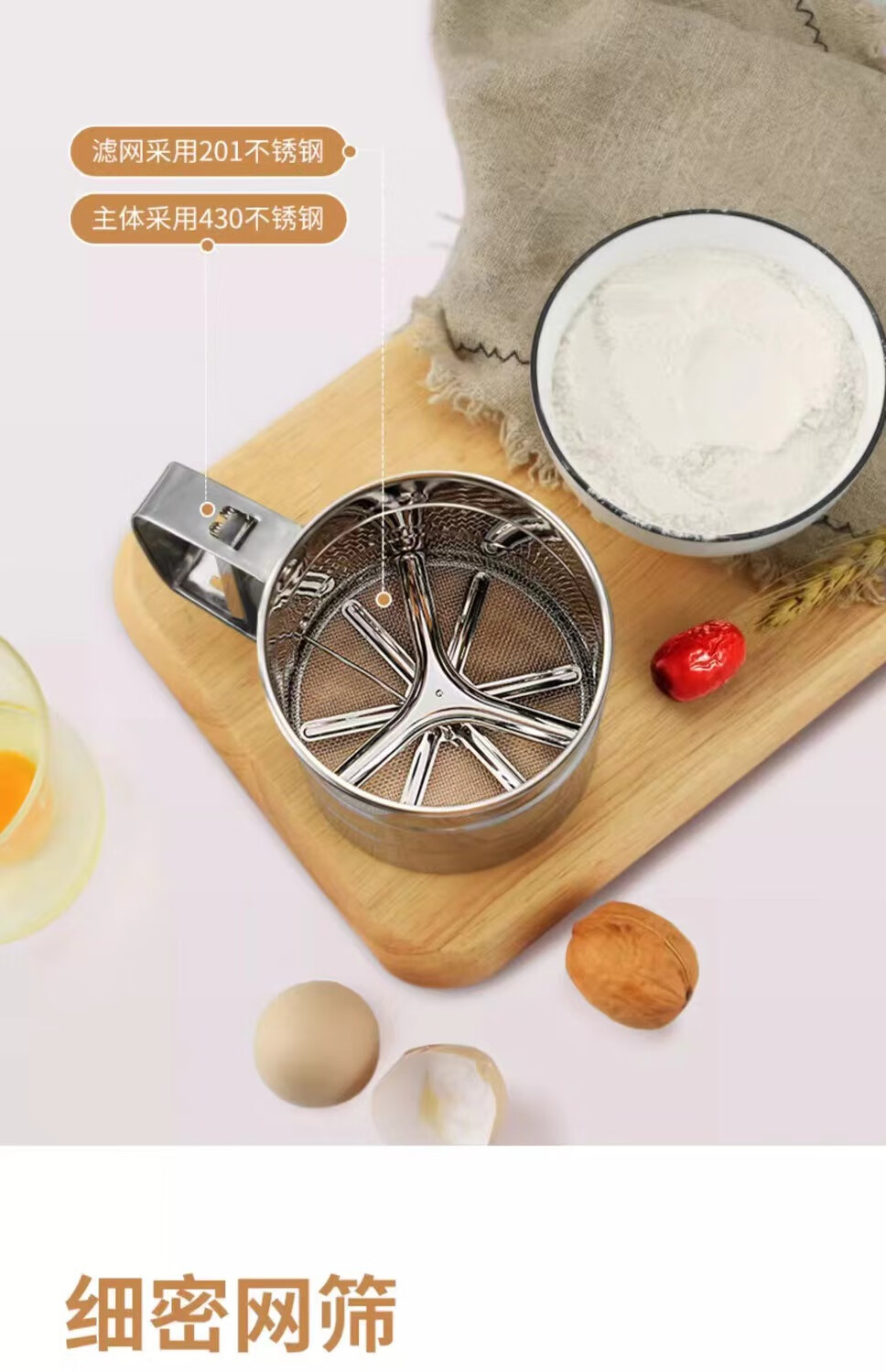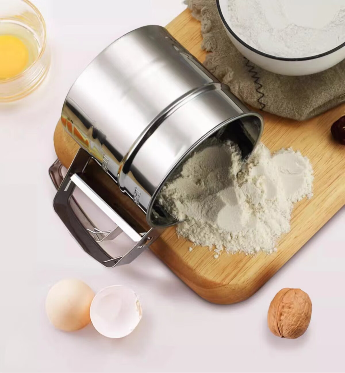 Flour sieve semi-automatic handheld flour sieve filter sieve baking tool drain cup type sugar powder duster