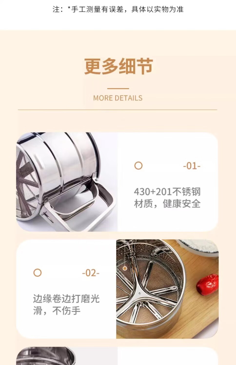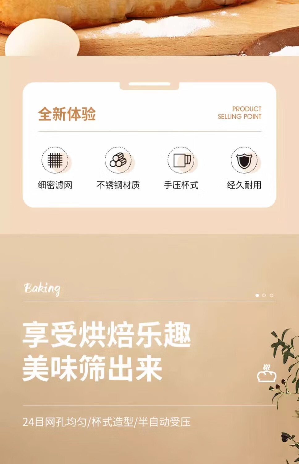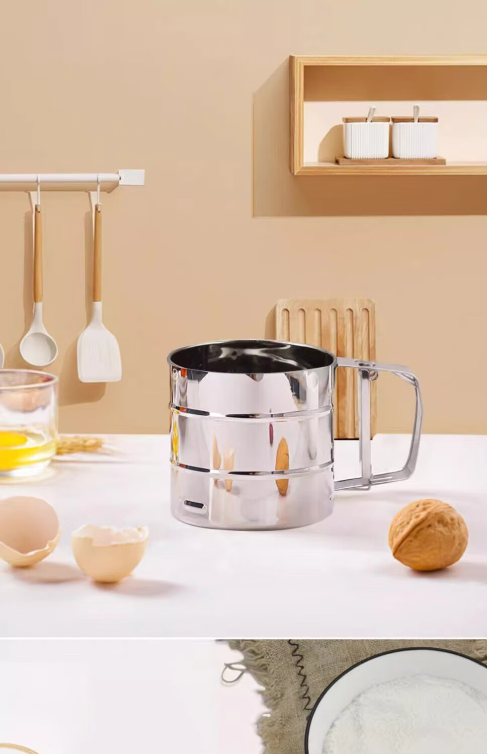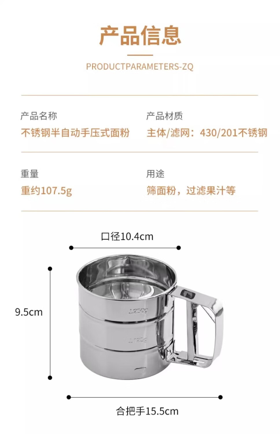 Flour sieve semi-automatic handheld flour sieve filter sieve baking tool drain cup type sugar powder duster