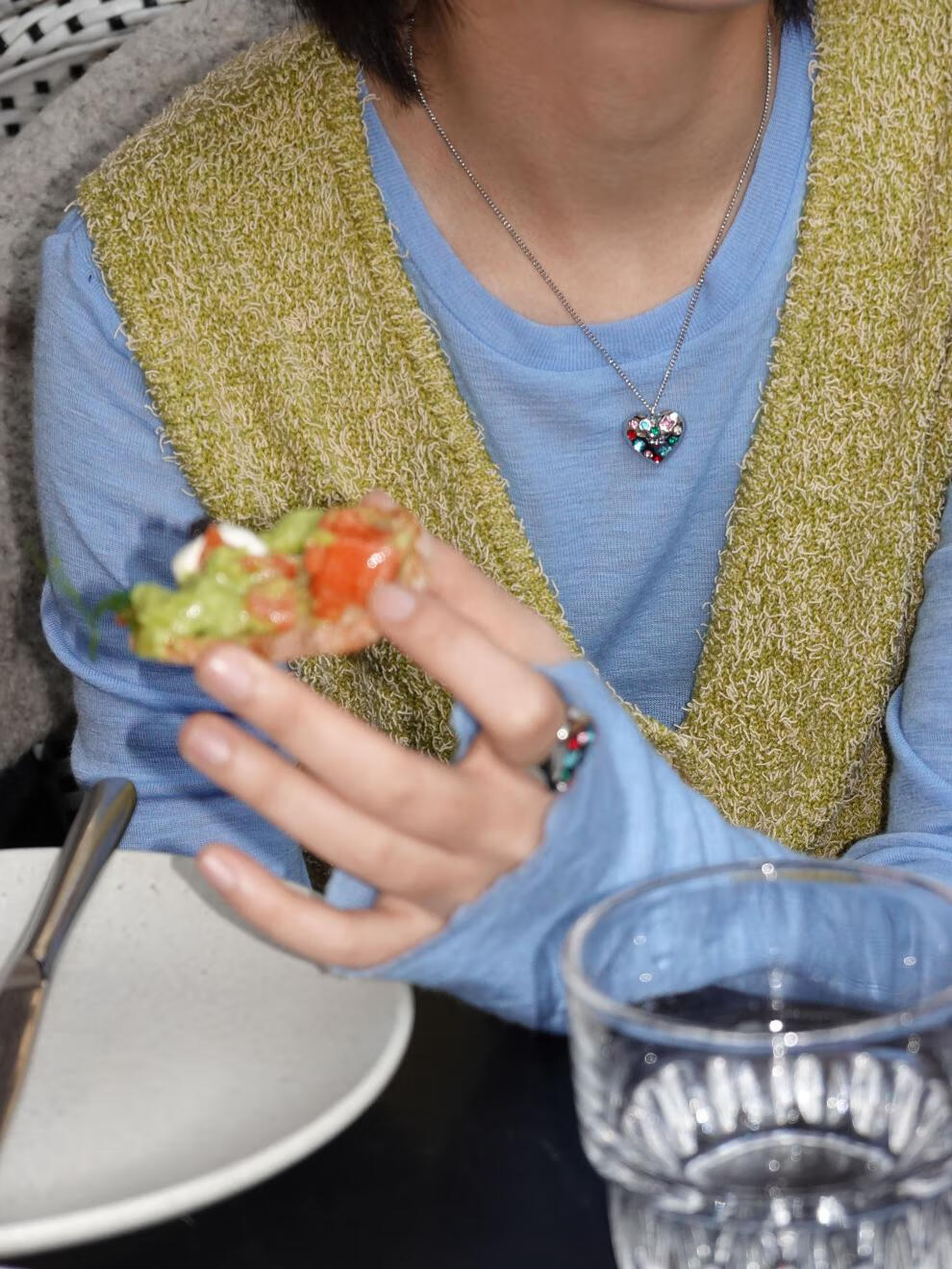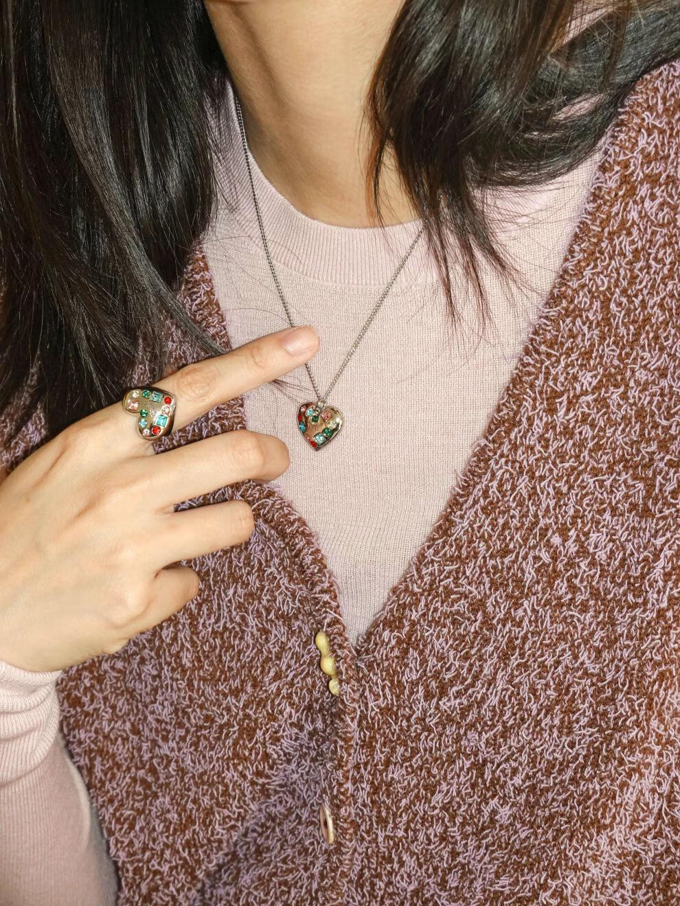Tagi.Imagine Love Beating Colored Diamond Pendant Simple Niche Accessory Necklace Pendant/Open Ring Heart Beating Necklace