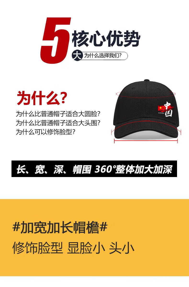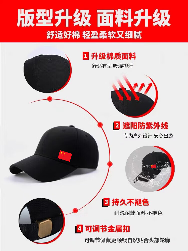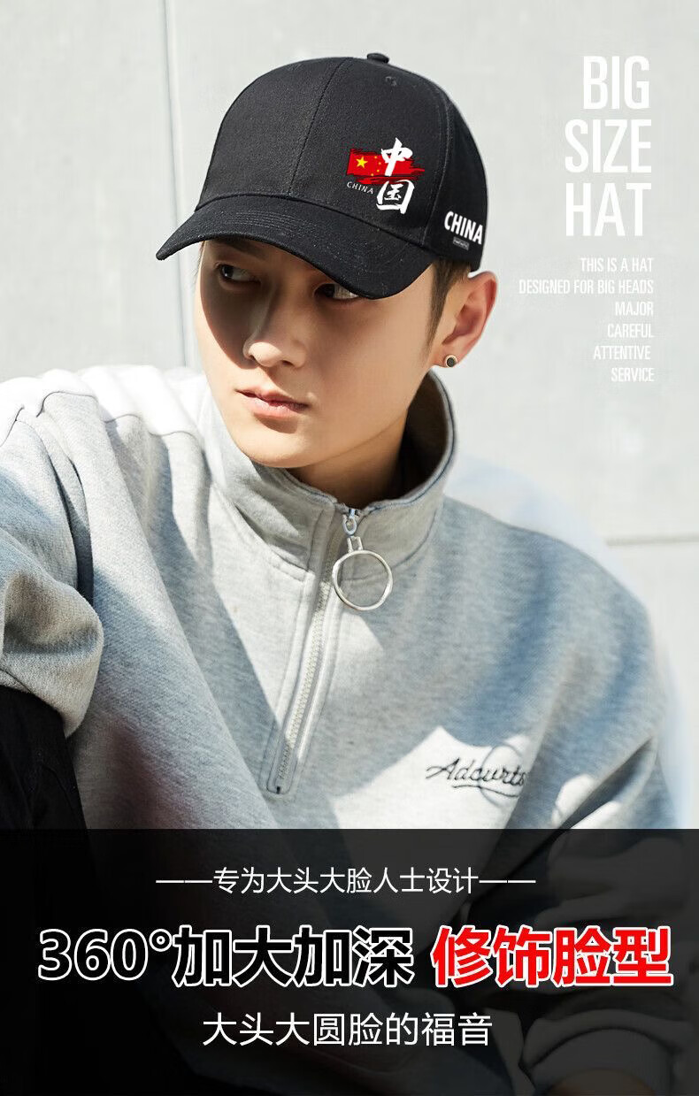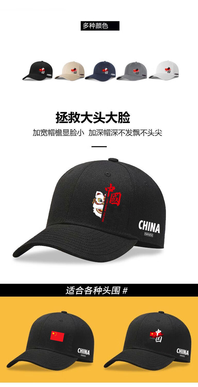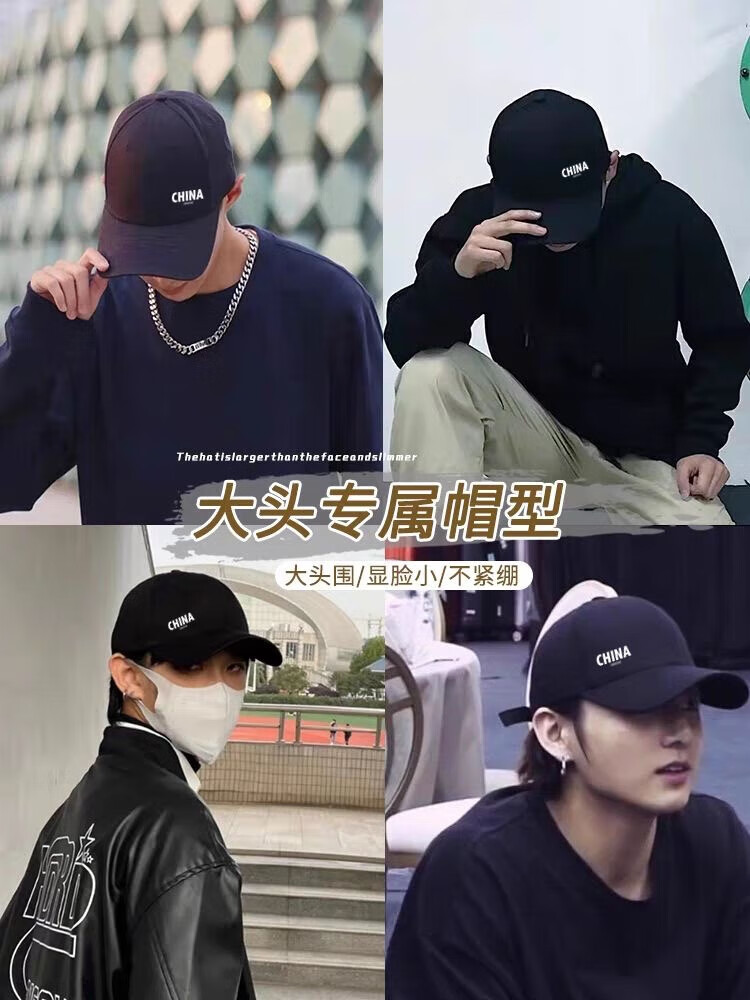 CHINA National Trendy Hat Men's Versatile New Face Revealing Small Spring Autumn and Winter Sun Hat Women's Outdoor Leisure Peaked Hat Black China CHINA One Size Upgraded Pure Cotton High Quality Buckles Adjustable