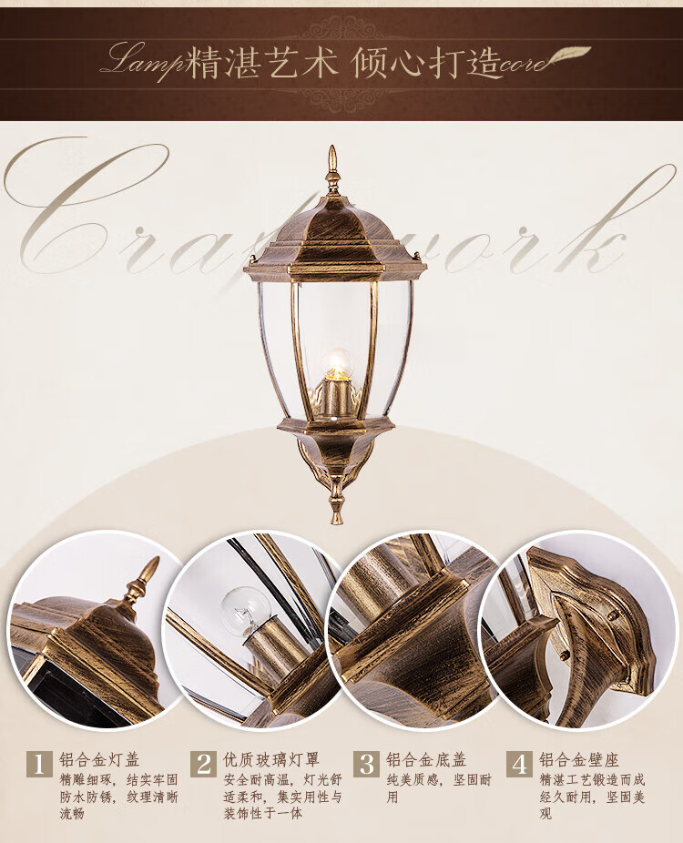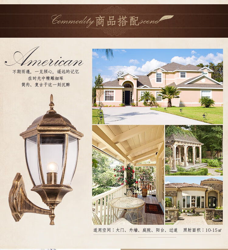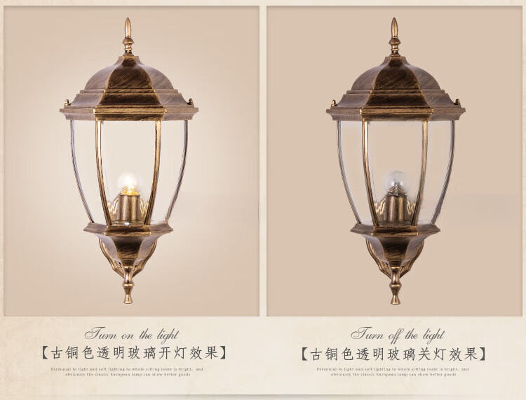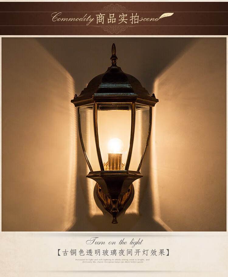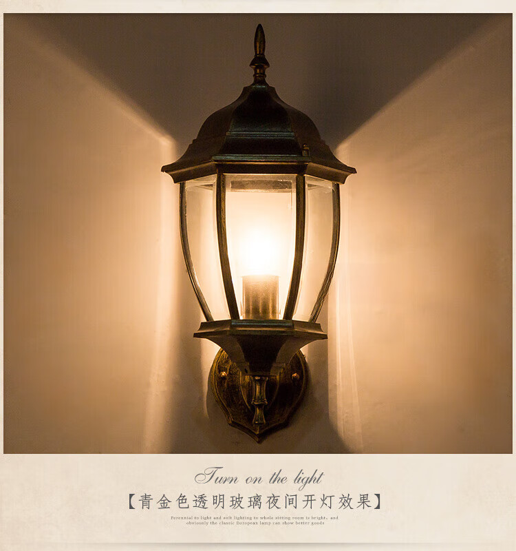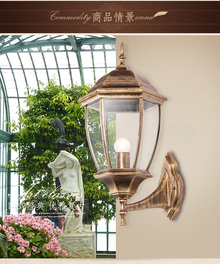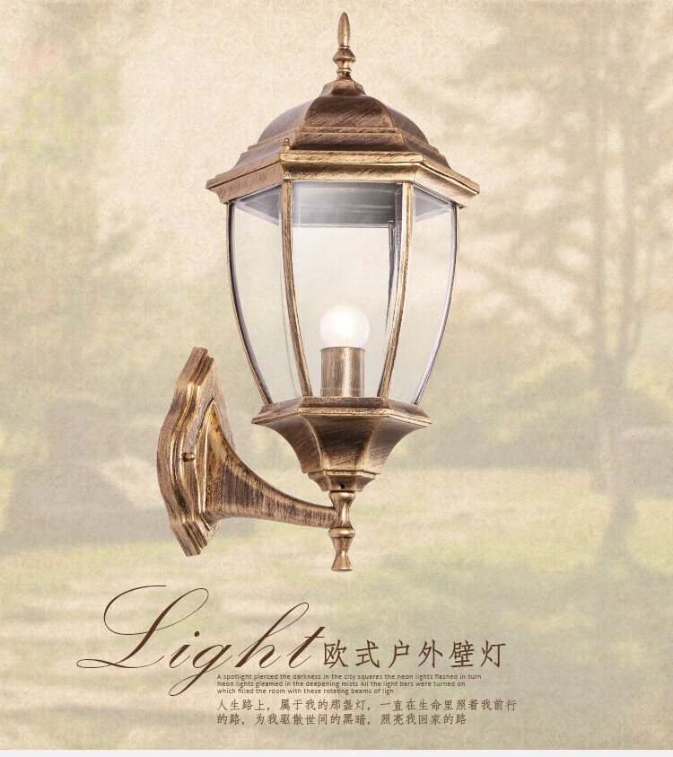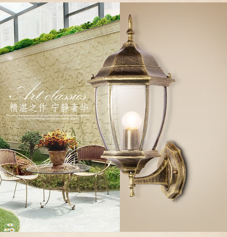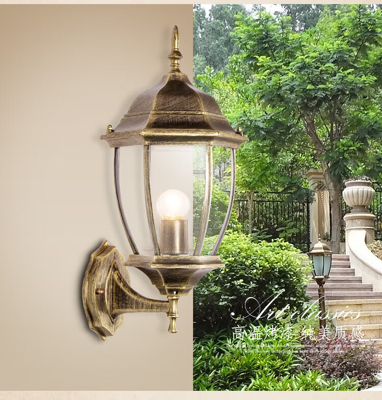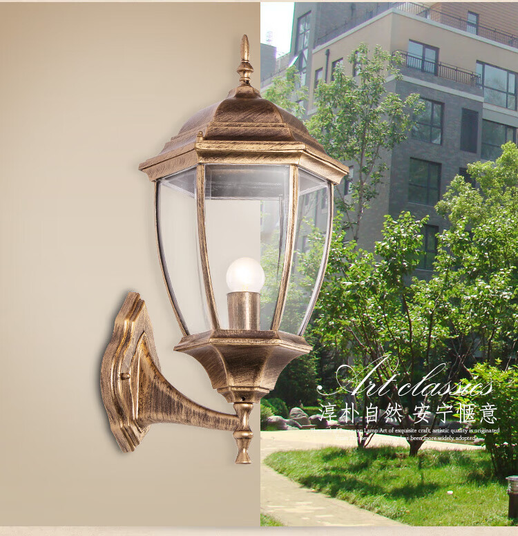 Yilin outdoor wall lamp waterproof garden lamp European style outdoor villa exterior wall lamp balcony aisle corridor American retro wall lamp large green gold frosted glass