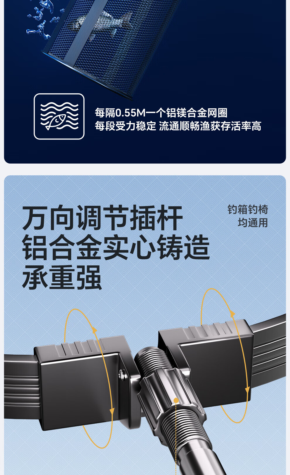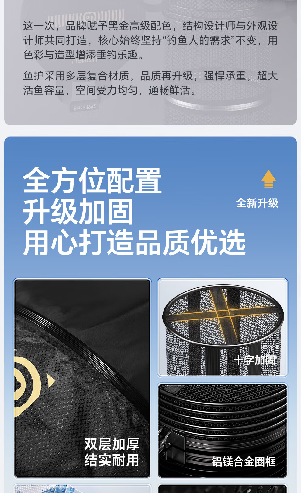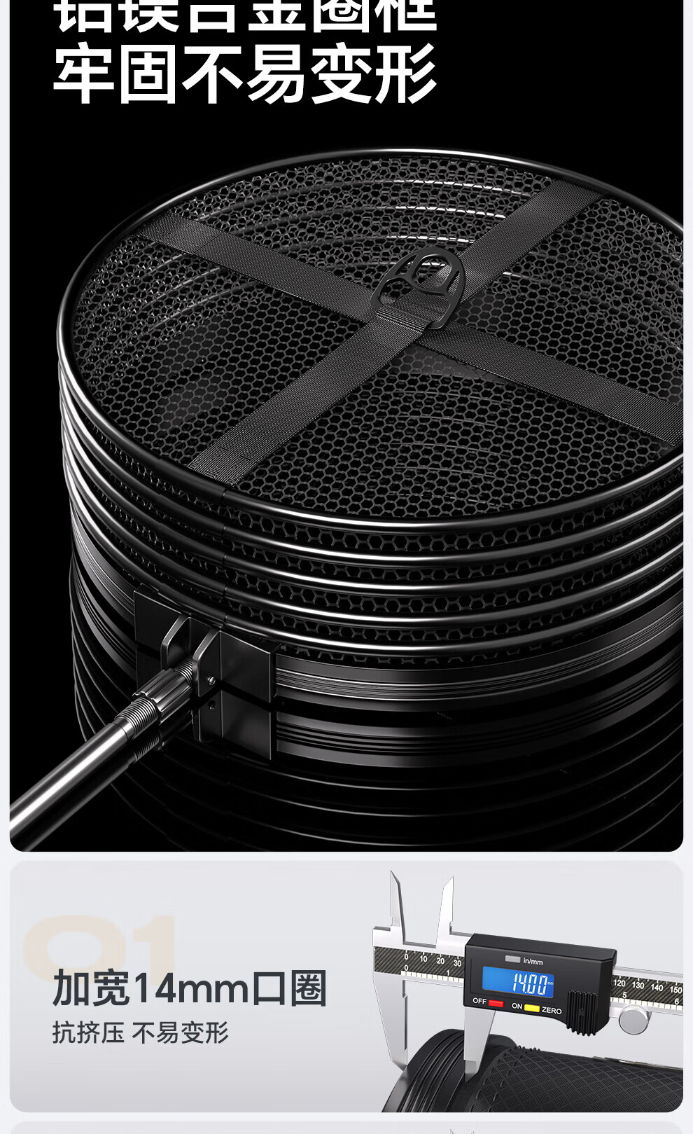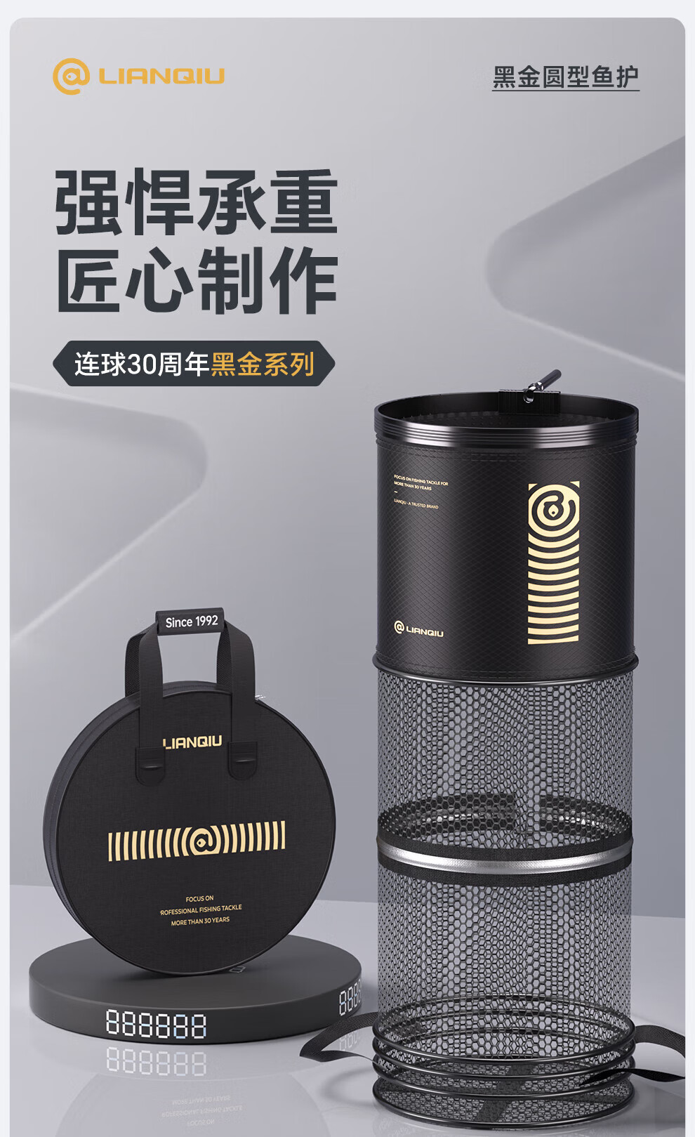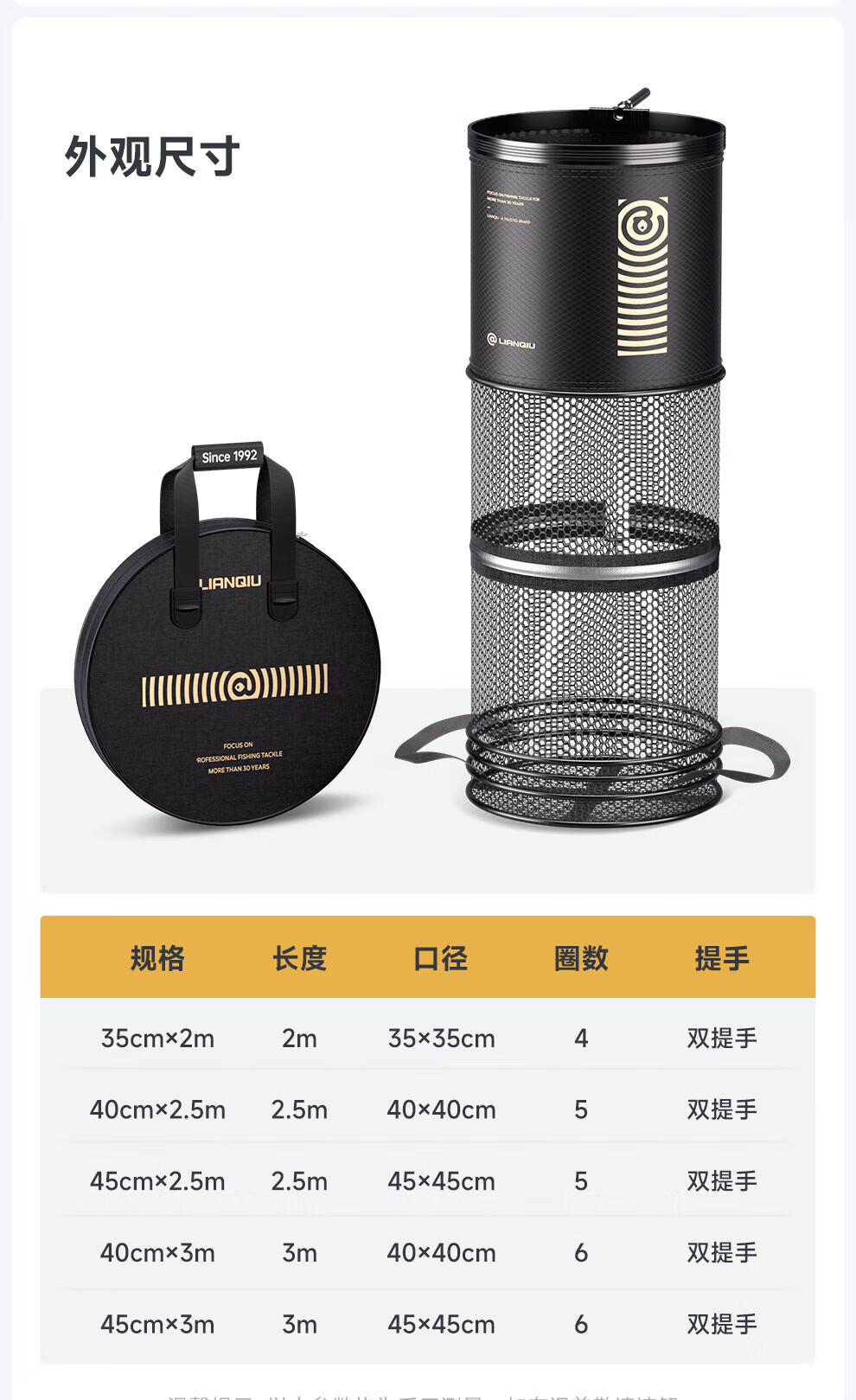 LIANQIU Fish Protector Fisherman Bag Black Pit Competition Fish Net Pocket Fishing Net Glued Thickened Quick-drying Small Fish Protector Net Fishing Gear Accessories 2m 35cm Black Gold Round Fish Protector