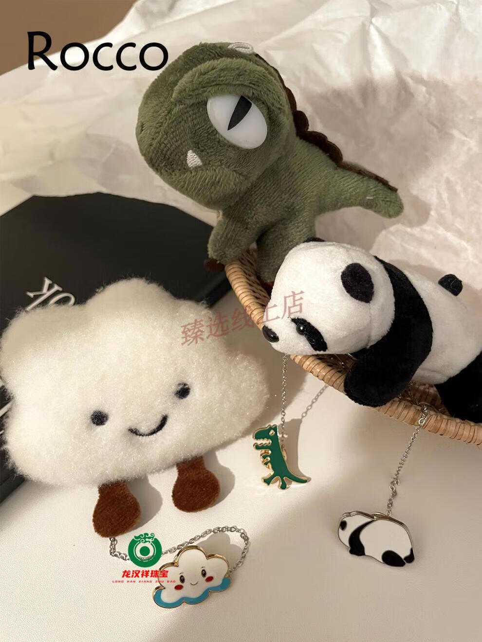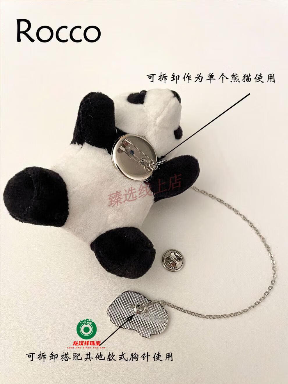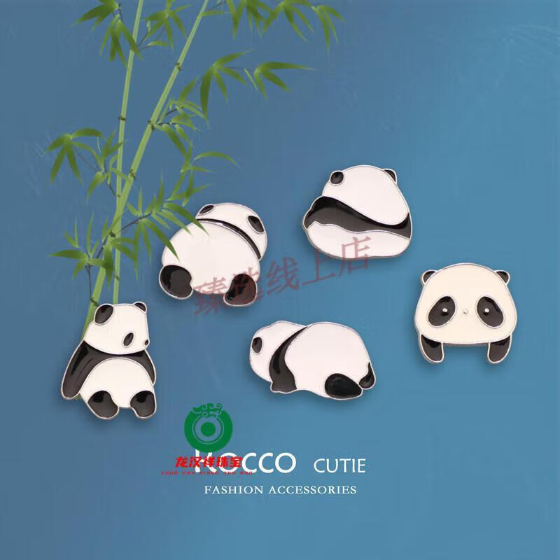 Panda brooch, Chinese style national treasure, cute plush pin, metal badge, bag, clothing accessories, panda bamboo chain