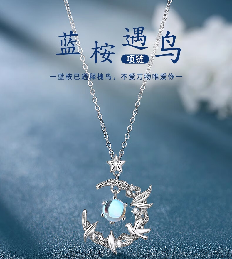 Qi Xiaomi Blue Eucalyptus and Bird Necklace Women's Clavicle Chain 2025 New Light Luxury Birthday Girlfriend Practical Valentine's Day Gift for Girlfriend Blue Eucalyptus and Bird Necklace Exquisite Gift Box
