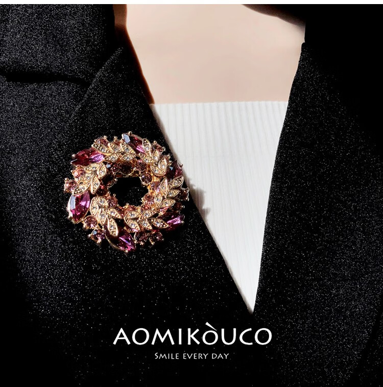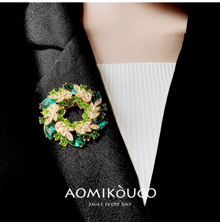 WOUG Retro Fashion Light Luxury Bauhinia Brooch Temperament Elegant Crystal Pin Feel Blazer Green Bauhinia (Boxed)