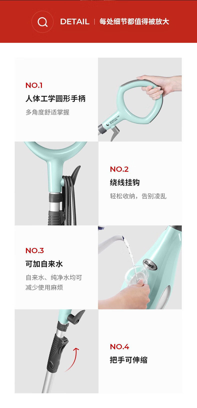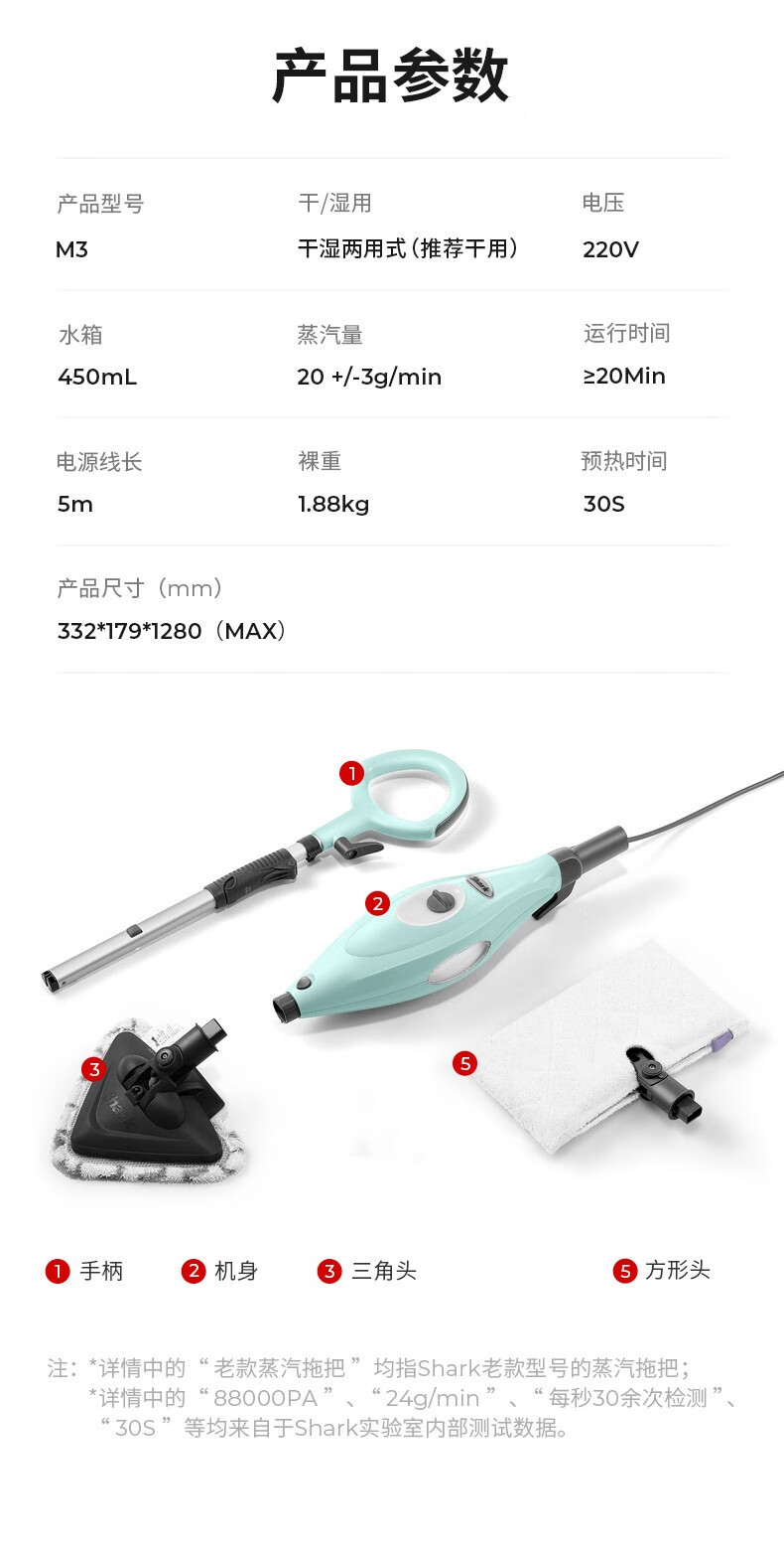 鲨客鲨客Shark蒸汽拖把P39/M11高温除菌非无线电动洗拖地清洁机M3/M01 P36lite高配(发3块布) 晒单送三角头