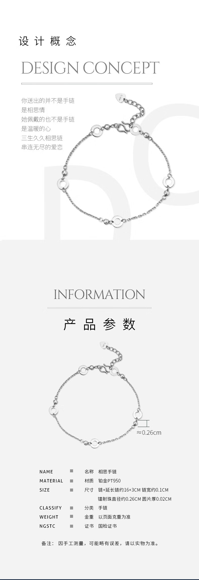 Jincaifu platinum bracelet women's fashion round acacia bracelet pt950 platinum gift for girlfriend platinum round acacia bracelet about 2.8