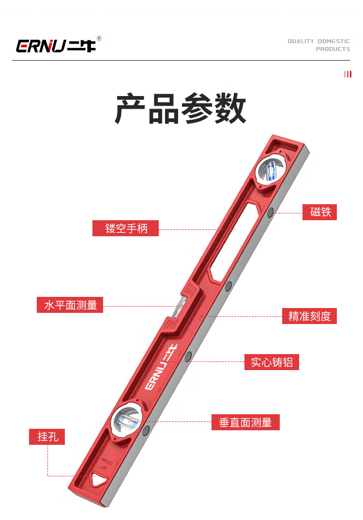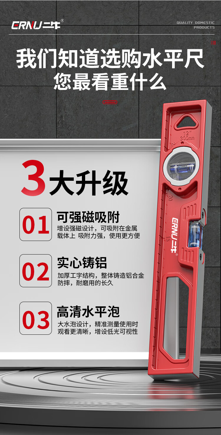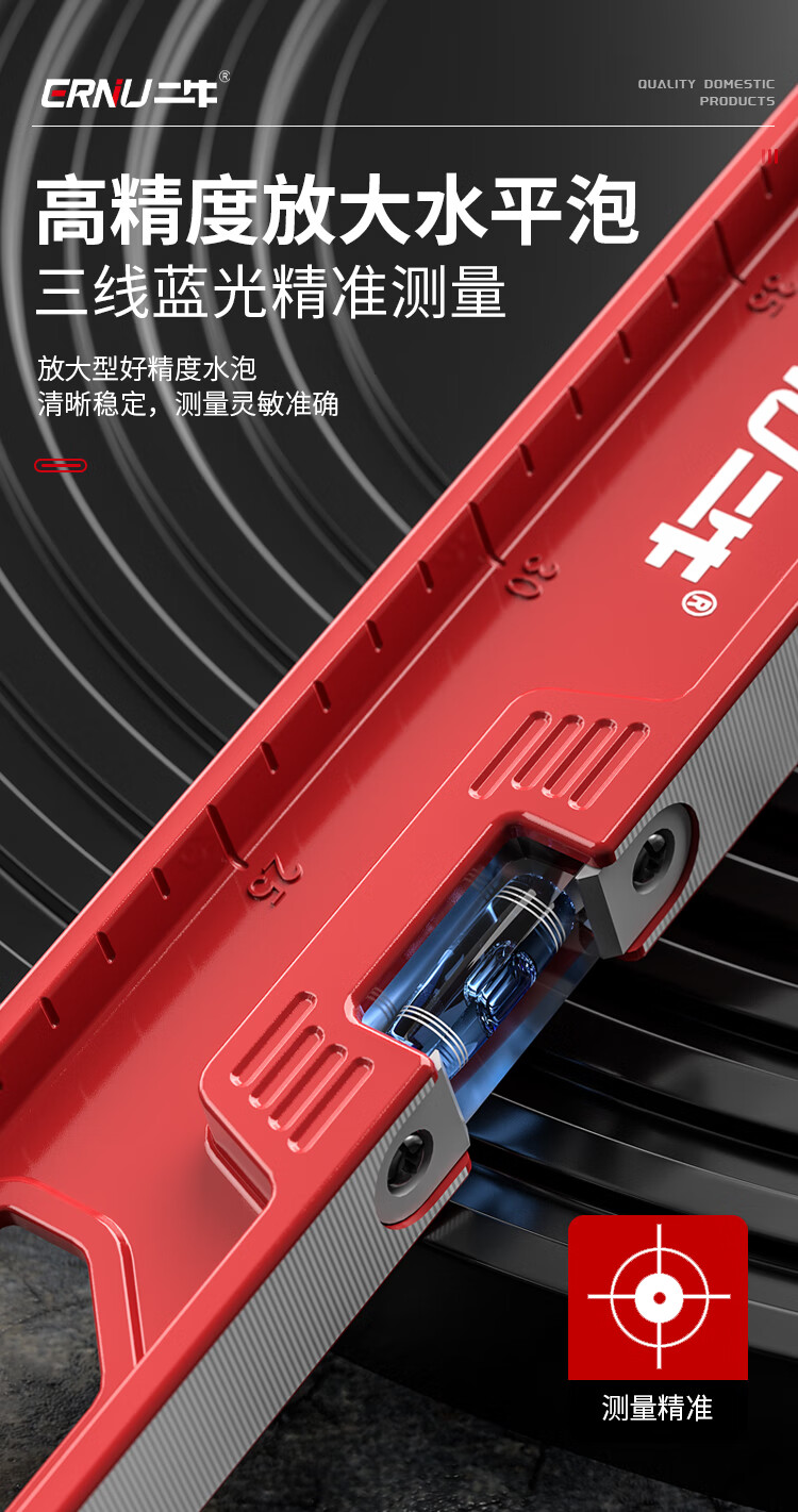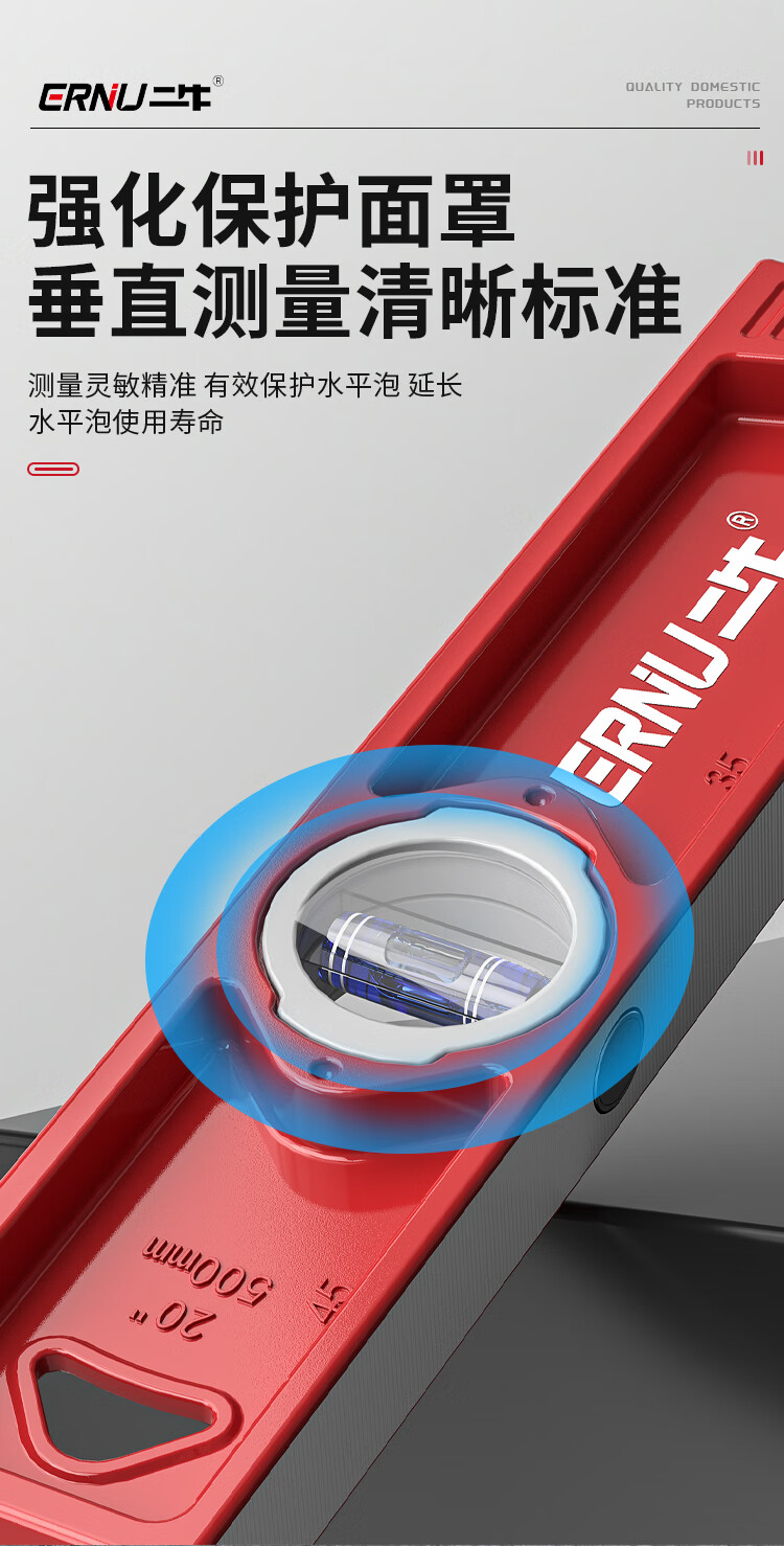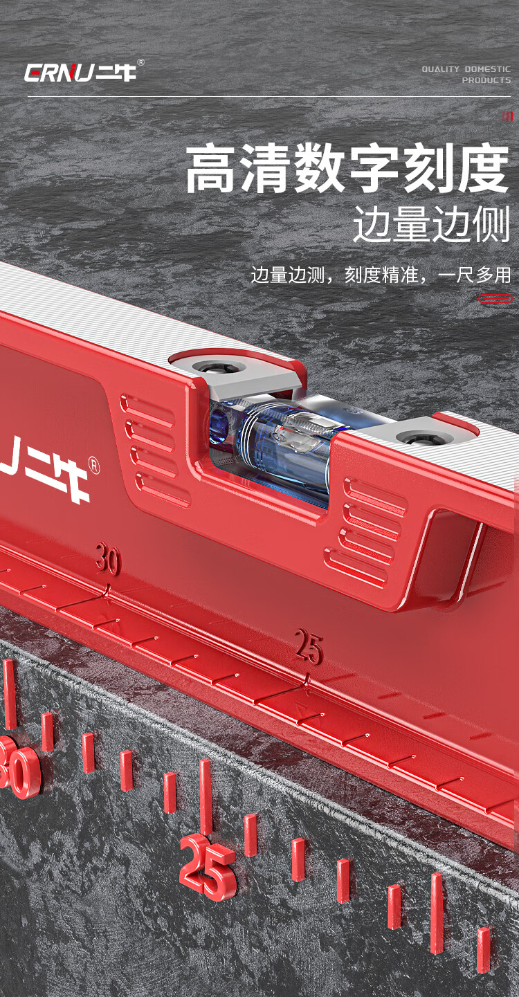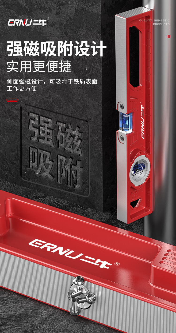 Erniu level high-precision solid cast aluminum flat water level small ruler mini strong magnetic aluminum alloy anti-fall 400mm solid cast aluminum non-magnetic industrial grade high precision