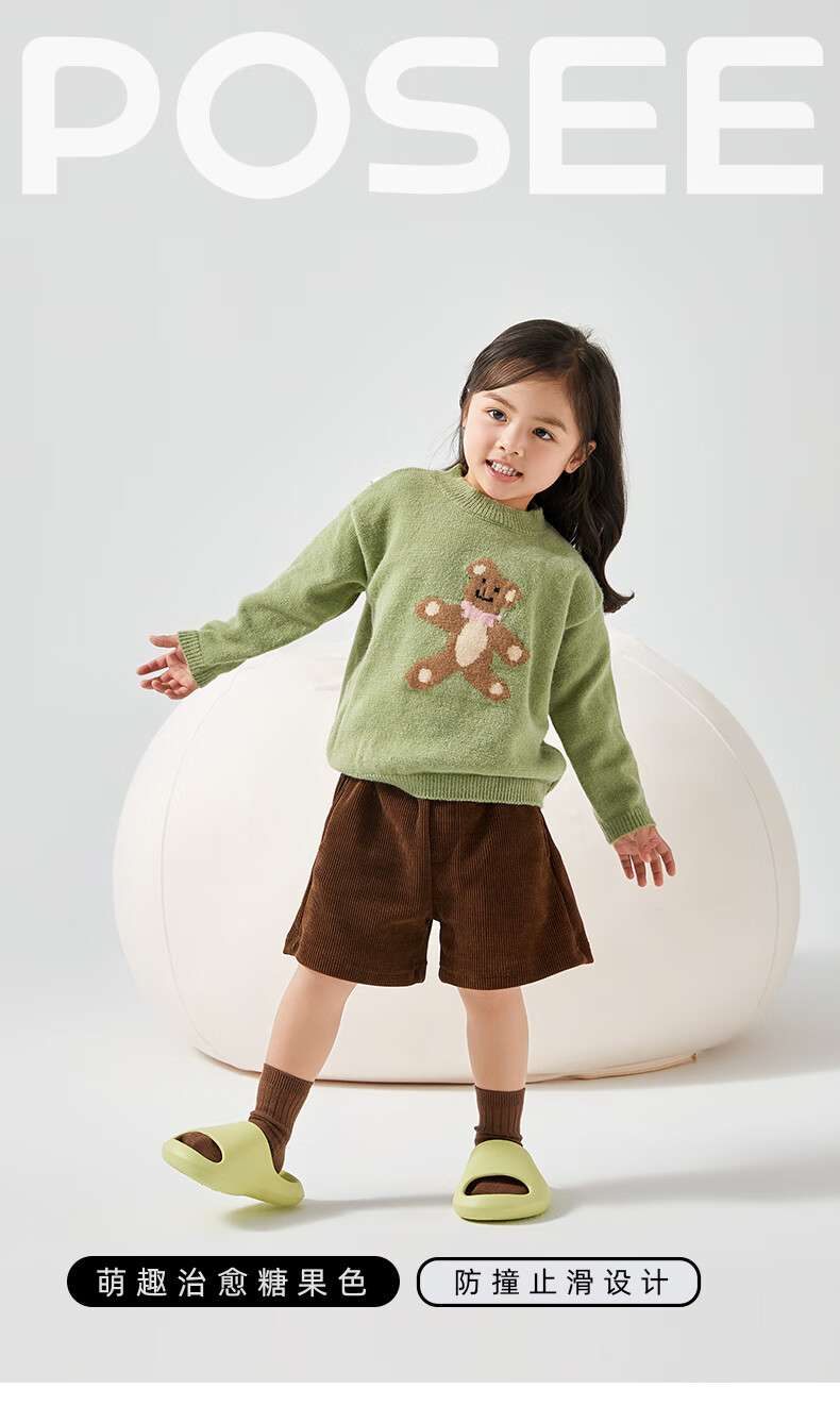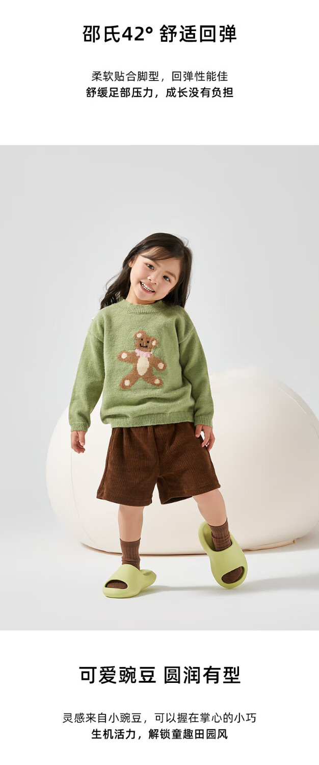 Puxi Little Pea Children's Slippers Cute one-piece molded poop-stomping boy's home bath non-slip indoor shoes for middle-aged and older children Little Pea Mellow Green 160 Suitable for feet 16cm long or too large