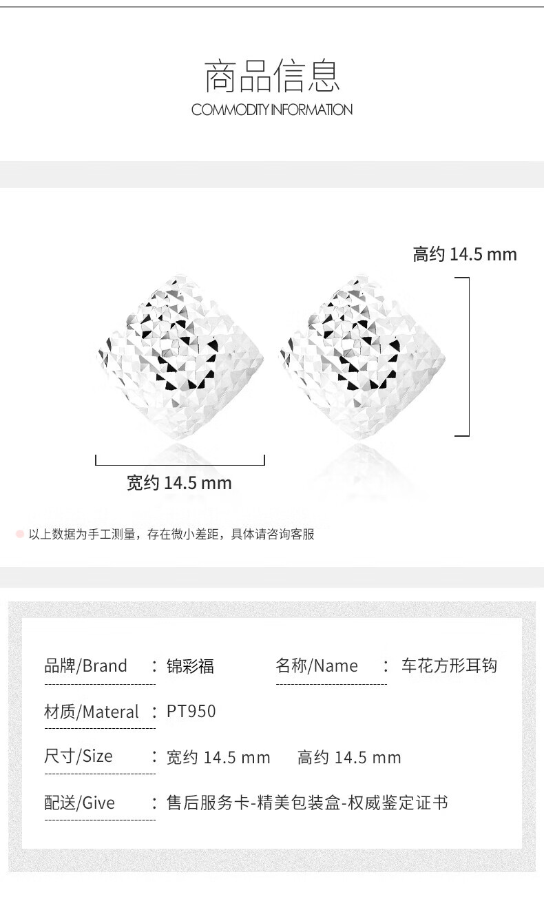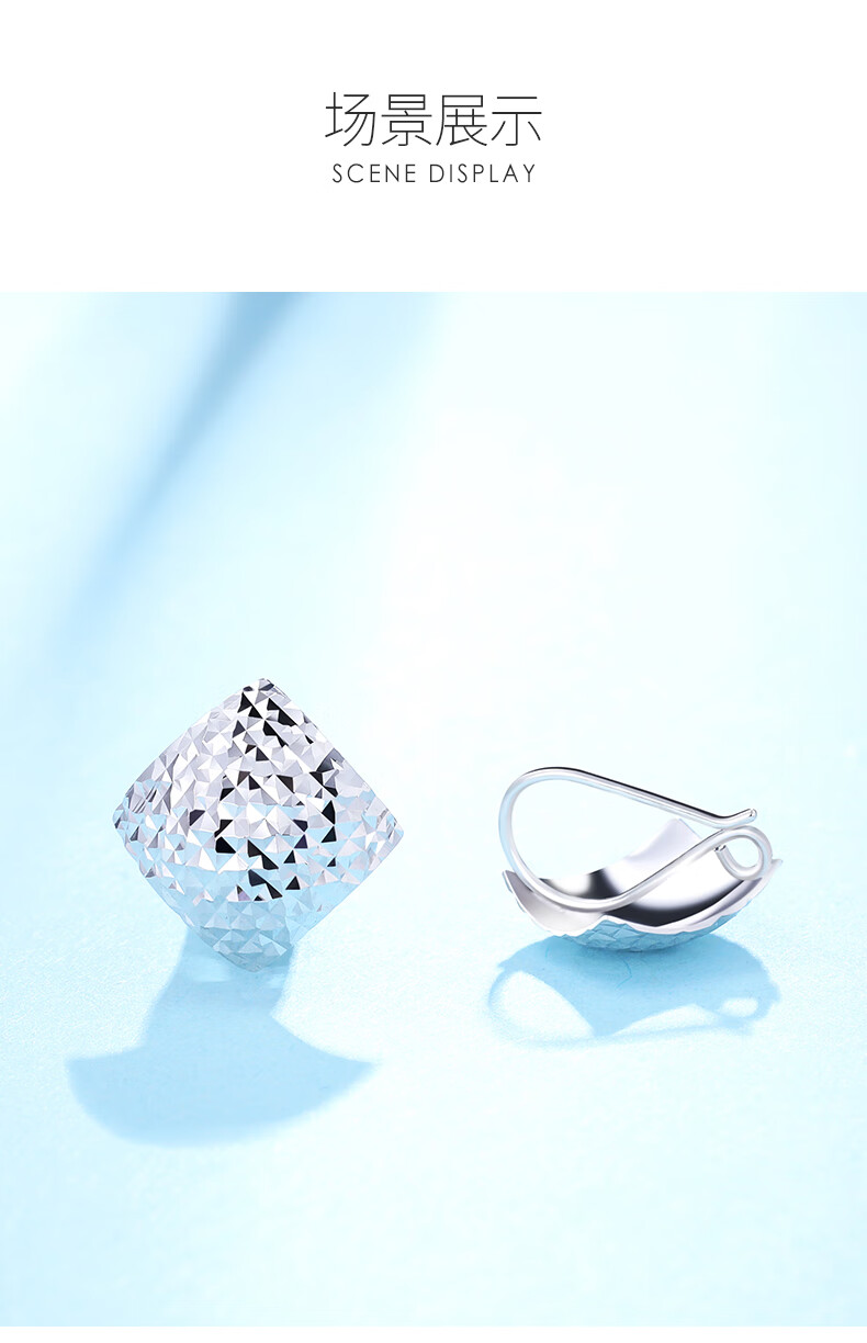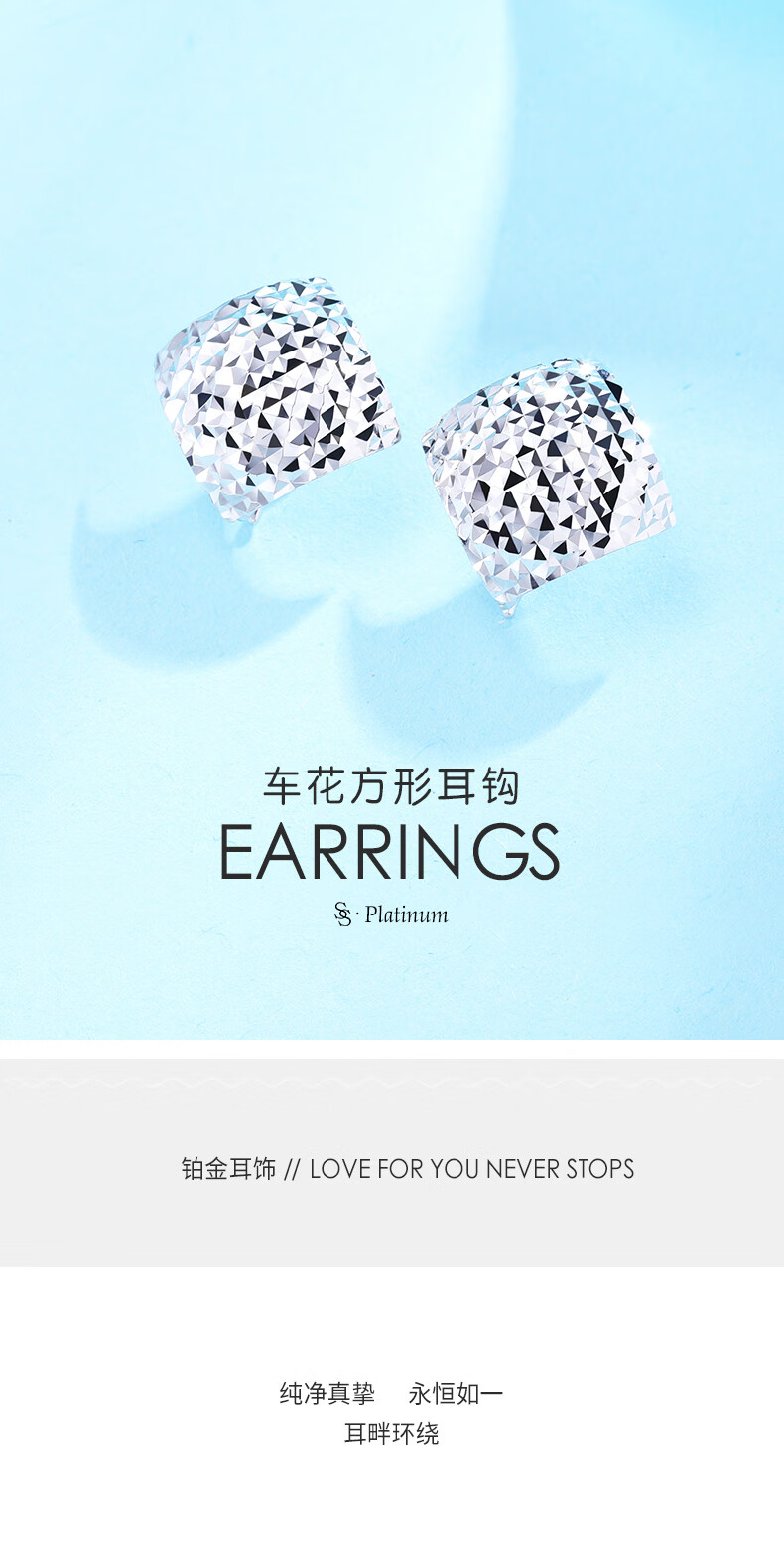 Jincaifu platinum ear hooks for women, square platinum earrings, plain platinum earrings, super shiny fashion earrings, platinum square ear hooks, about 2.4g