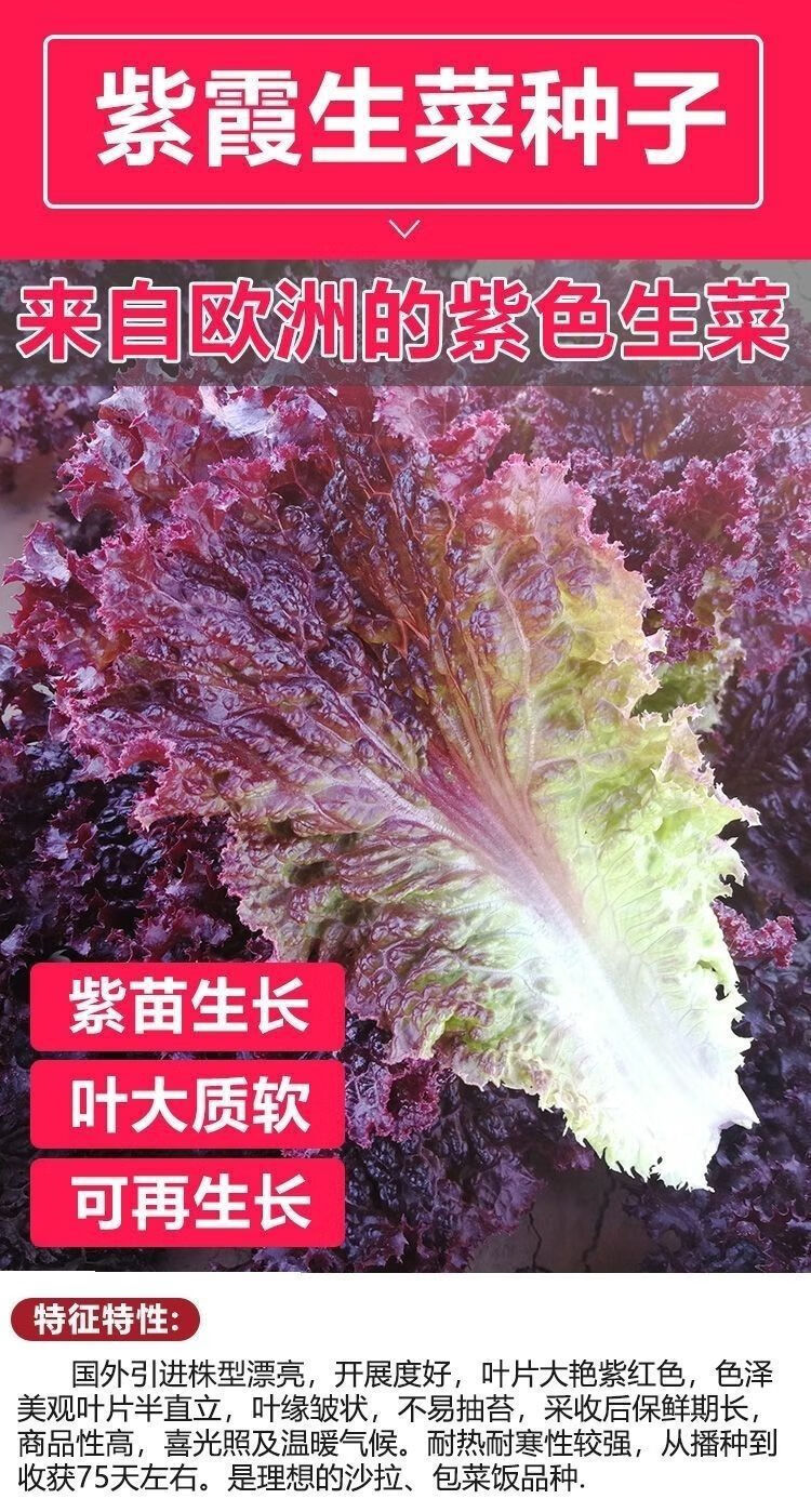 Purple leaf lettuce seeds, salad seeds, four-season planting, cold and heat resistant garden field vegetable seeds, rapeseed seeds, the best original purple leaf lettuce seeds () 1 pack, about 1600 seeds