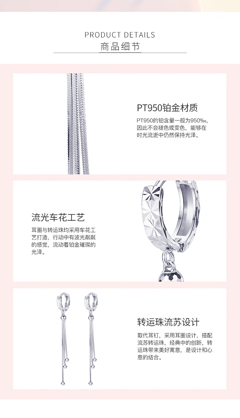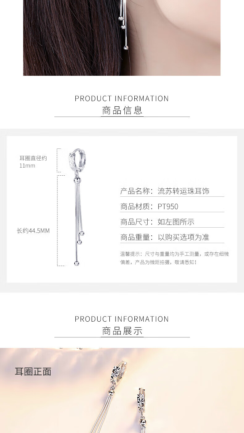 Jincaifu pt950 platinum long earrings for women platinum tassel earrings ear wire earrings circle earrings ear buckles car flower earrings platinum tassel long wire earrings about 3.6g