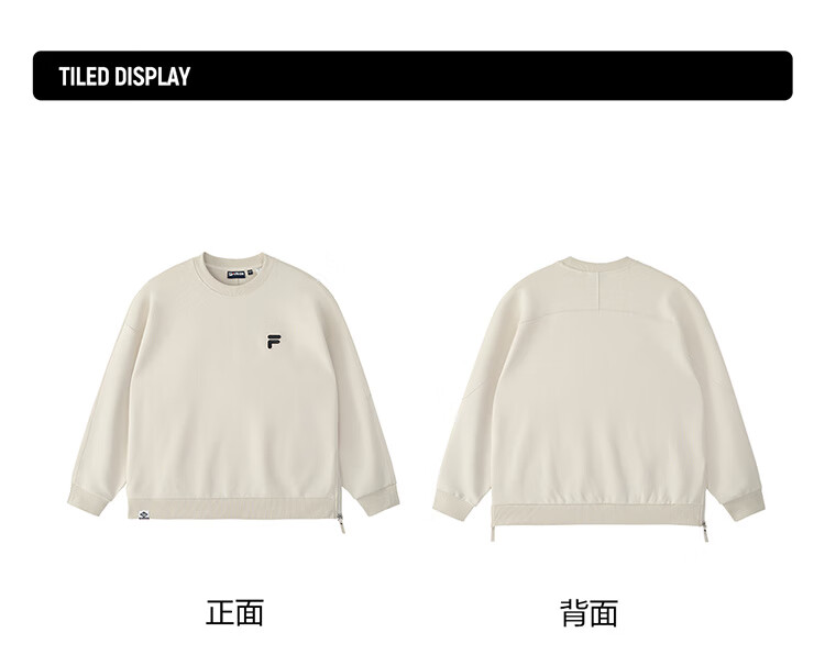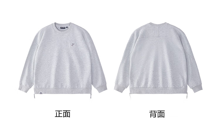 FILA FUSION Fila trendy brand couple style pullover sweatshirt simple loose knitted top autumn wear 芊豆ash-BG couple plus velvet style M