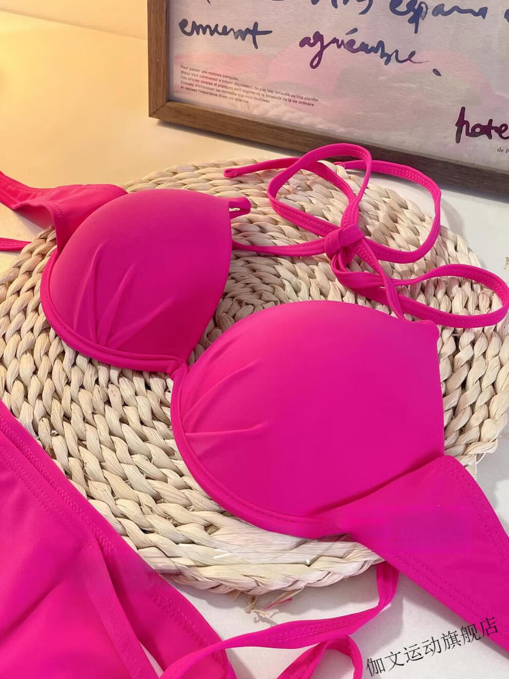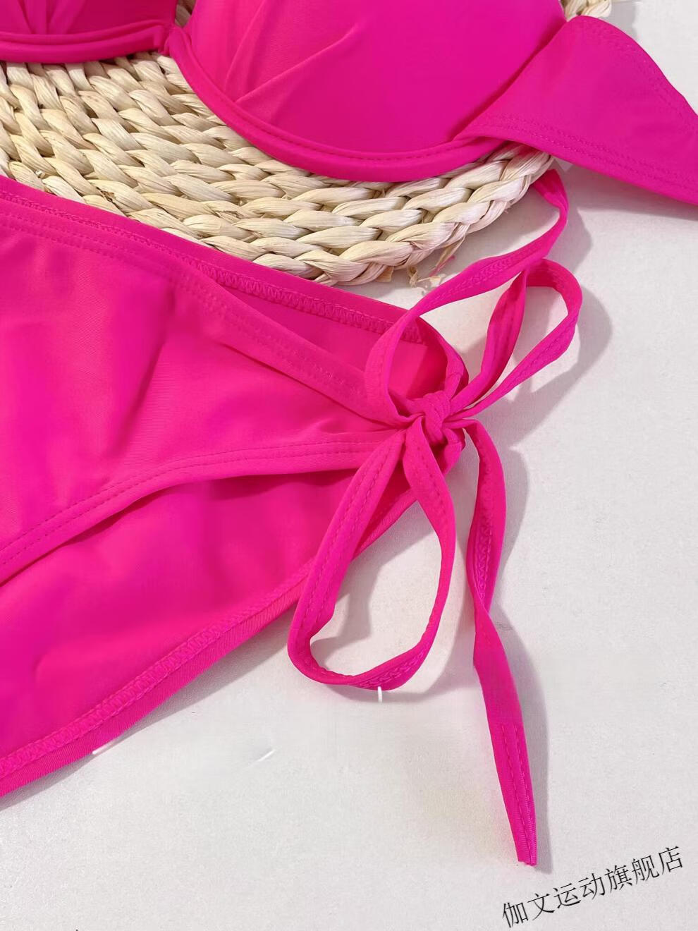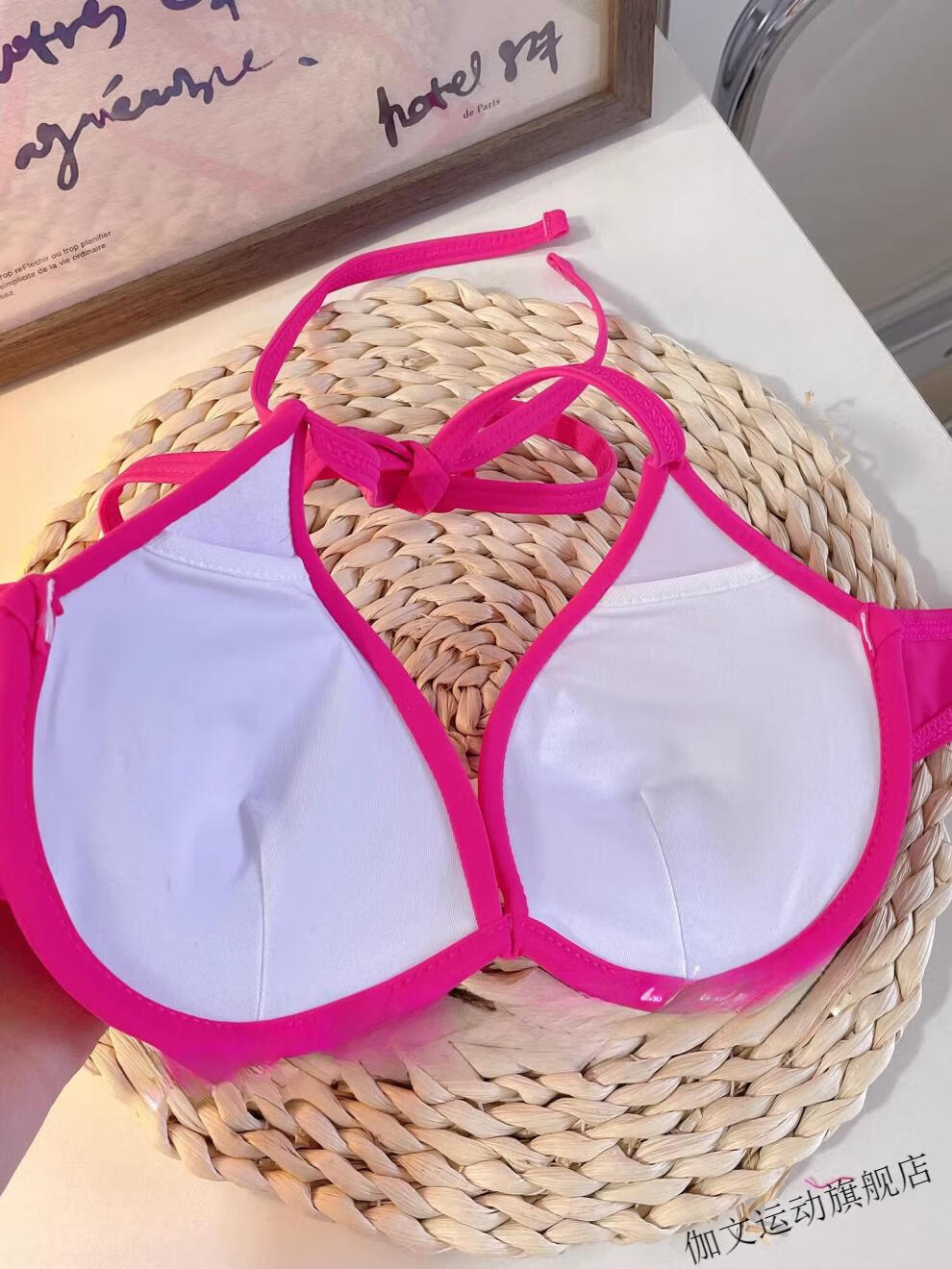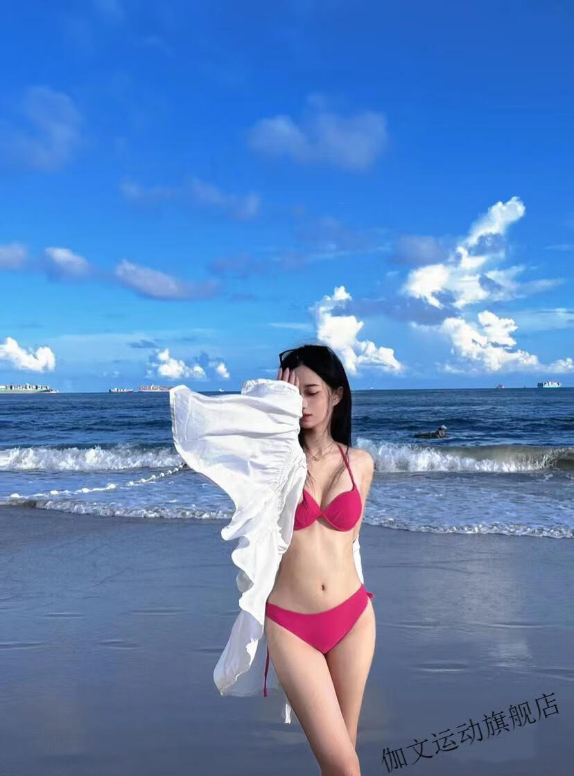 Yuchuang picks up the light European and American style sexy swimsuit for women beach vacation ins bikini pink big and small breast push-up three-point hot spring red (no steel breast pad) M