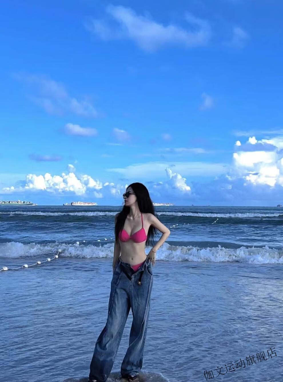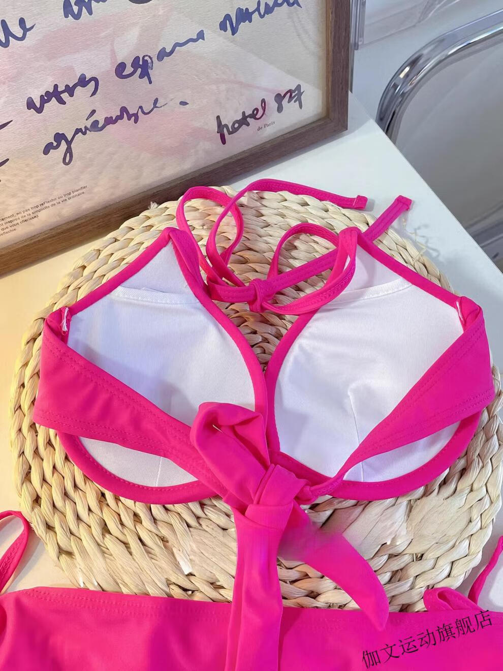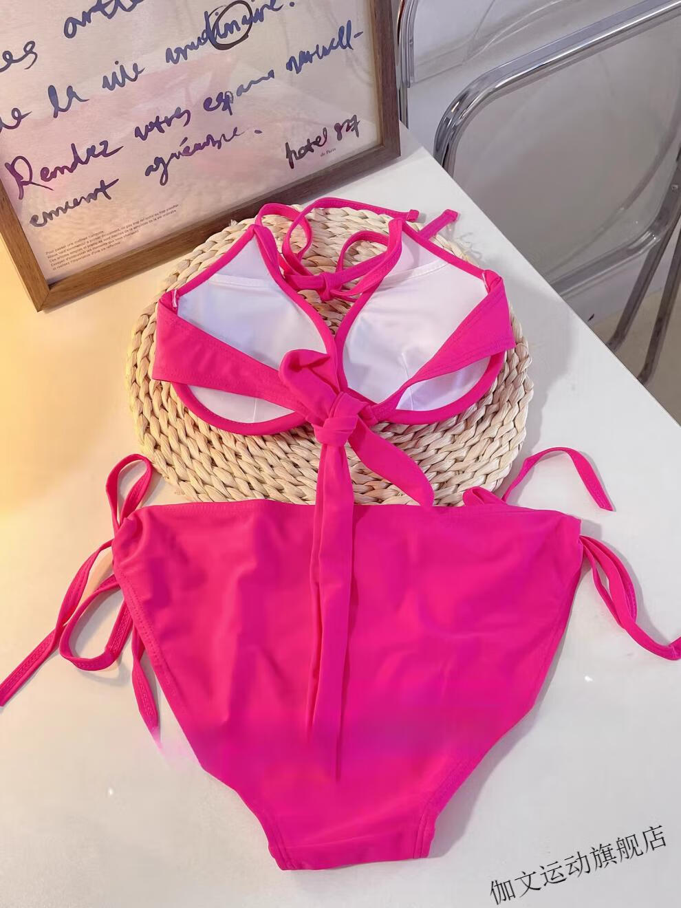 Yuchuang picks up the light European and American style sexy swimsuit for women beach vacation ins bikini pink big and small breast push-up three-point hot spring red (no steel breast pad) M