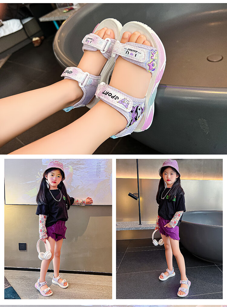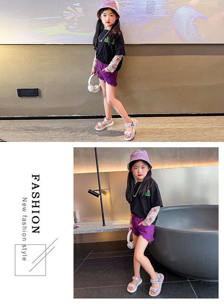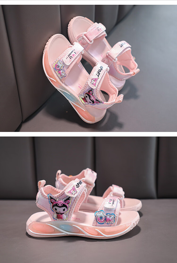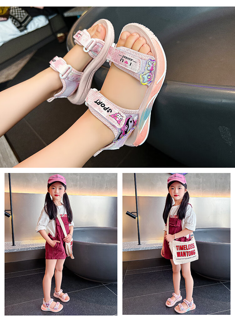 G.duck little yellow duck children's sandals new summer middle and large children's fashionable and casual girls' soft-soled beach shoes student shoes pink size 26 inner length of the shoe is about 16.4cm