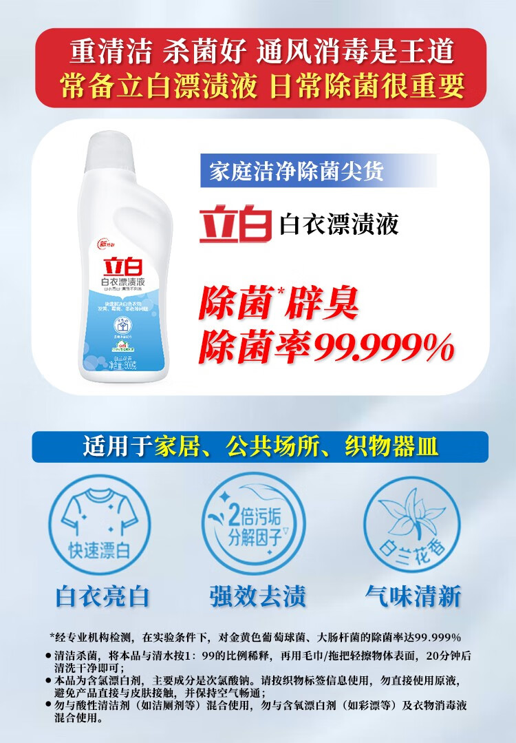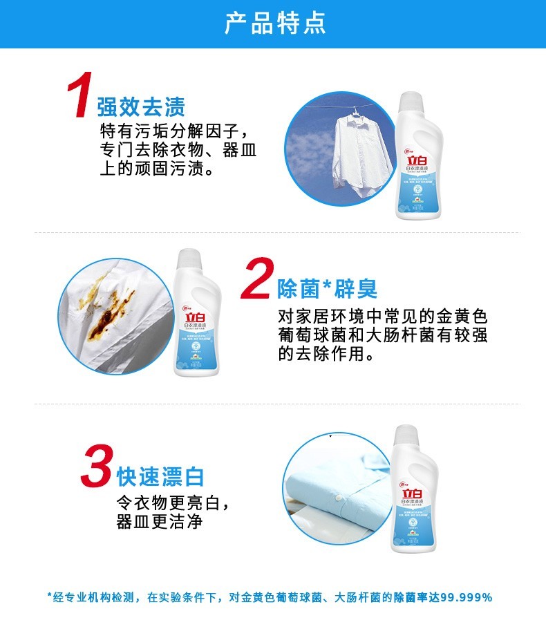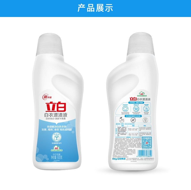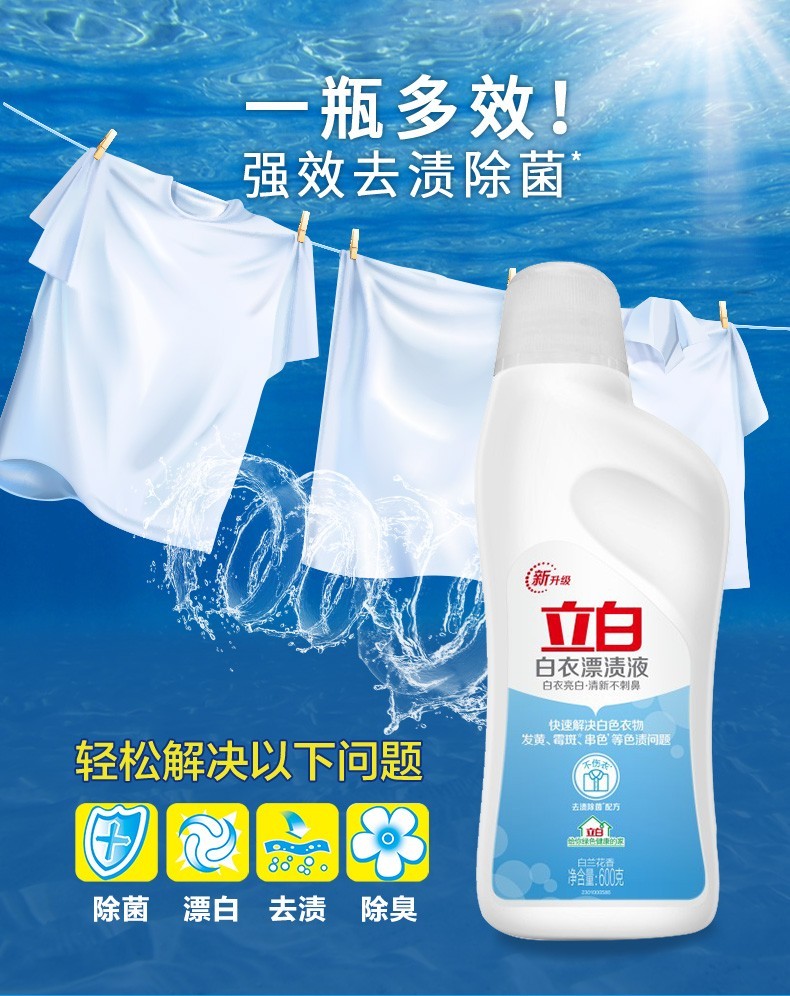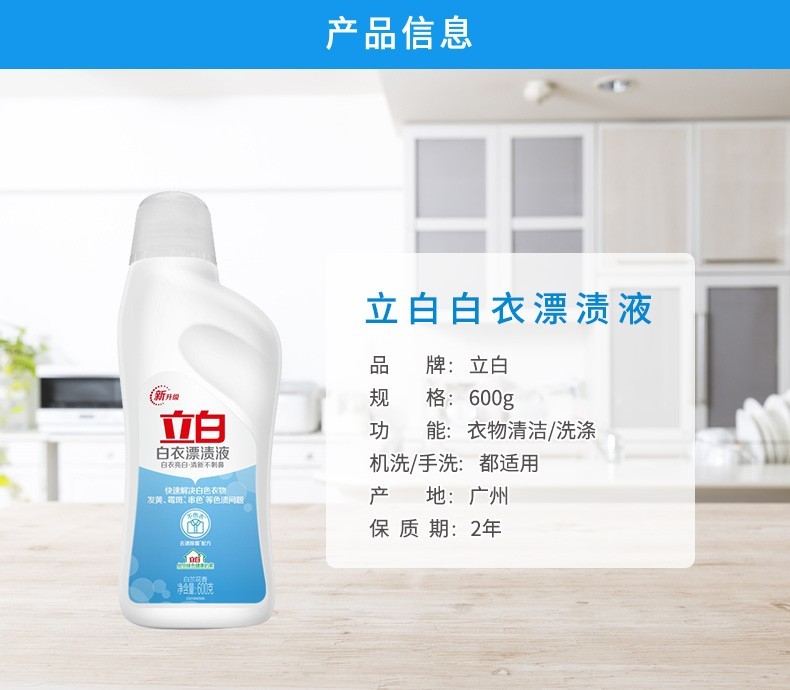 Liby bleaching liquid for white clothes and stains, powerful stain removal for white clothes, whitening and bleaching, watercolor clothes for brighter clothes, 600g*1 bottle of bleaching liquid for white clothes